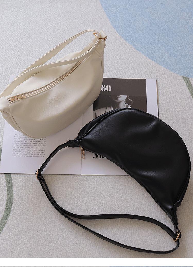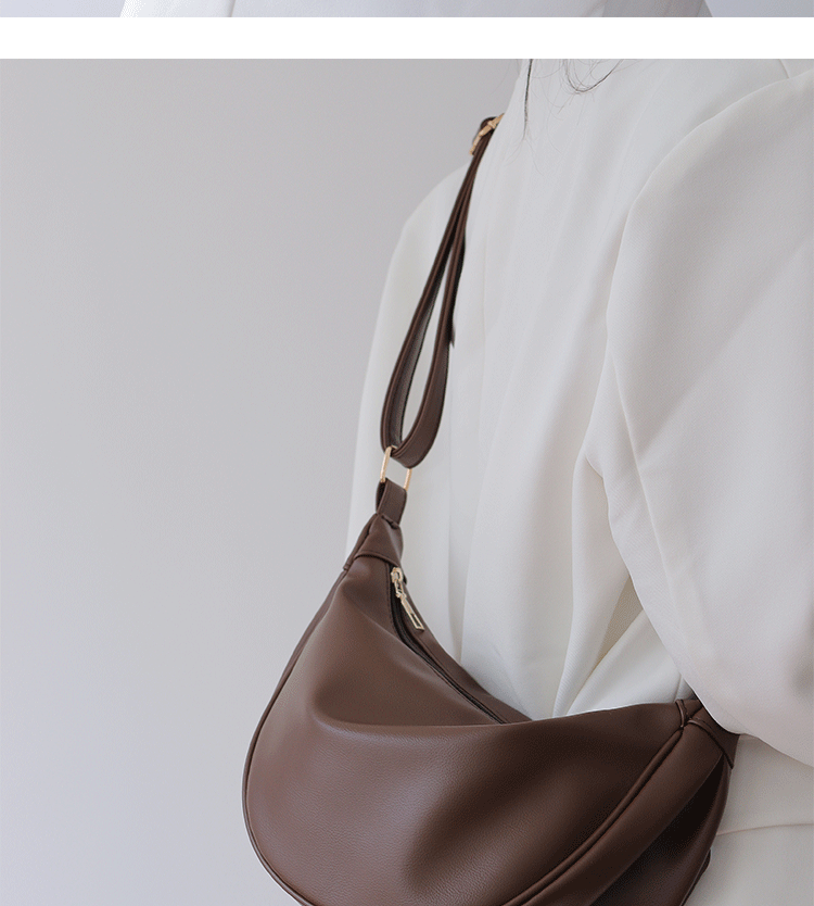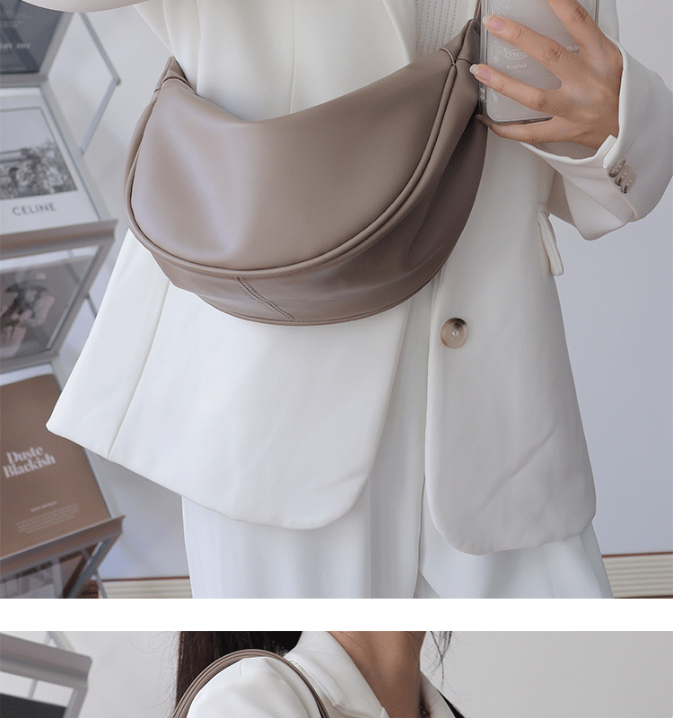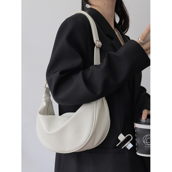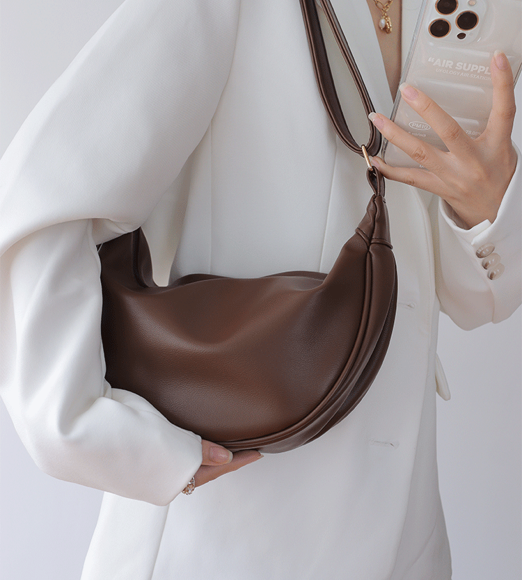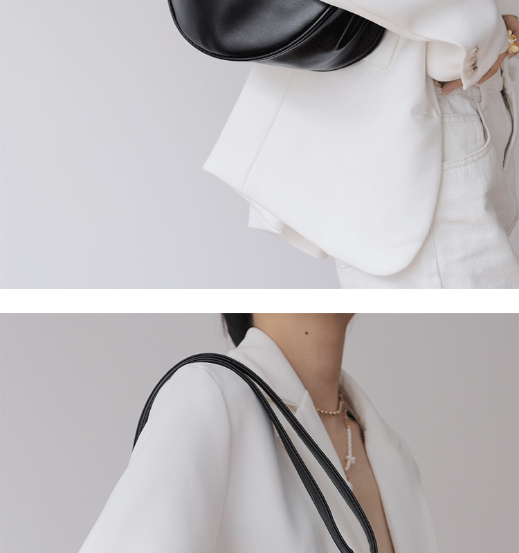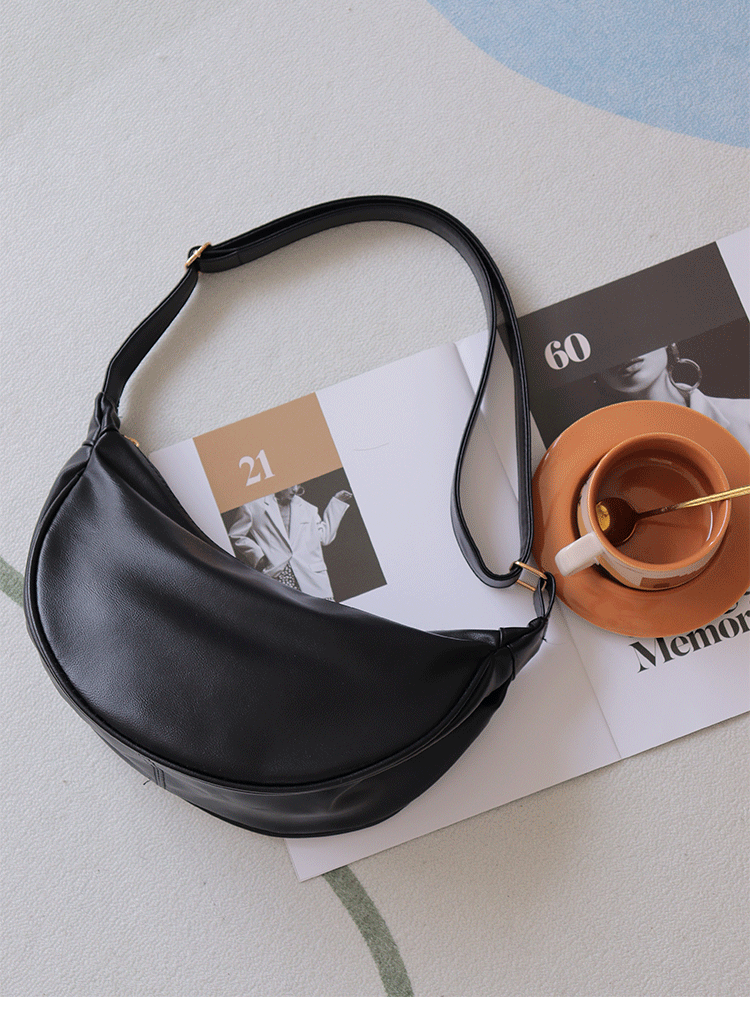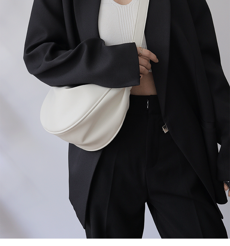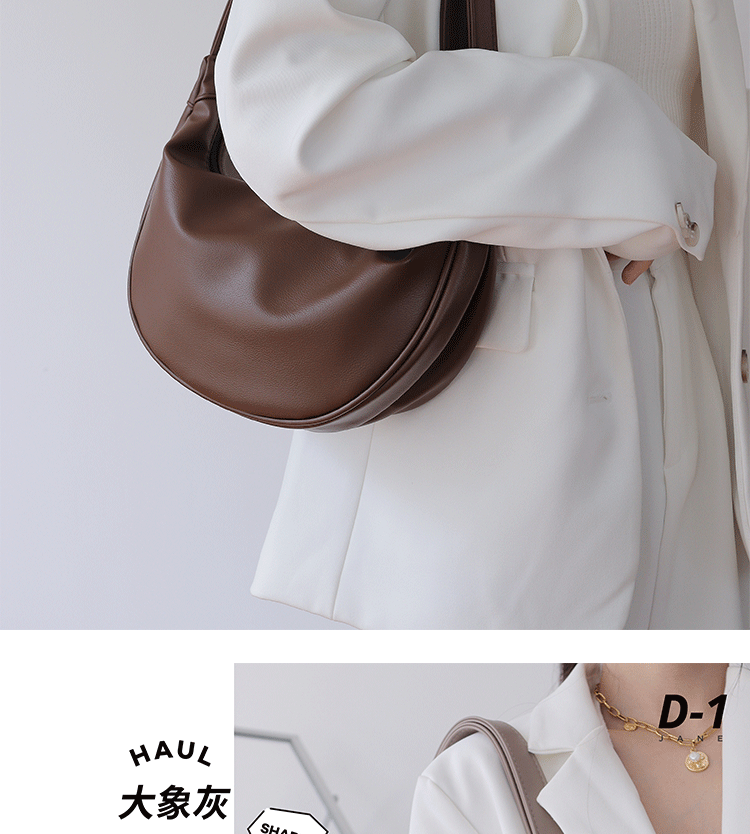 韓國自製軟皮馬鞍包斜背半圓形新月包女復古空氣感百搭小圓包女
