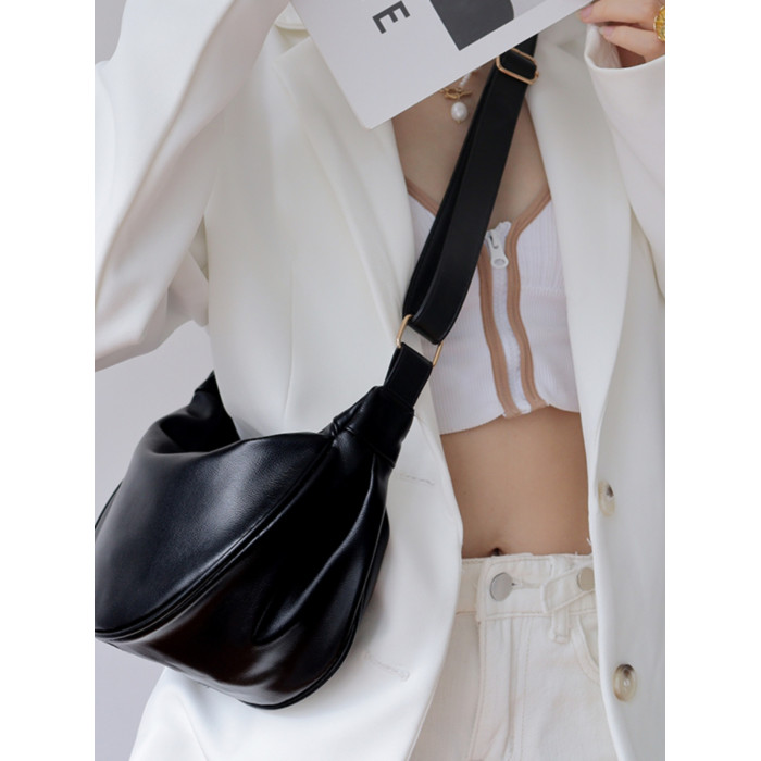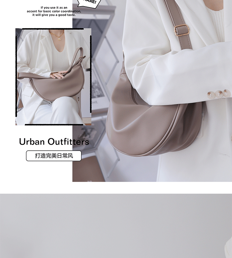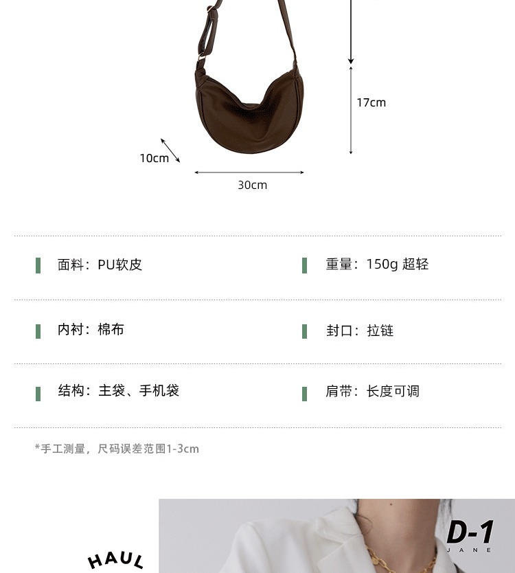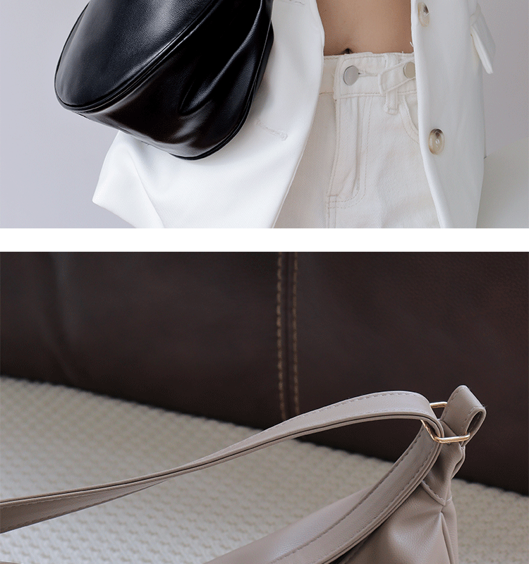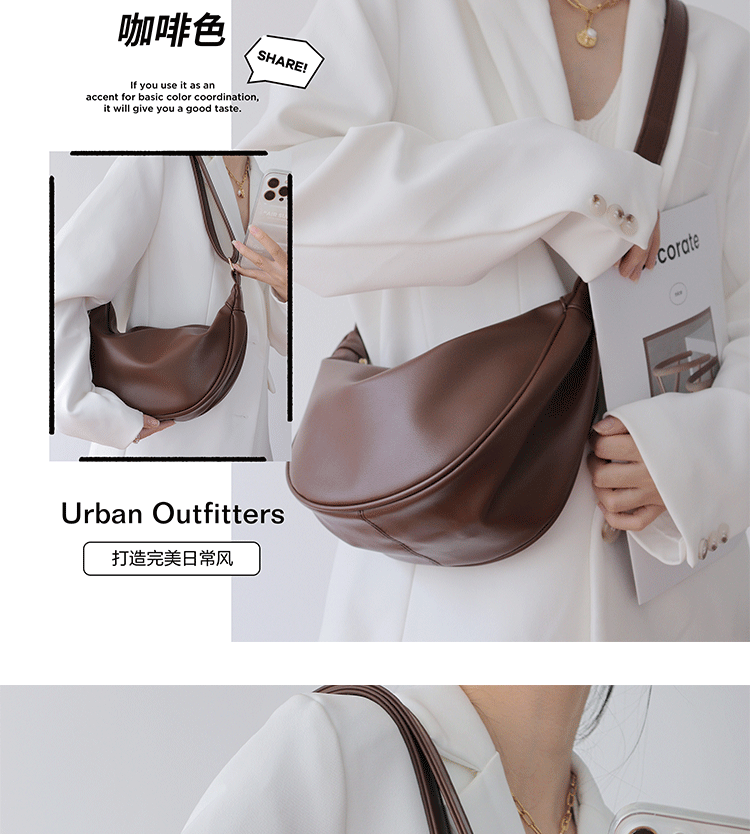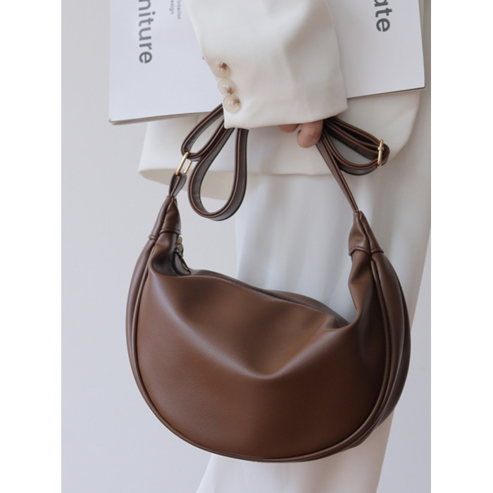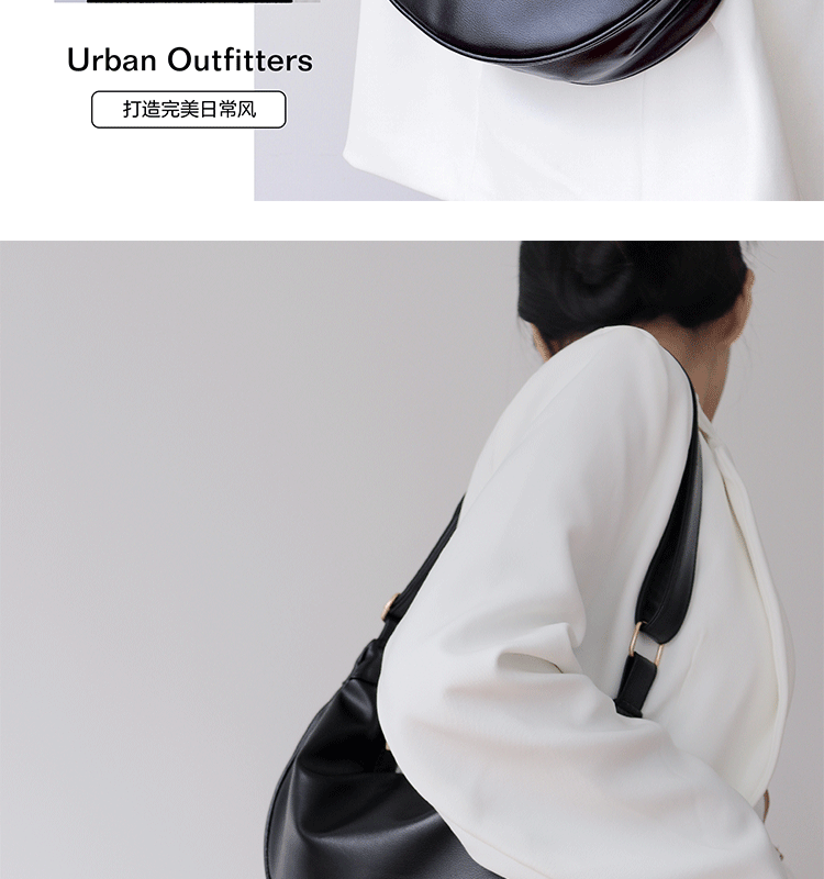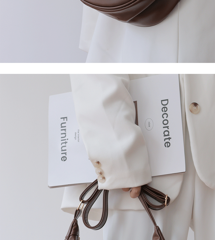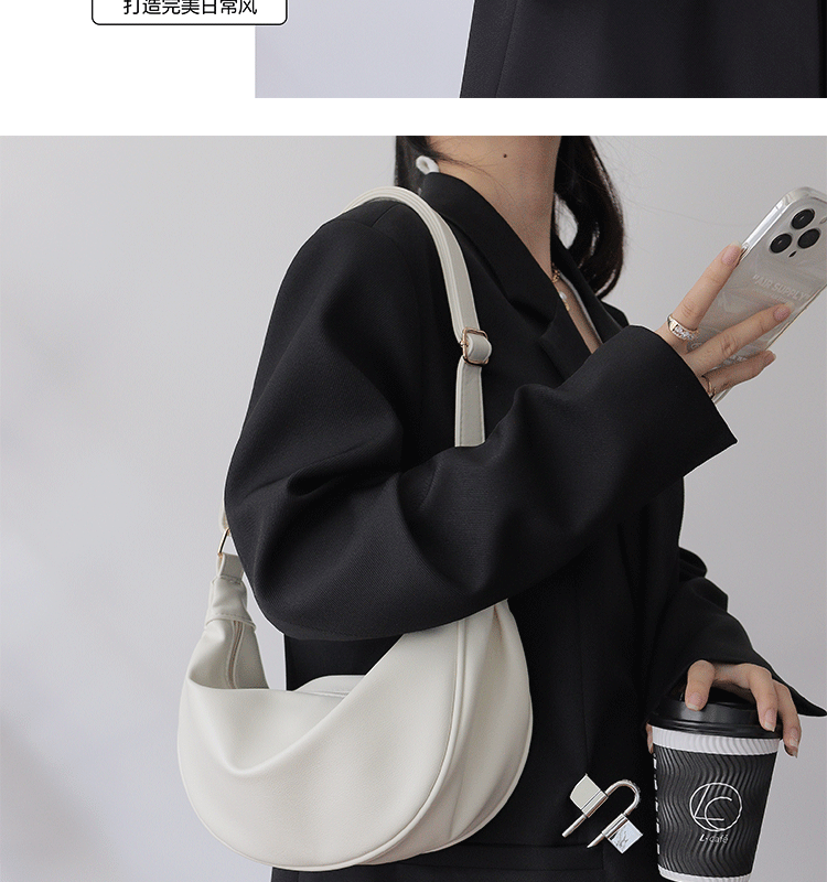 韓國自製軟皮馬鞍包斜背半圓形新月包女復古空氣感百搭小圓包女