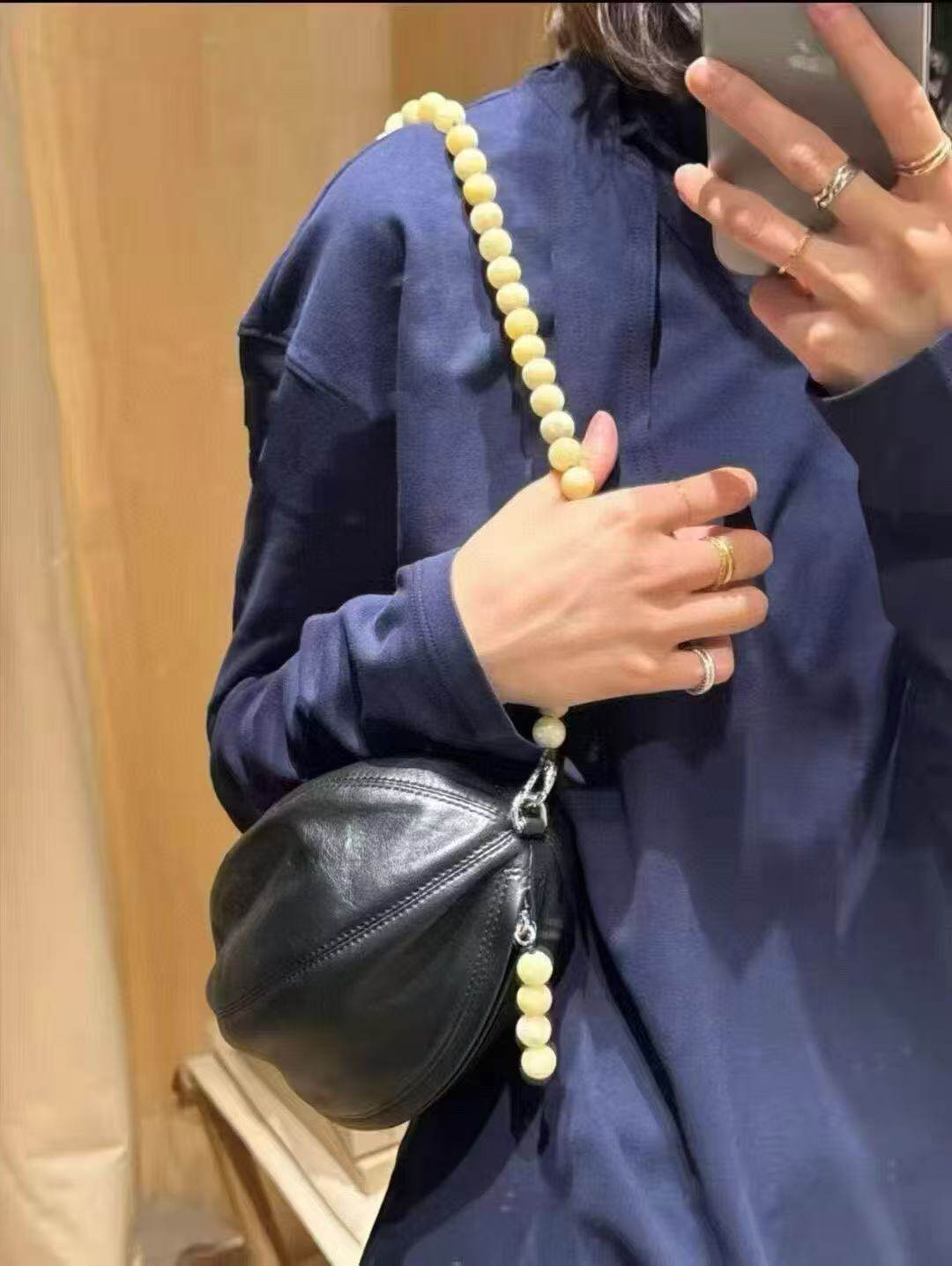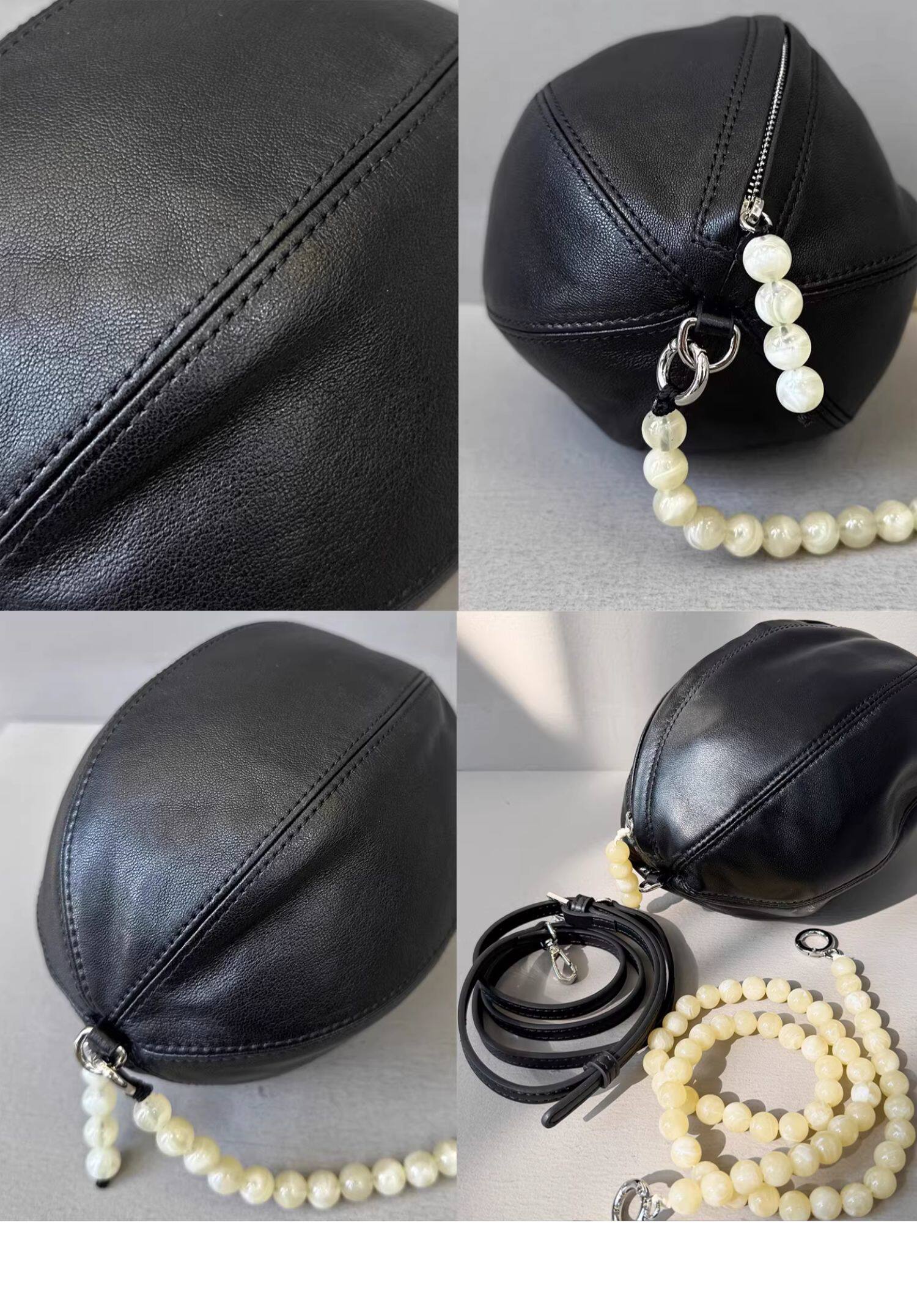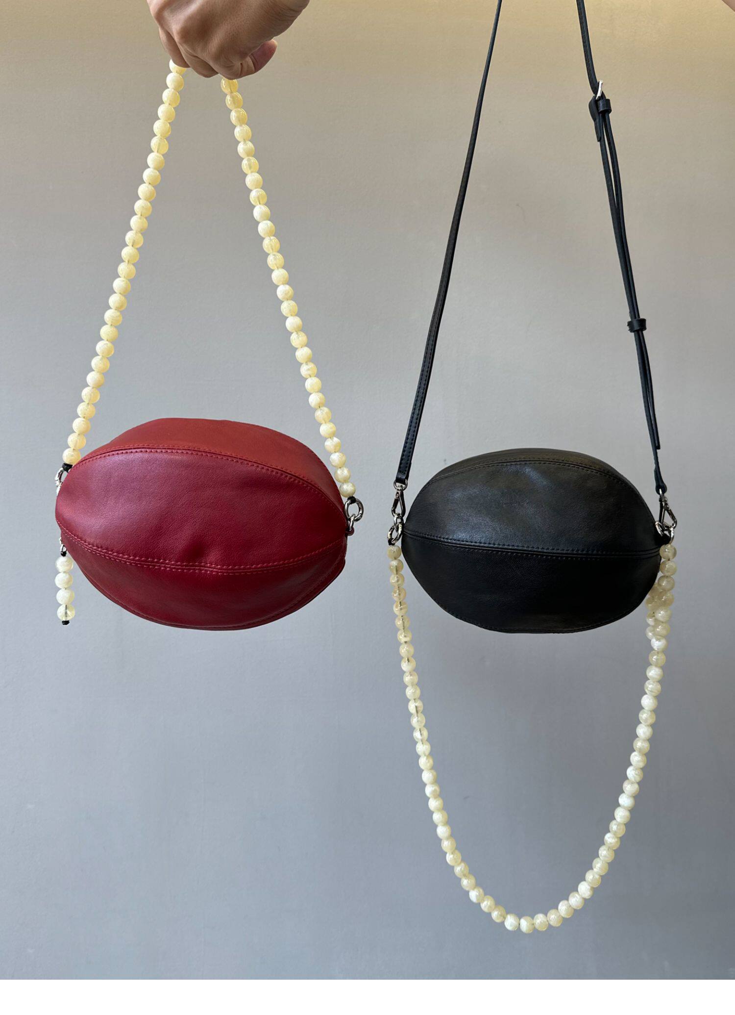 頭層羊皮串珠橄欖球包小圓包腋下包馬鞍包單肩斜後後背包女2025新款冬