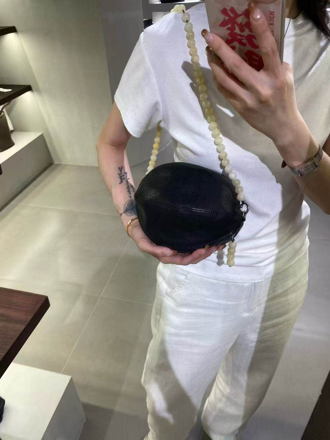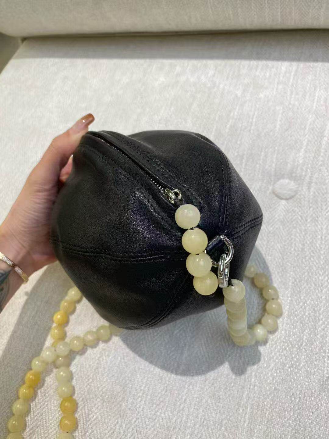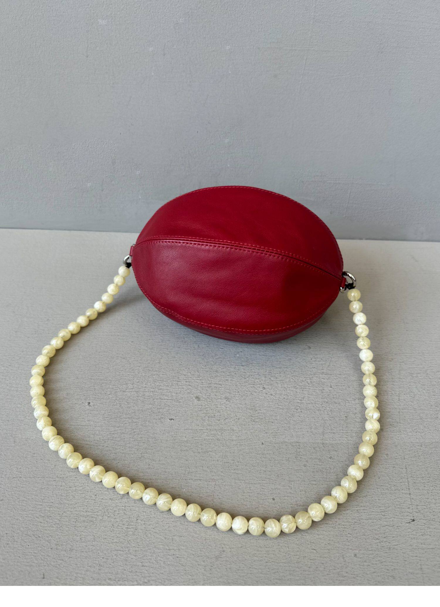 頭層羊皮串珠橄欖球包小圓包腋下包馬鞍包單肩斜後後背包女2025新款冬