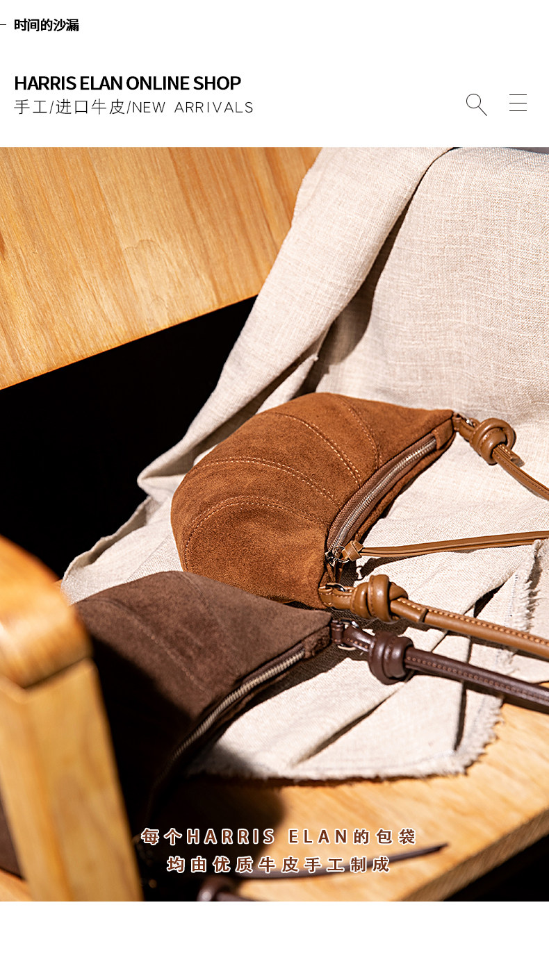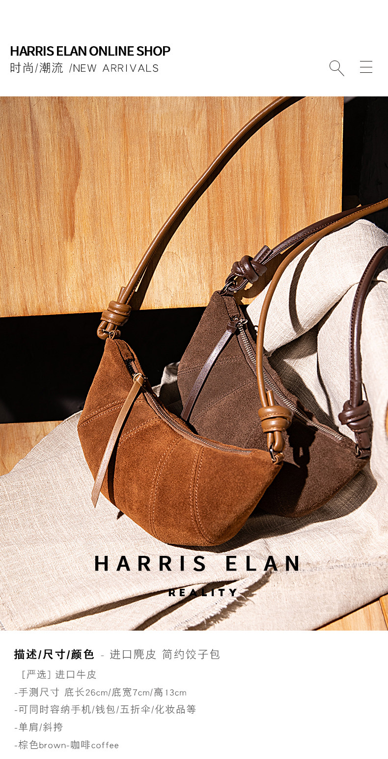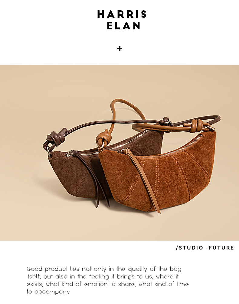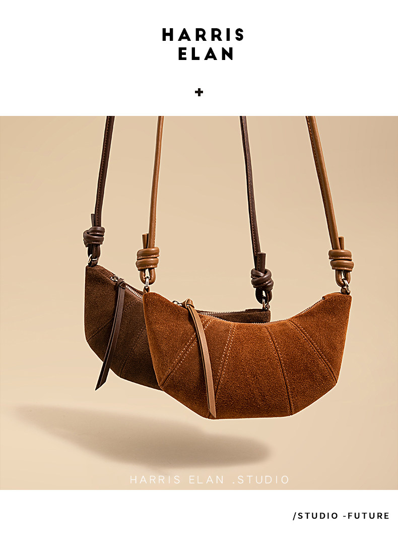Harris Elan真皮女包復古磨砂牛皮餃子包秋冬新款高級感斜後後背包包
