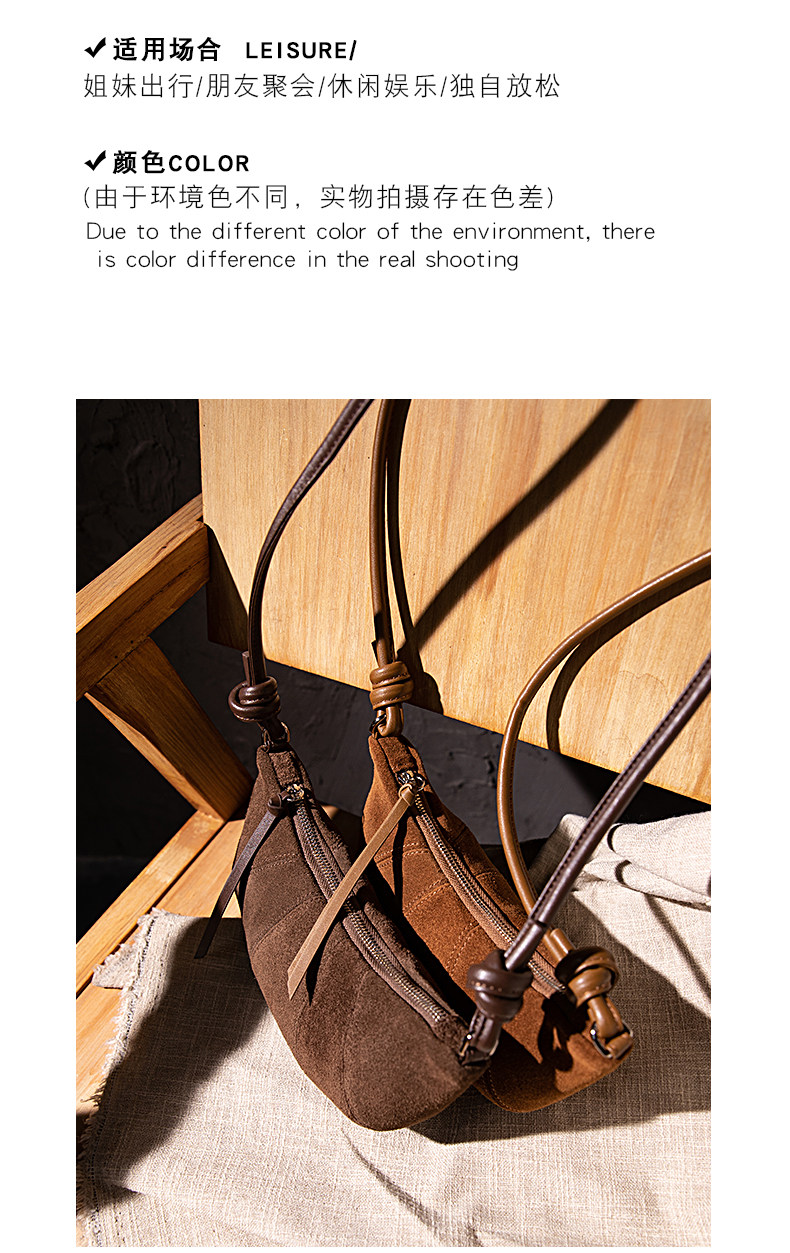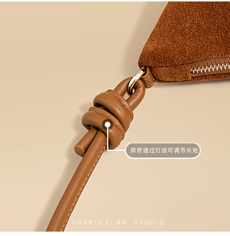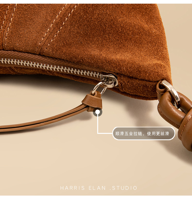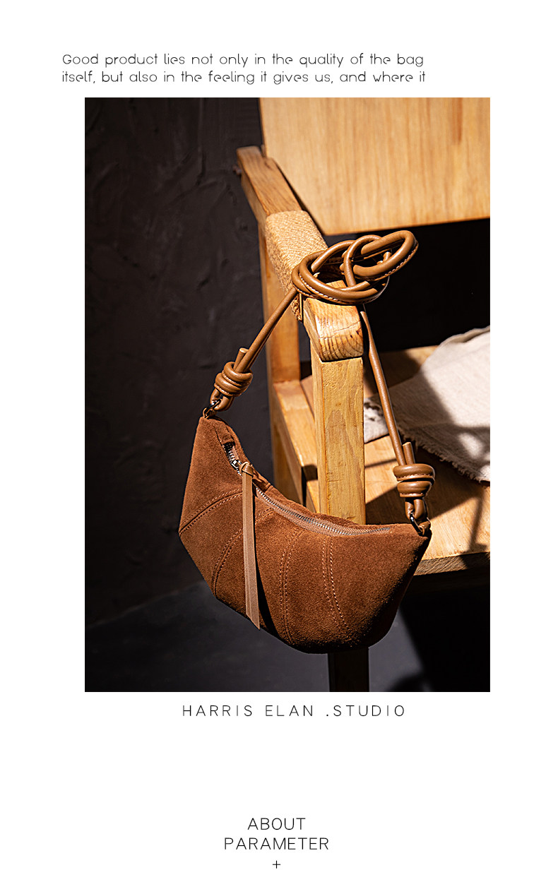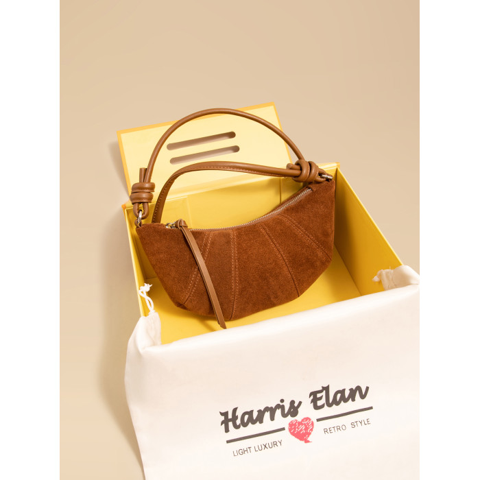 Harris Elan真皮女包復古磨砂牛皮餃子包秋冬新款高級感斜後後背包包