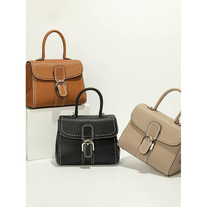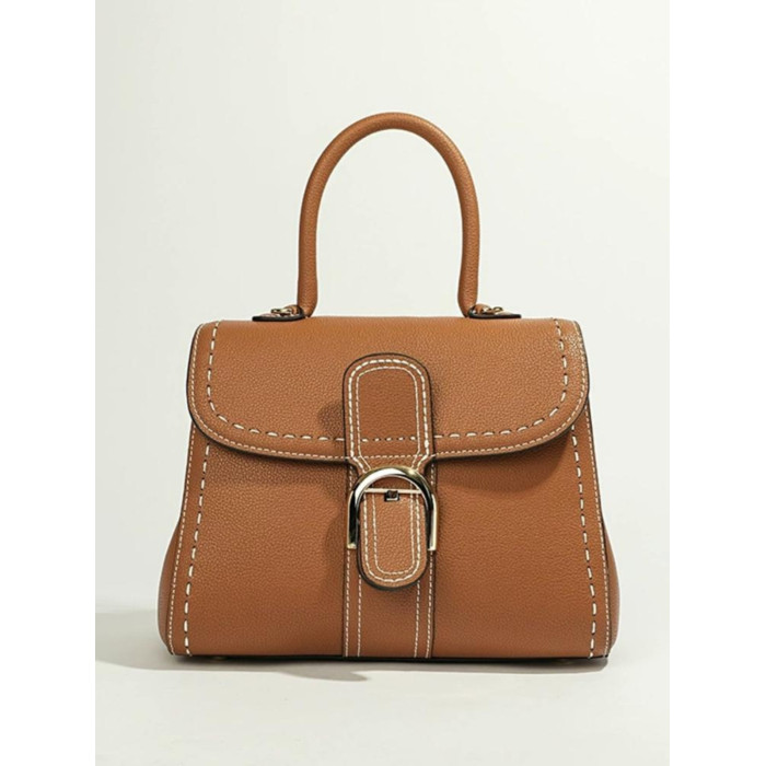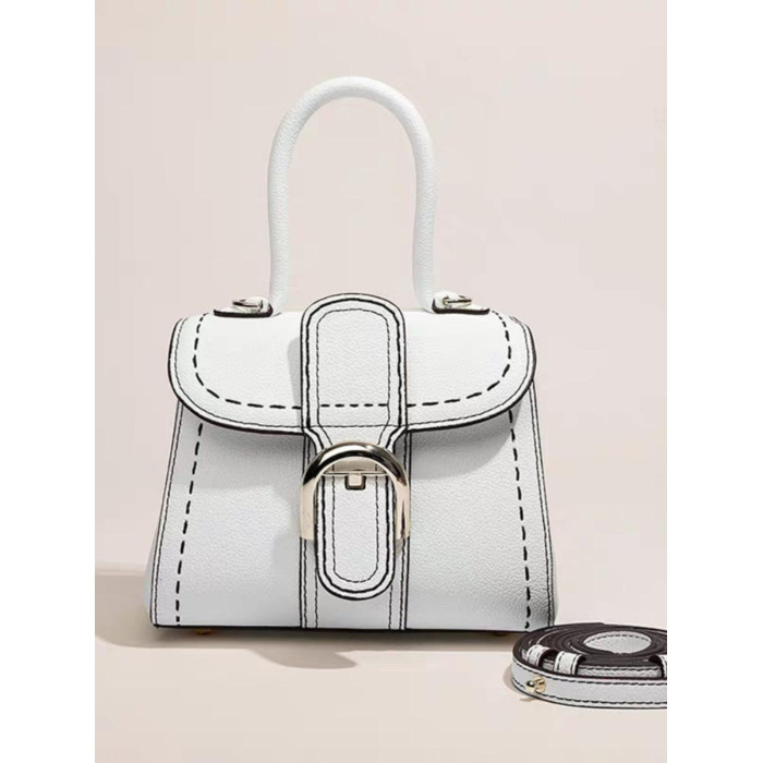 斜後後背包女包洋氣小方包手提包凱莉包包高級感馬鞍包包馬蹄釦真皮包