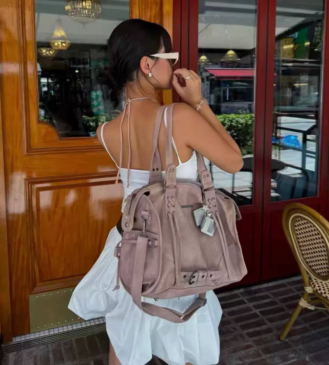 Fancy club韓國小衆25款復古百搭大容量街頭機車風通勤斜背單肩包
