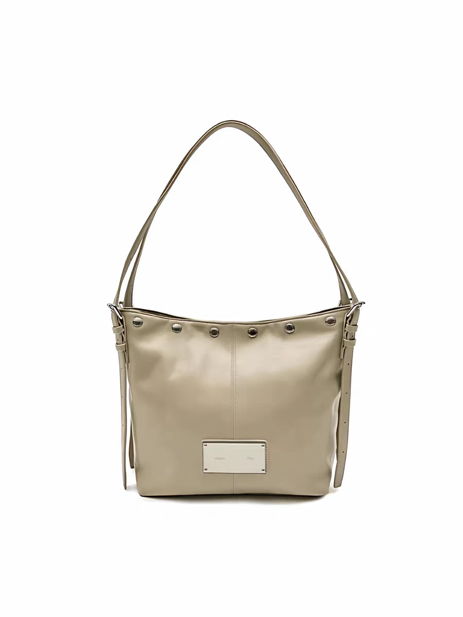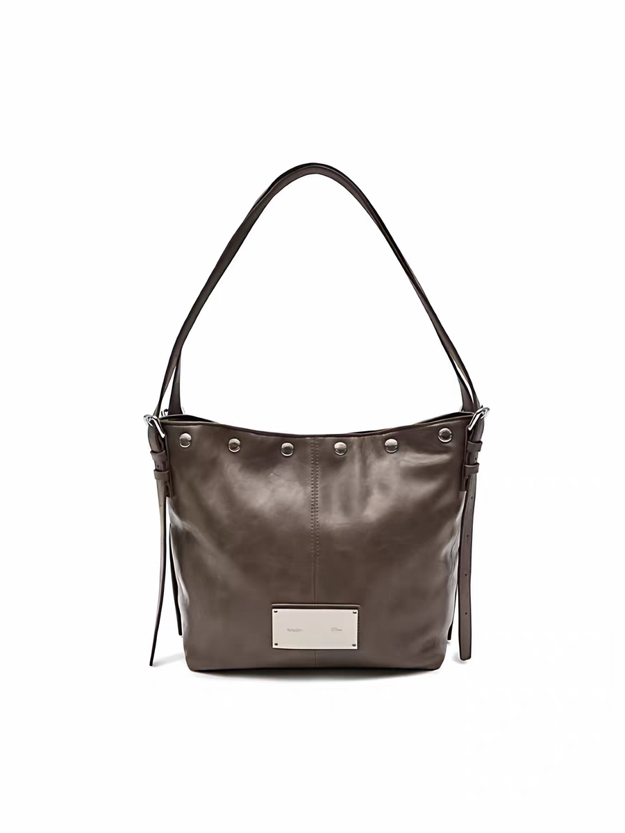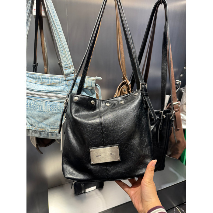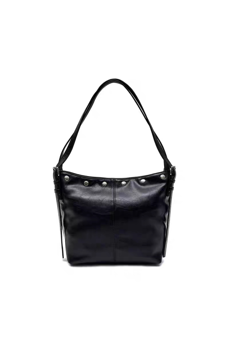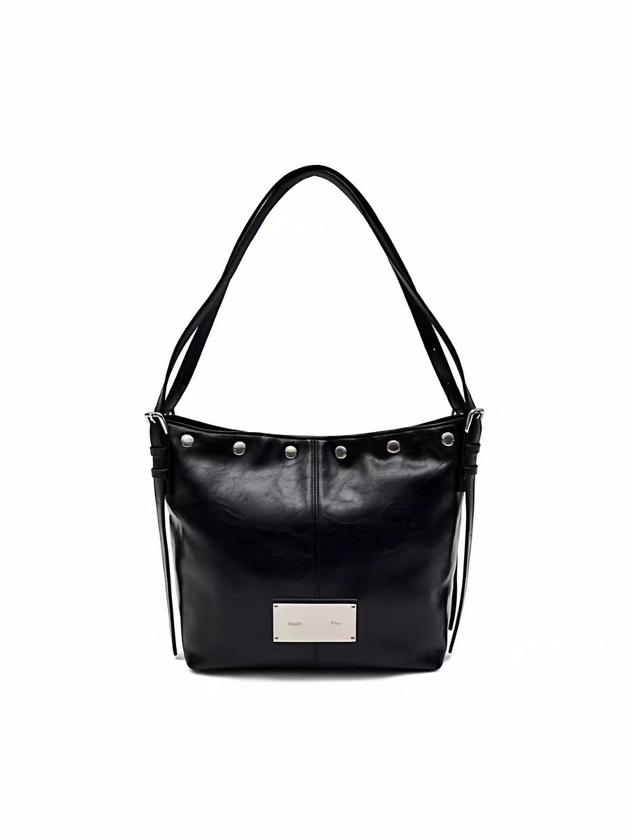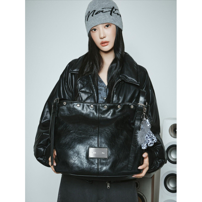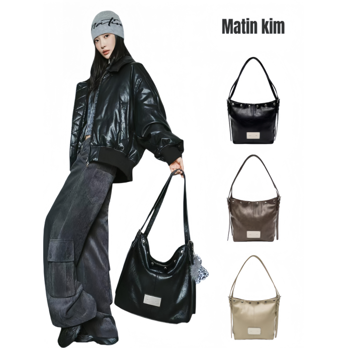 韓國Matin kim托特包油蠟皮腋下包鉚釘單肩手提包百搭機車水桶包