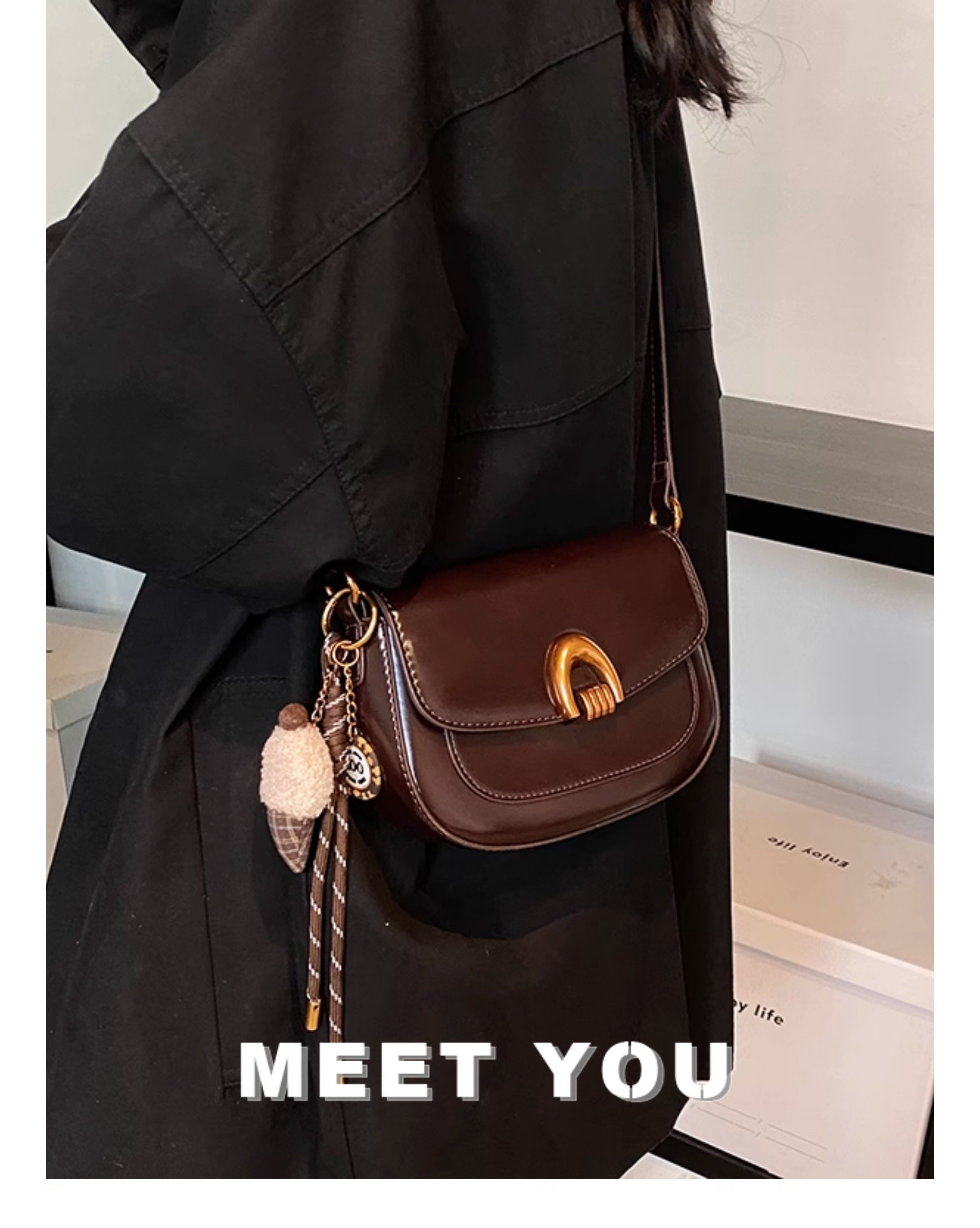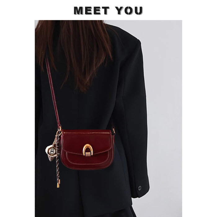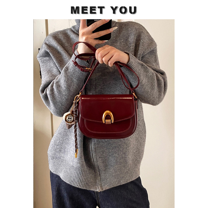 紅色超火精緻馬鞍包包女式2026新款輕奢小衆高級感百搭單肩斜後後背包
