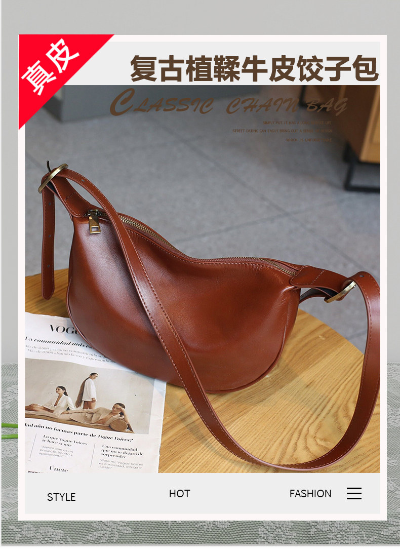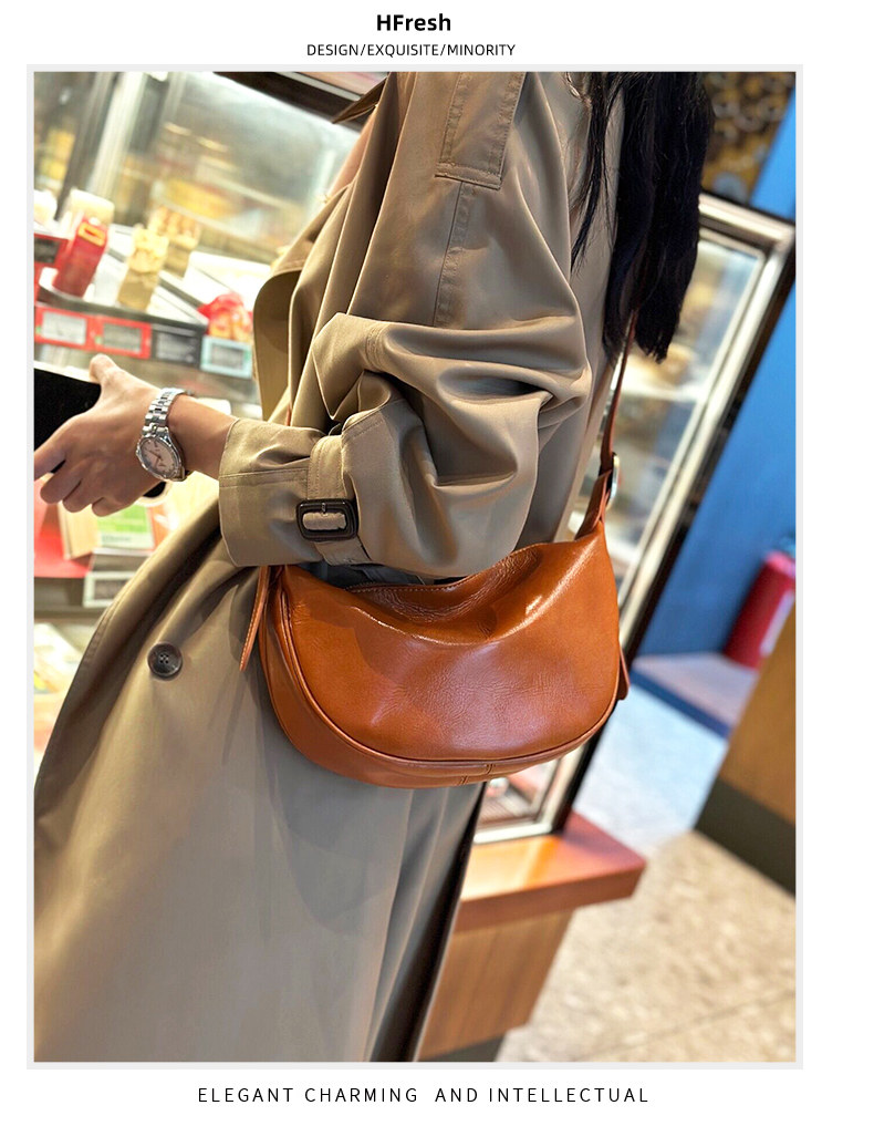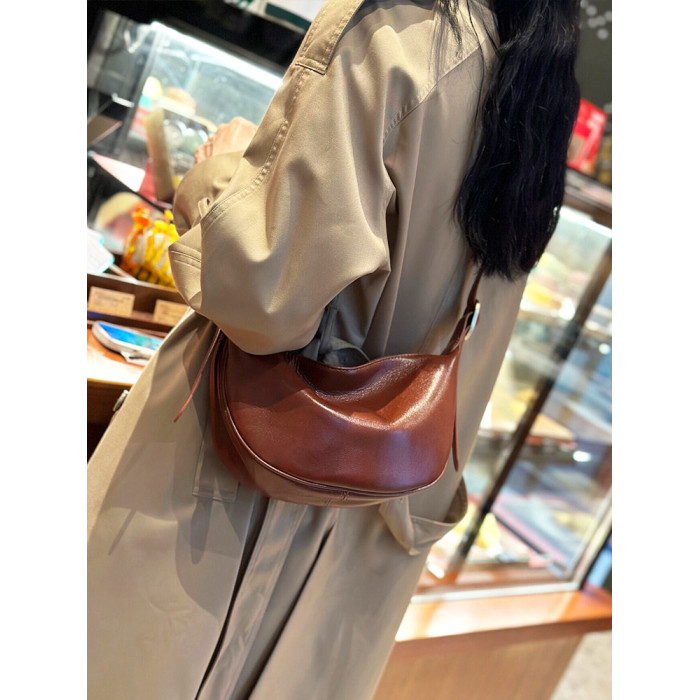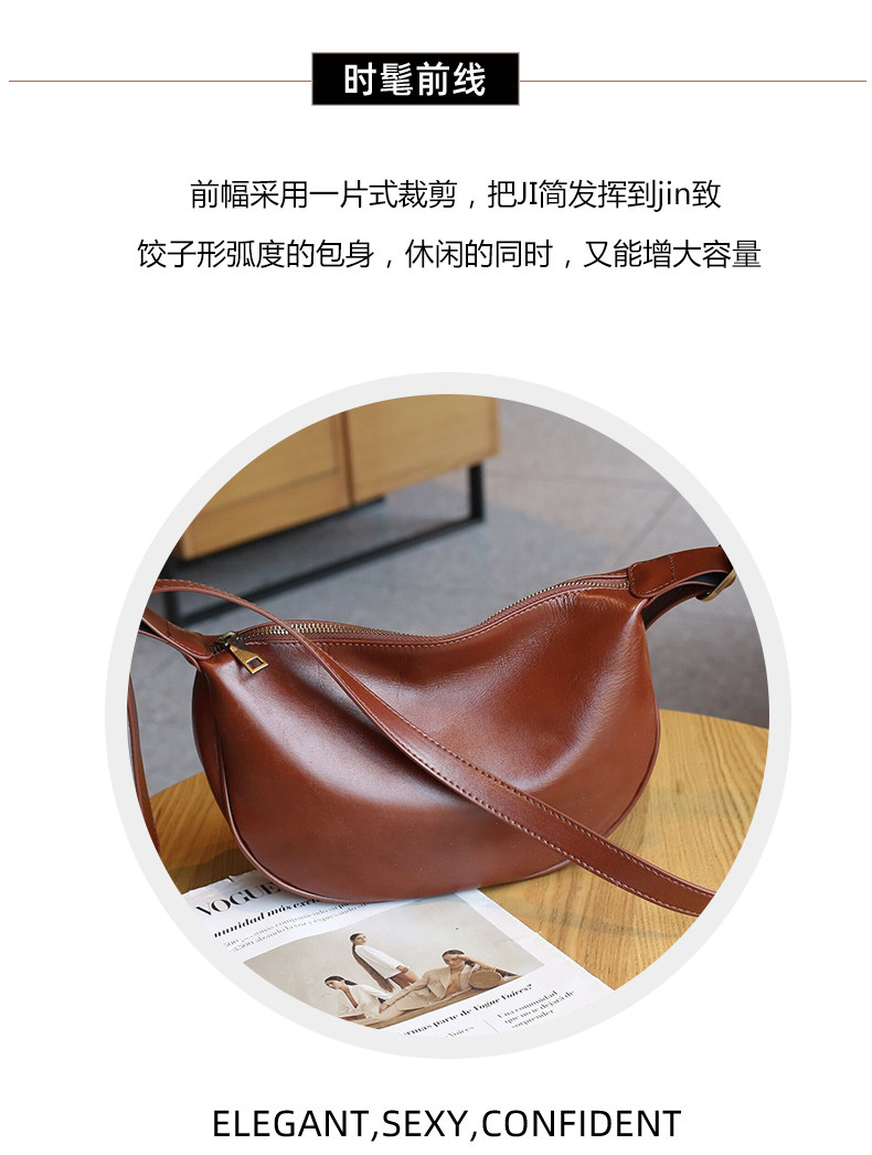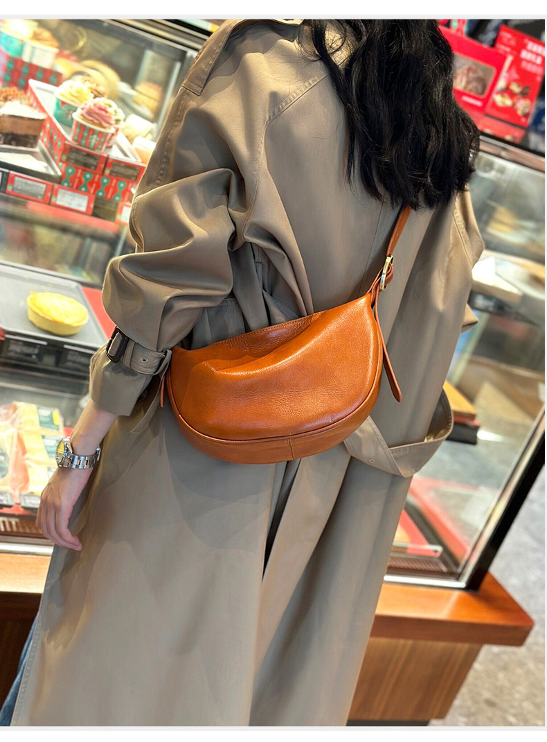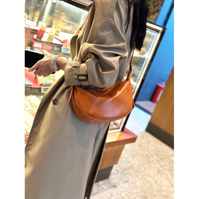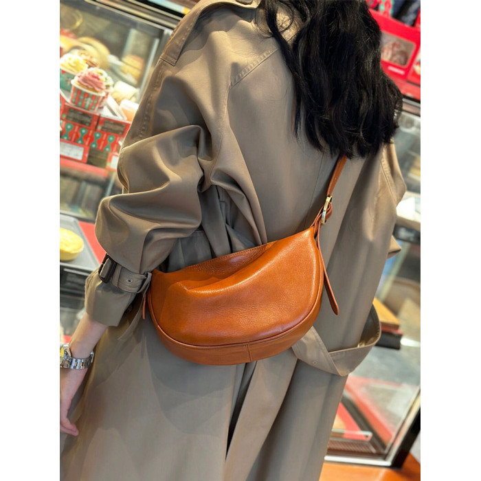 真皮斜後後背包女2024新款小衆高級感餃子包復古寬肩帶腰包牛皮馬鞍包