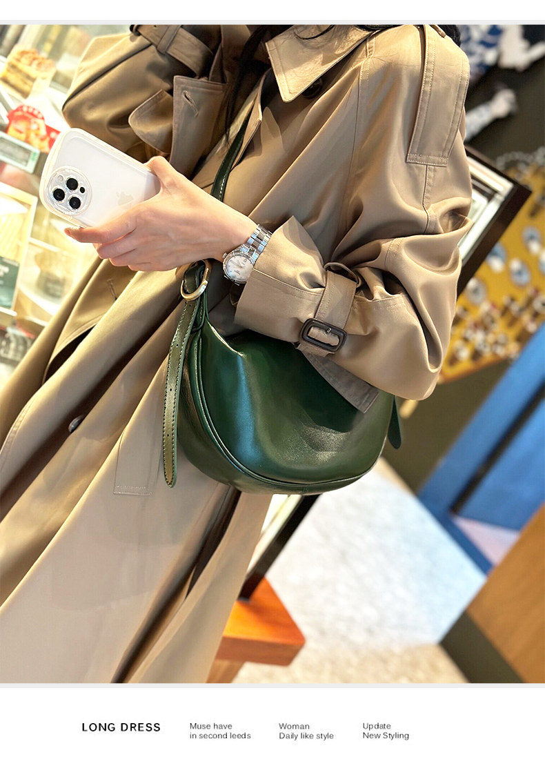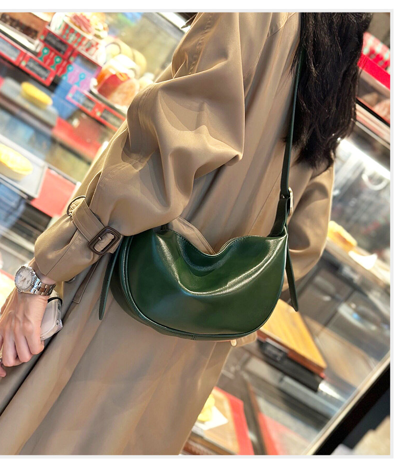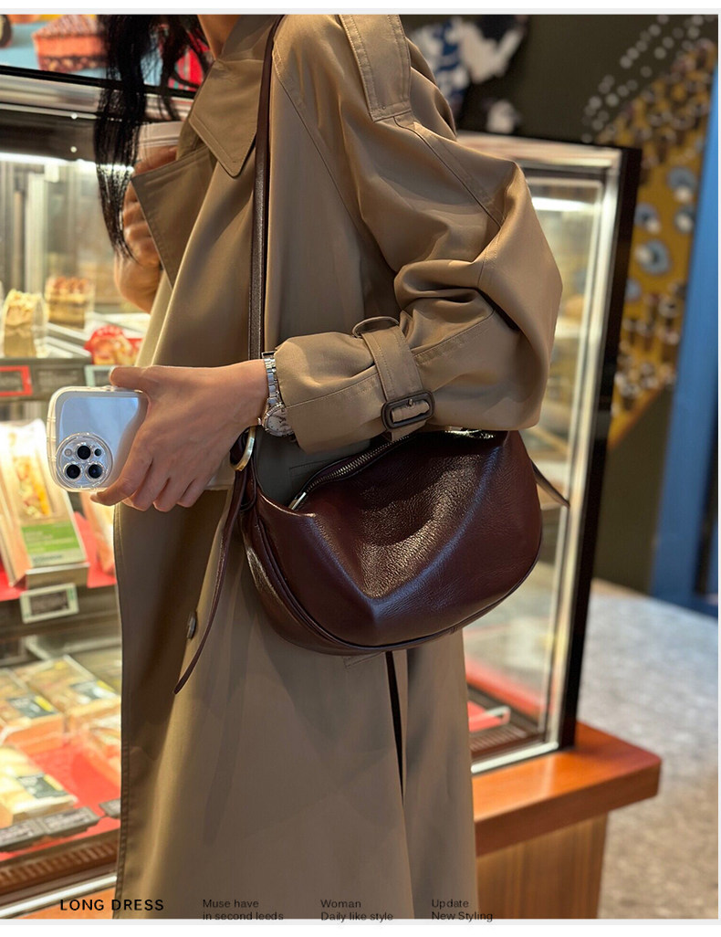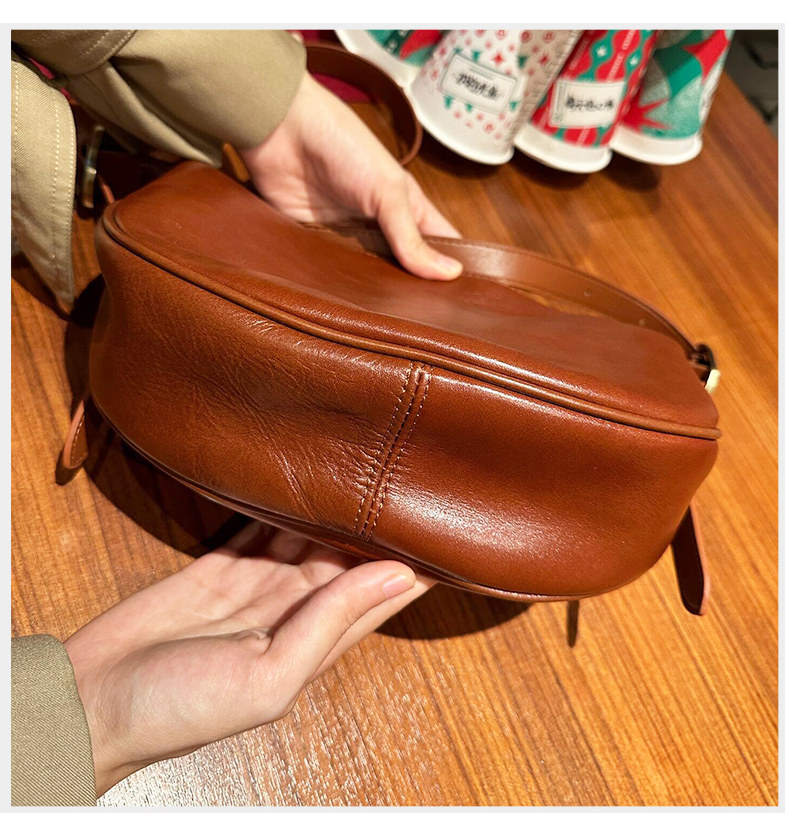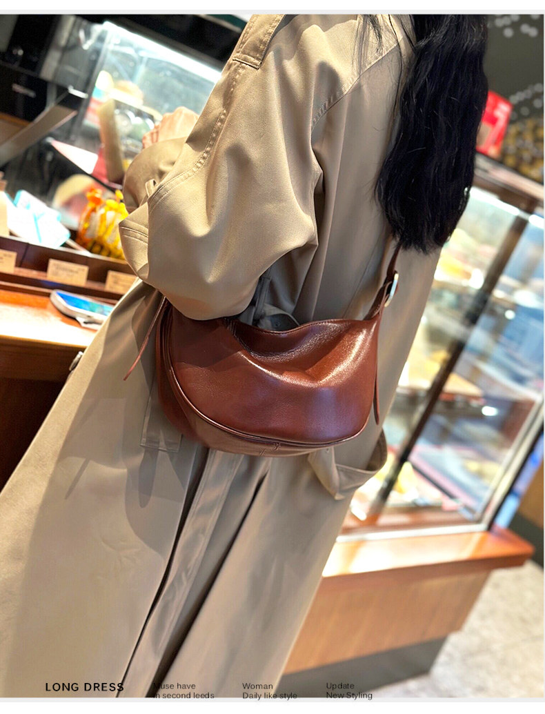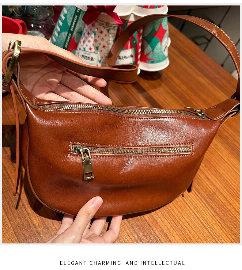 真皮斜後後背包女2024新款小衆高級感餃子包復古寬肩帶腰包牛皮馬鞍包