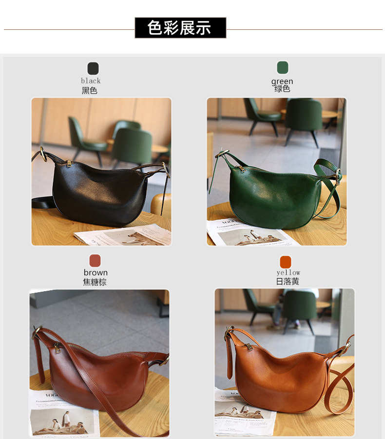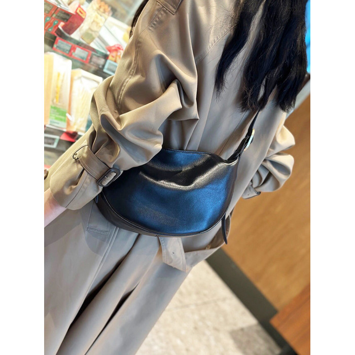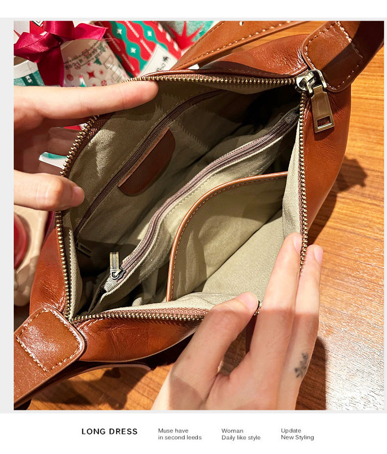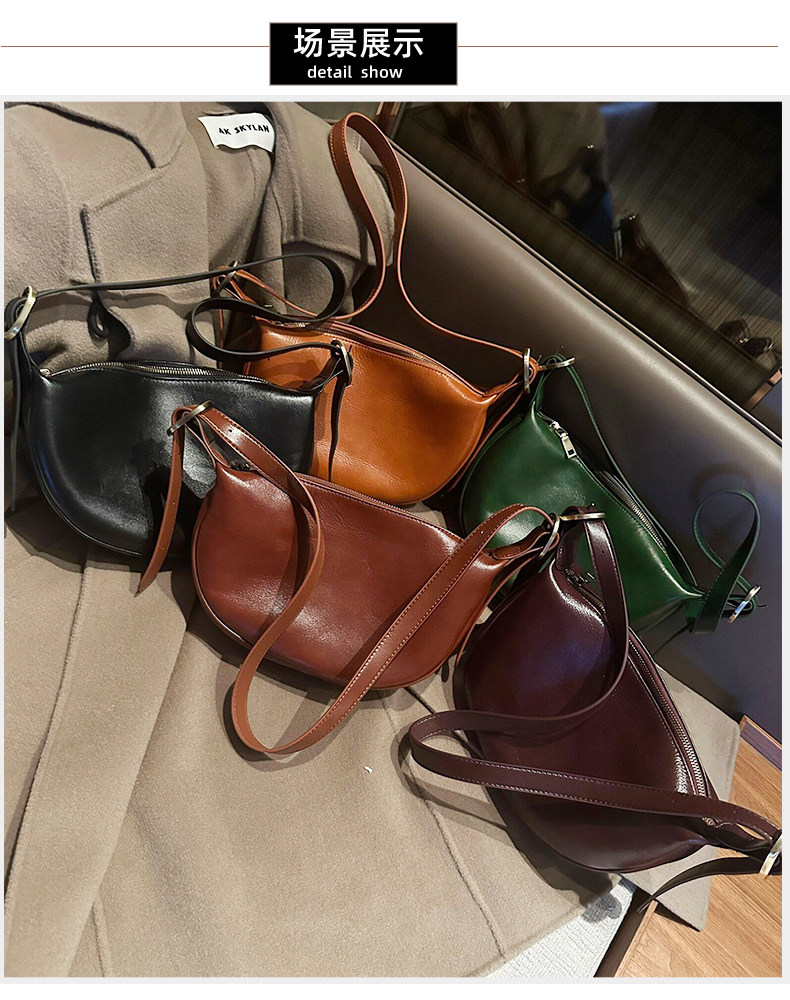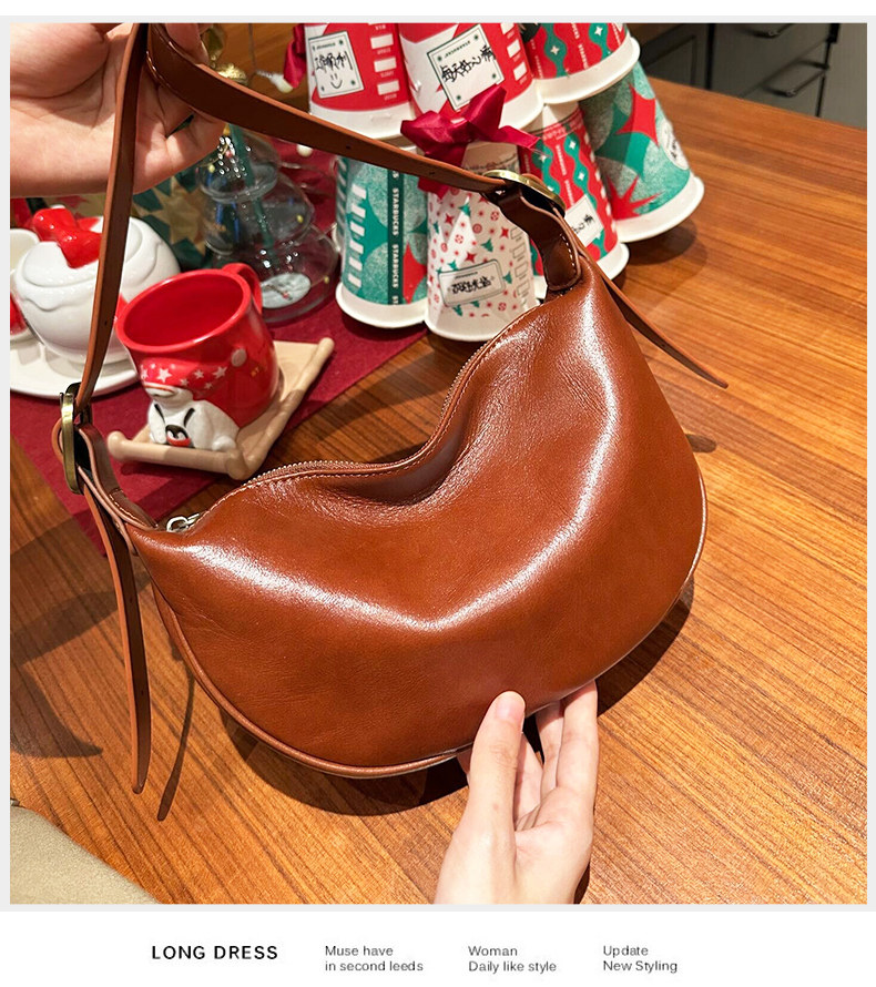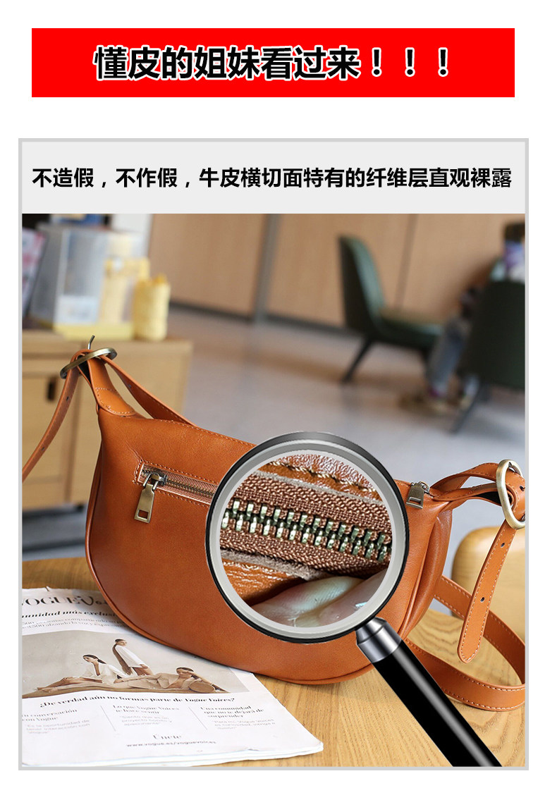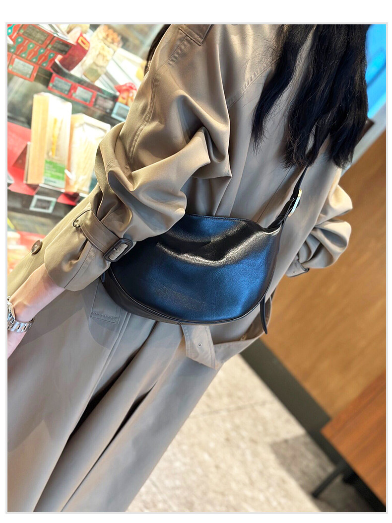 真皮斜後後背包女2024新款小衆高級感餃子包復古寬肩帶腰包牛皮馬鞍包