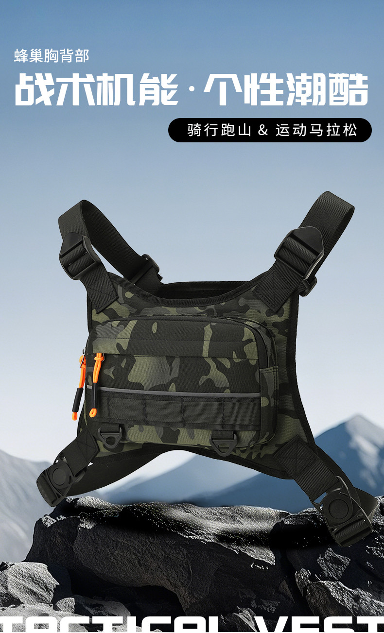 2025新款戶外多功能戰術胸包男運動跑步健身可攜式騎行包迷彩馬甲包