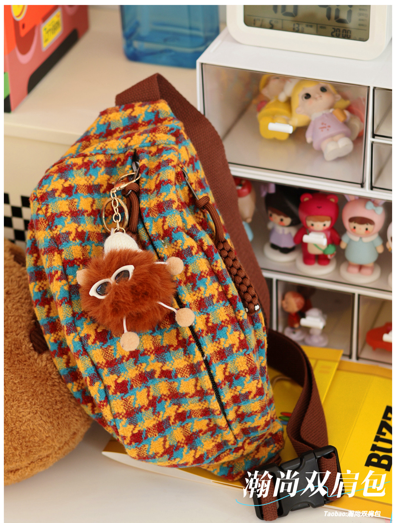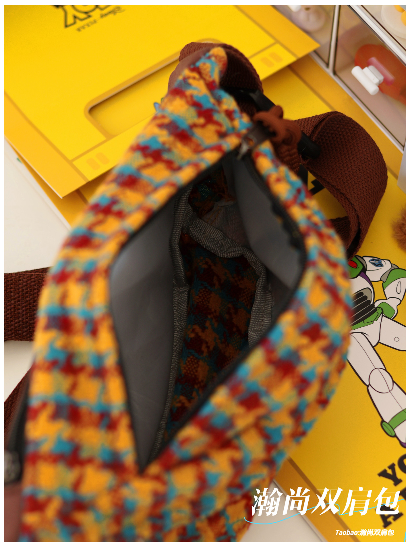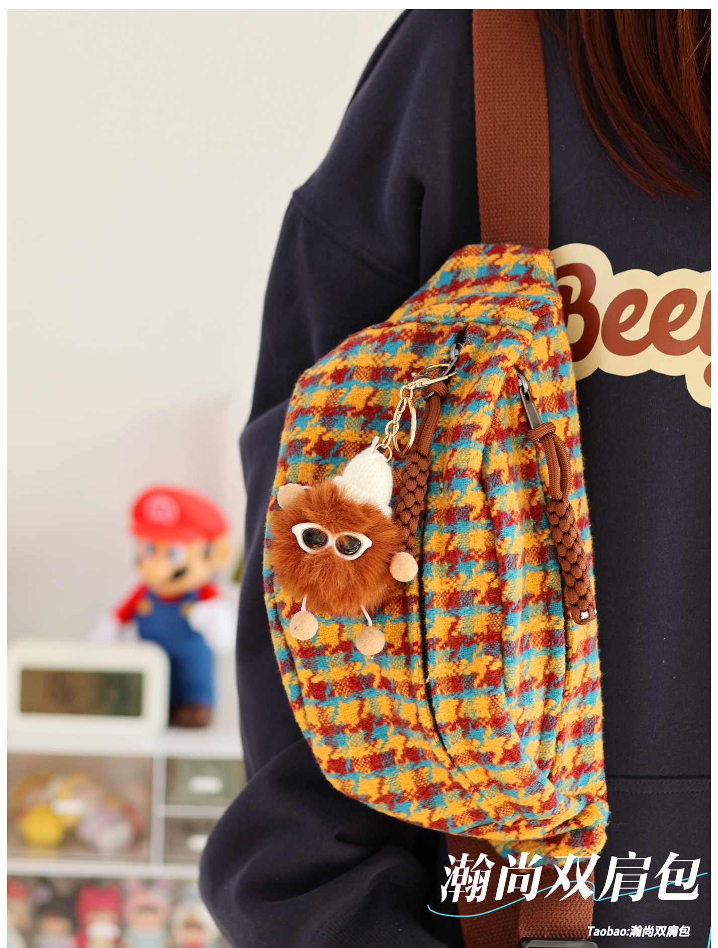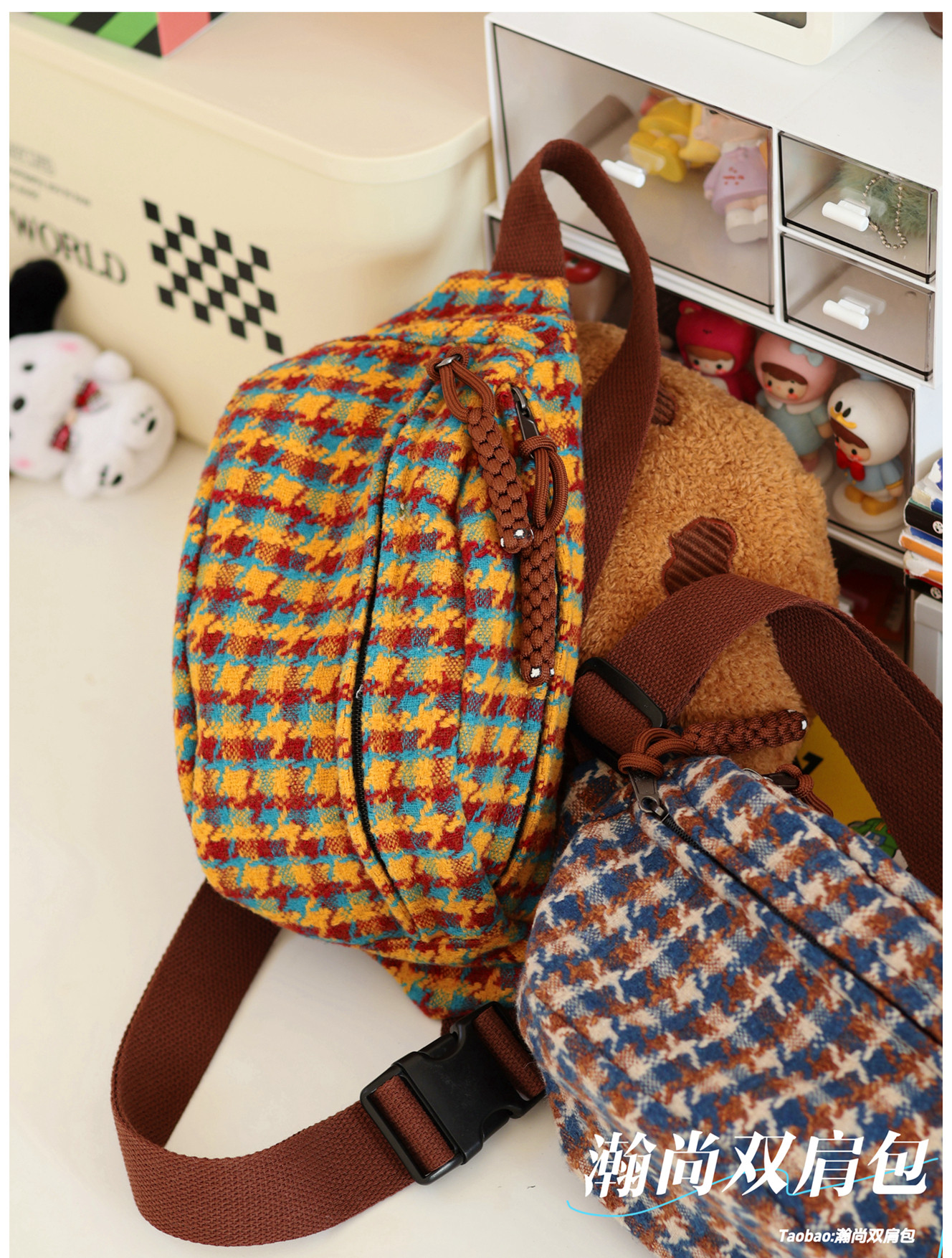 日系ins胸包女2026新款潮毛呢斜後後背包小衆千鳥格子輕便小香風腰包