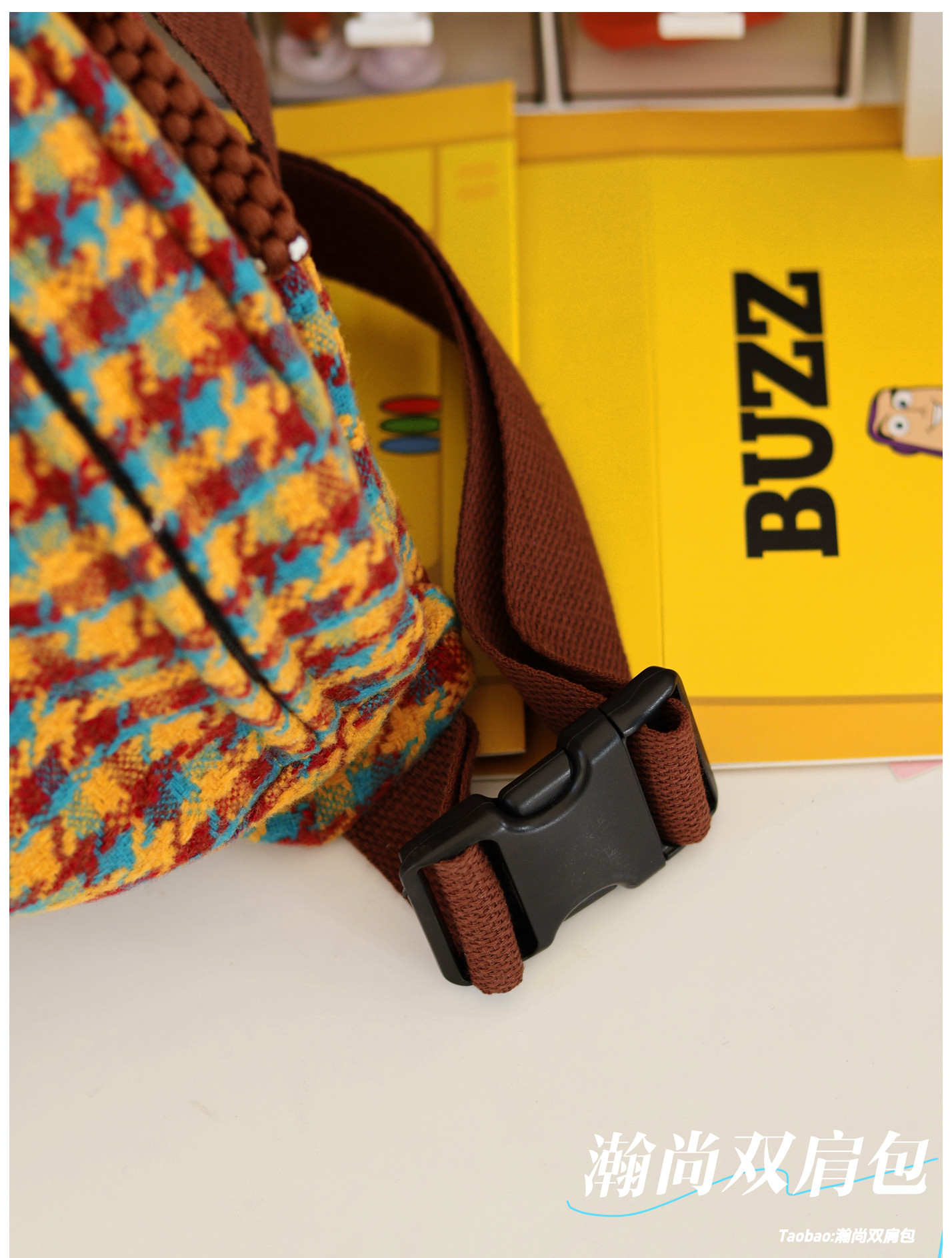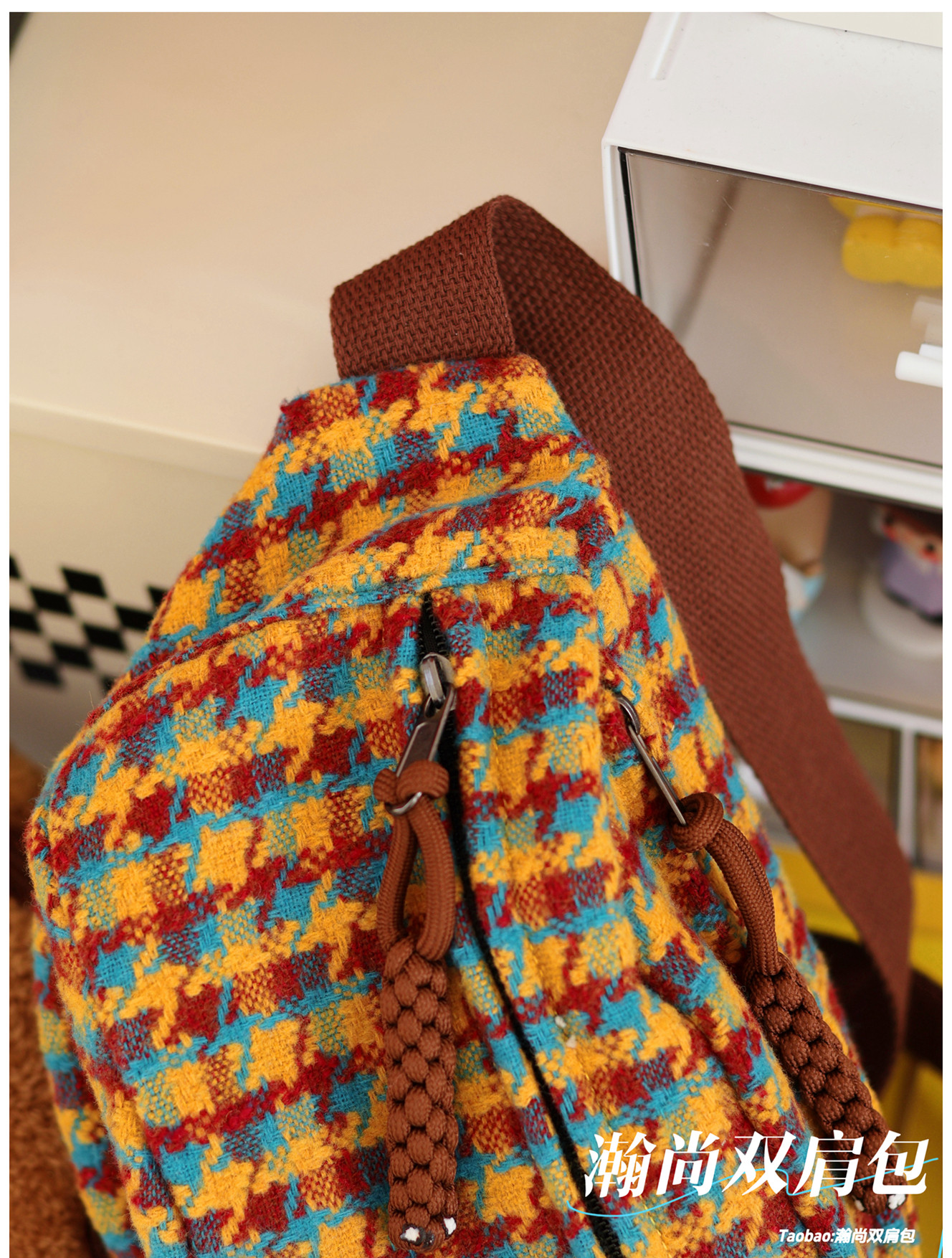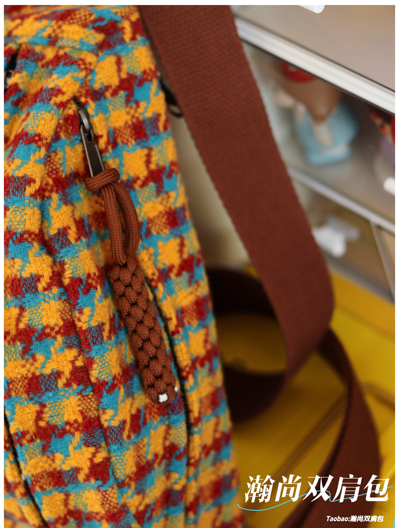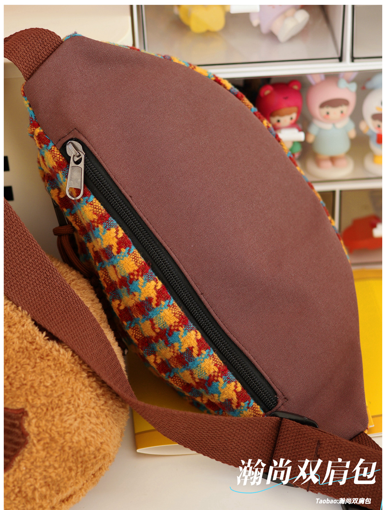 日系ins胸包女2026新款潮毛呢斜後後背包小衆千鳥格子輕便小香風腰包