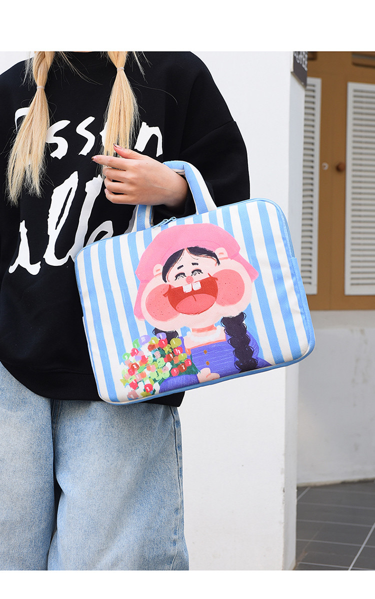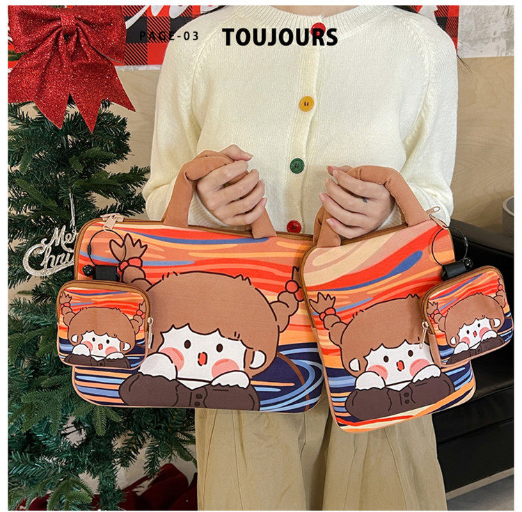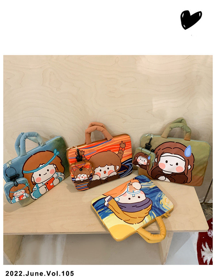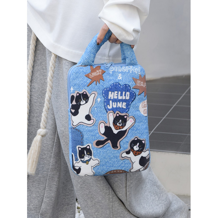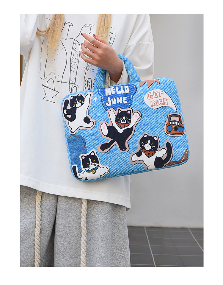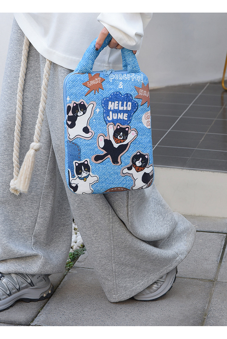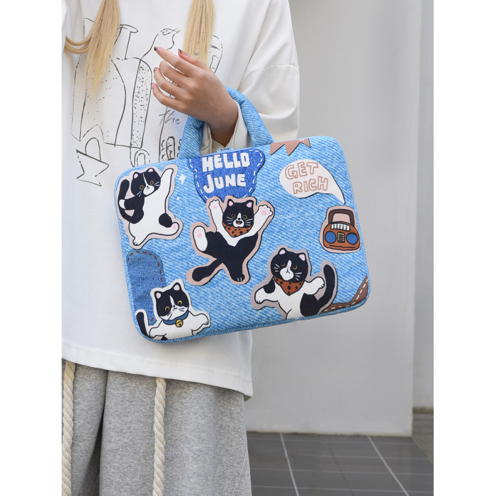 可愛塗鴉貓咪筆記型電腦包女手提11寸ipad 平板保護套15寸收納包