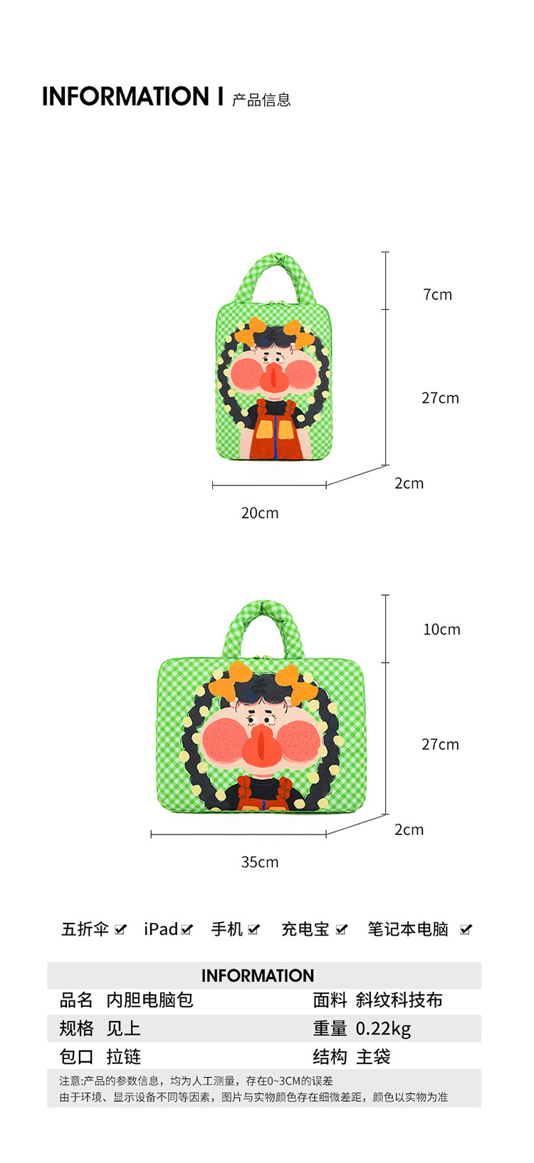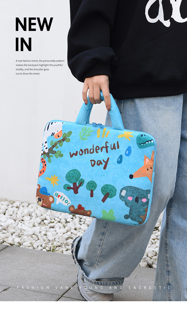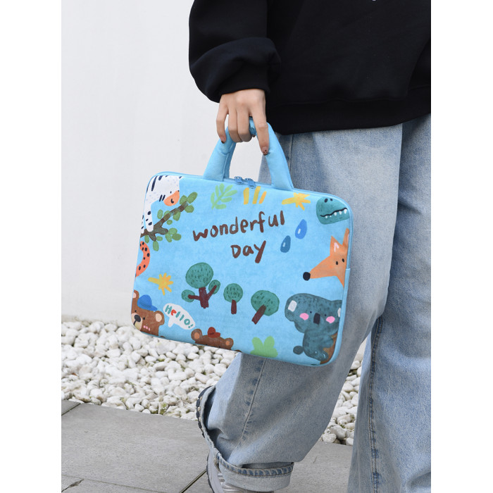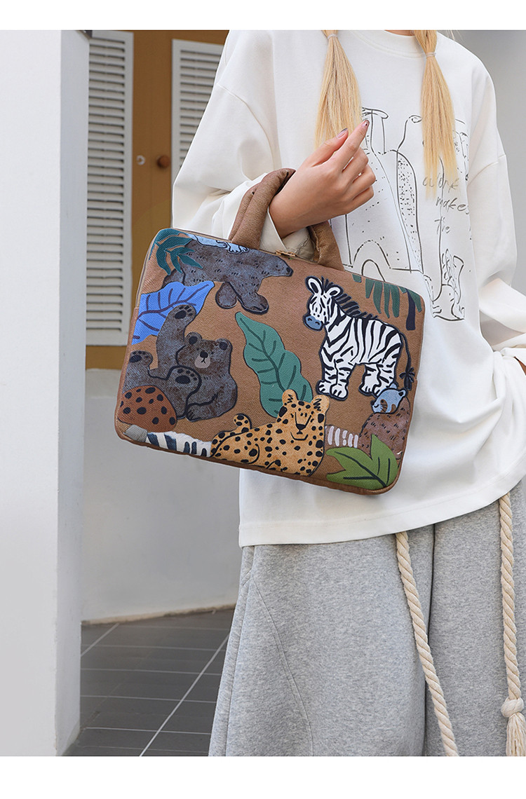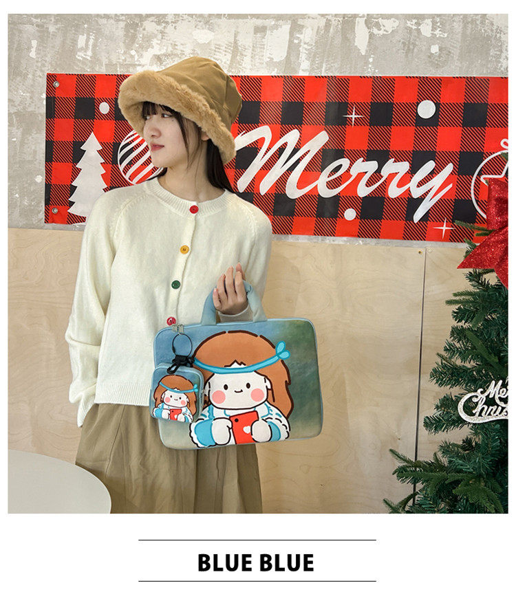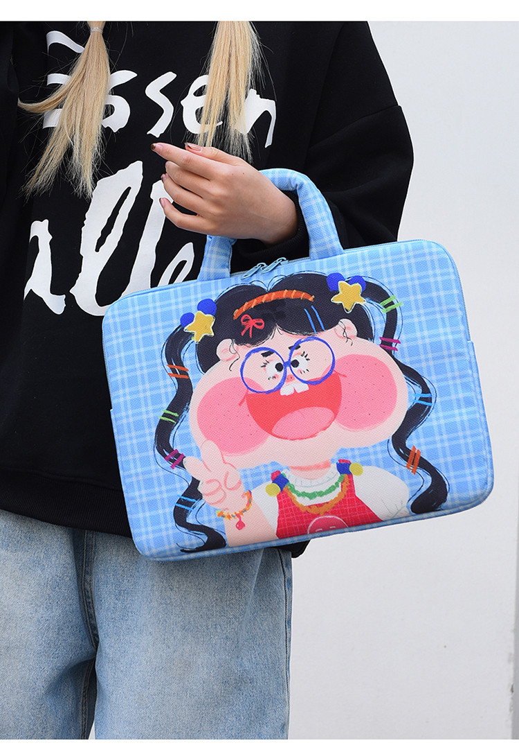 可愛塗鴉貓咪筆記型電腦包女手提11寸ipad 平板保護套15寸收納包