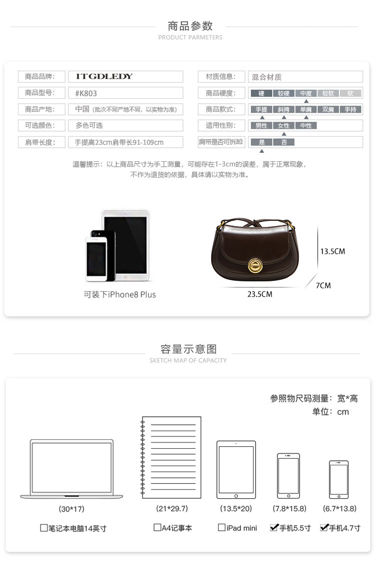 | 箱包硬度 | 軟 |