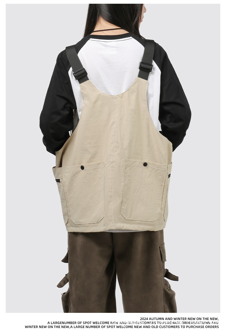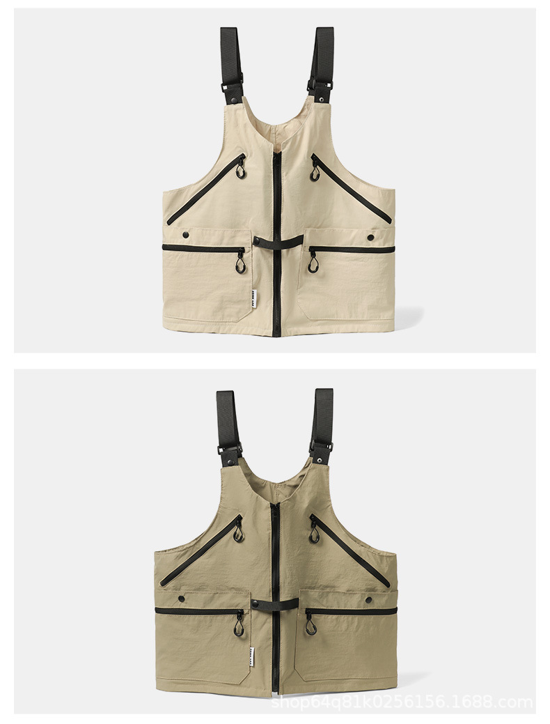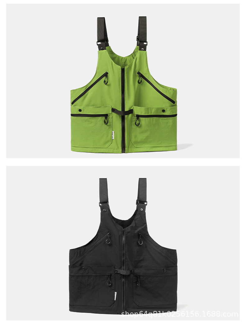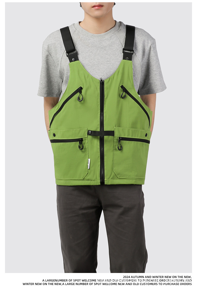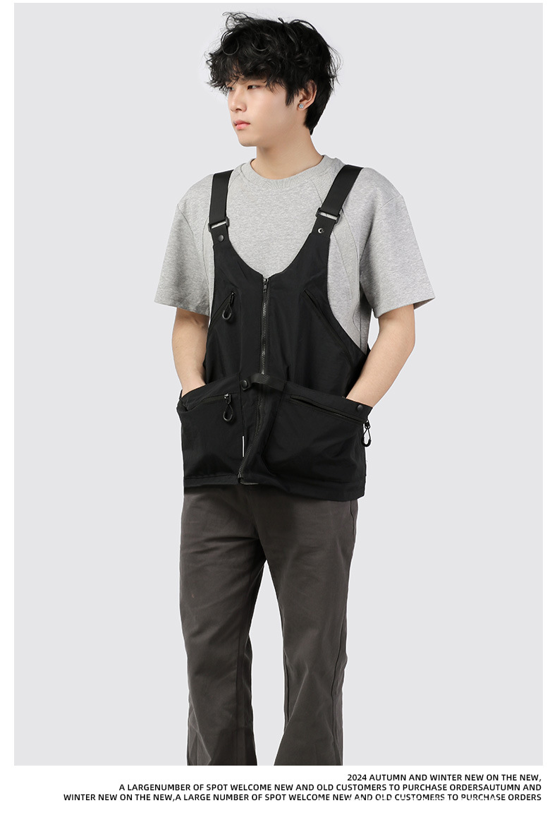 潮牌2024春秋季機能風吊帶馬甲大口袋外搭日系工裝背心男後後背包收納