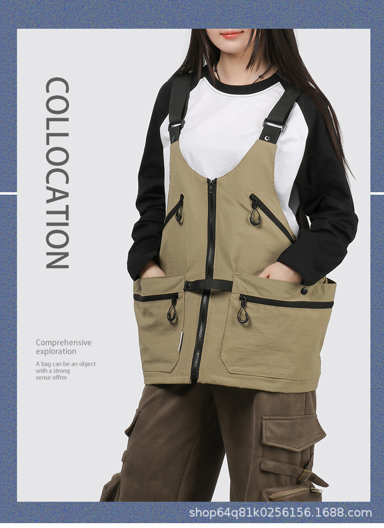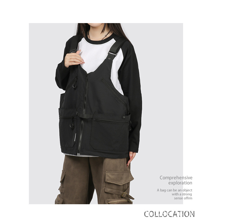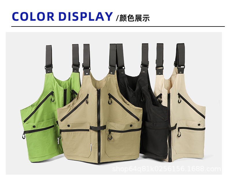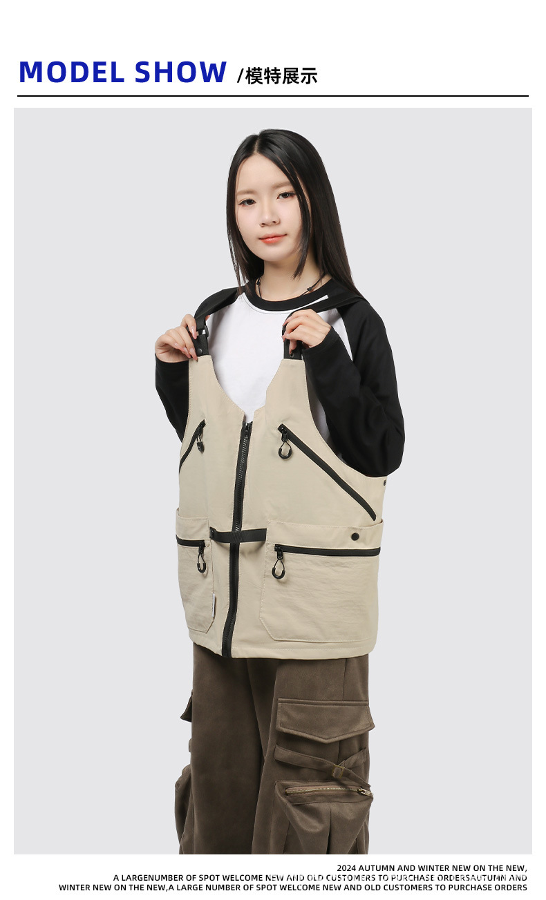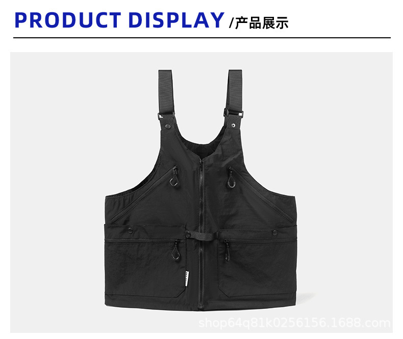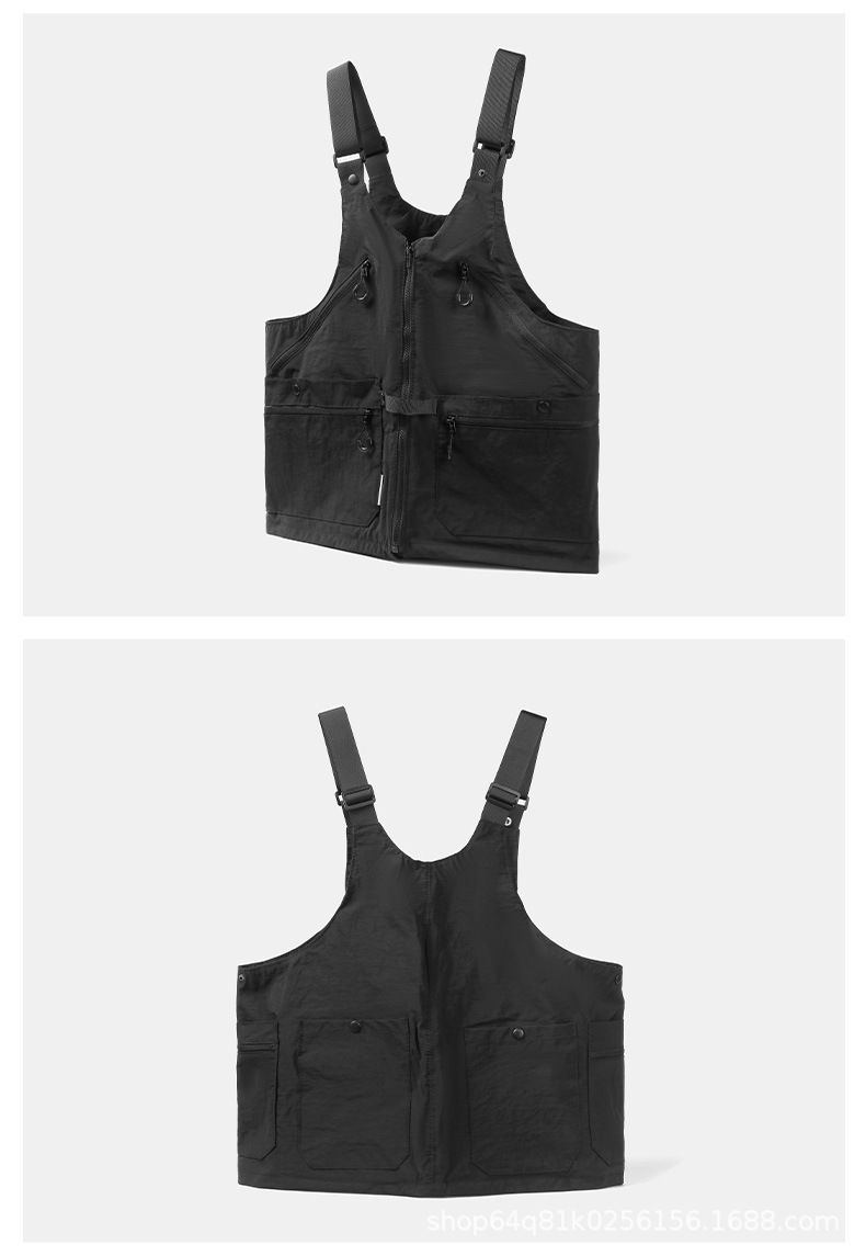 潮牌2024春秋季機能風吊帶馬甲大口袋外搭日系工裝背心男後後背包收納
