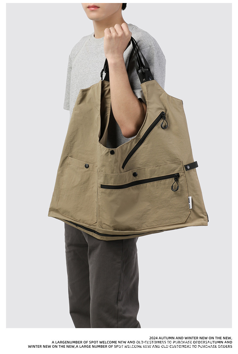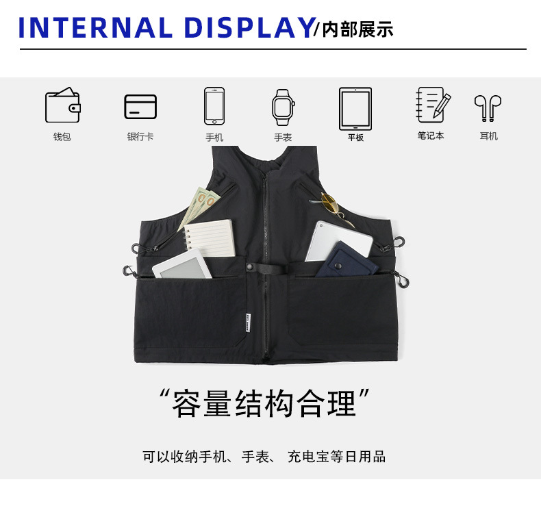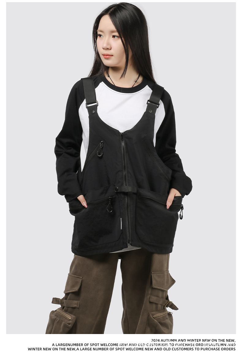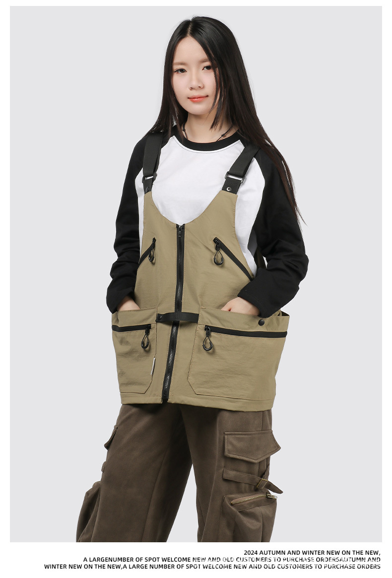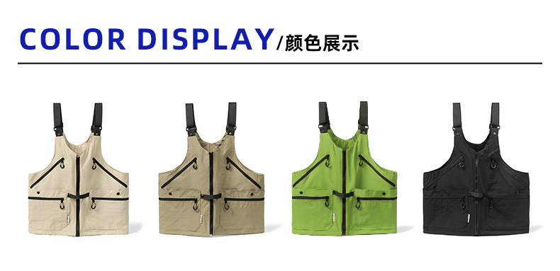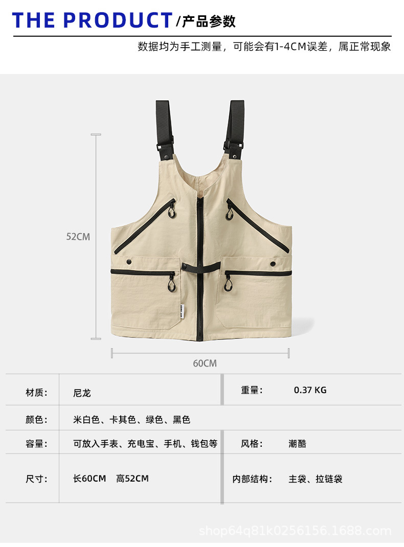 潮牌2024春秋季機能風吊帶馬甲大口袋外搭日系工裝背心男後後背包收納