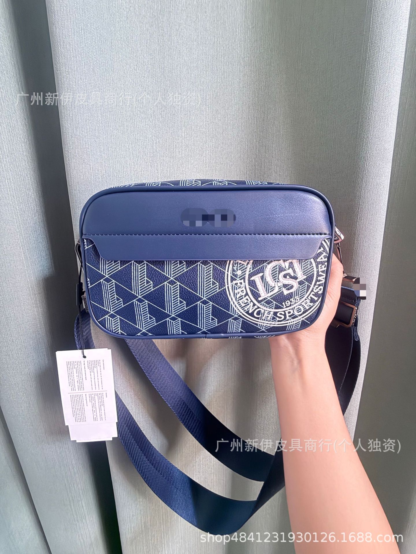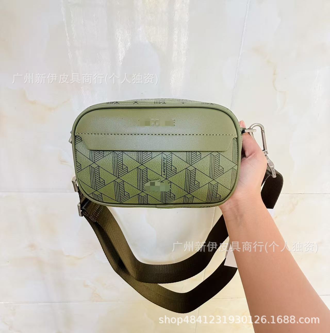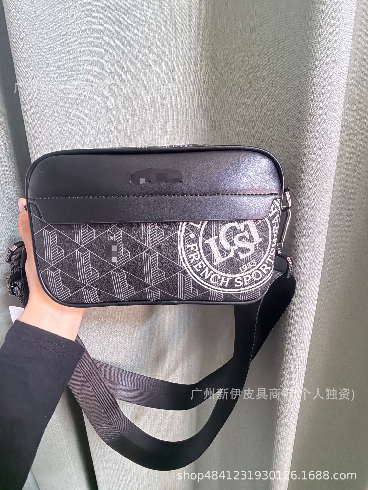 新款潮牌男士休閒單肩格子皮質運動個性時尚斜後後背包高顔值