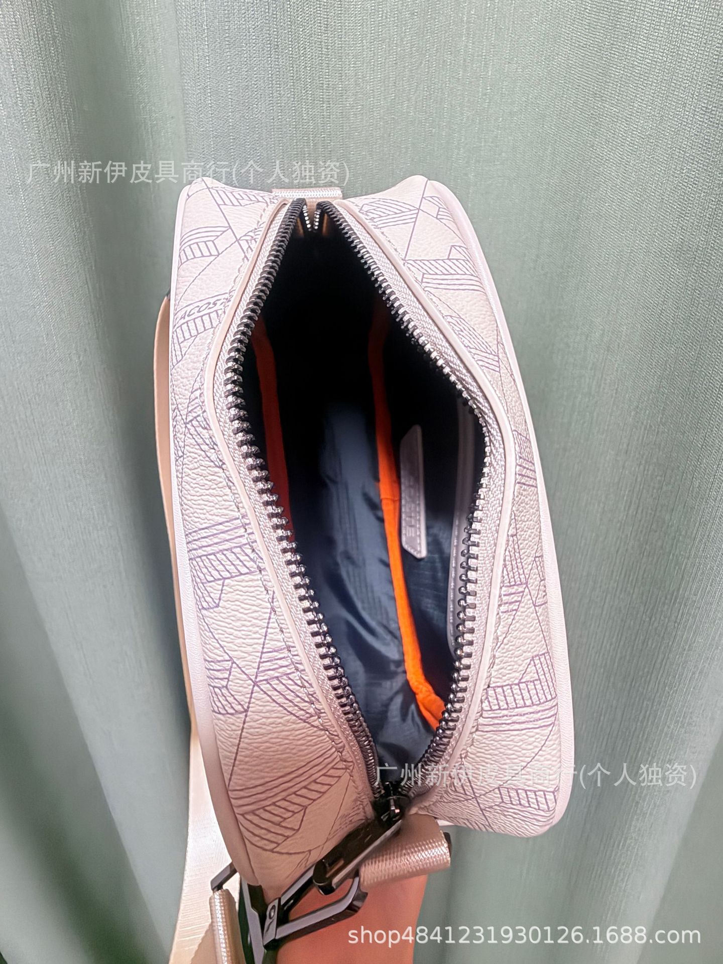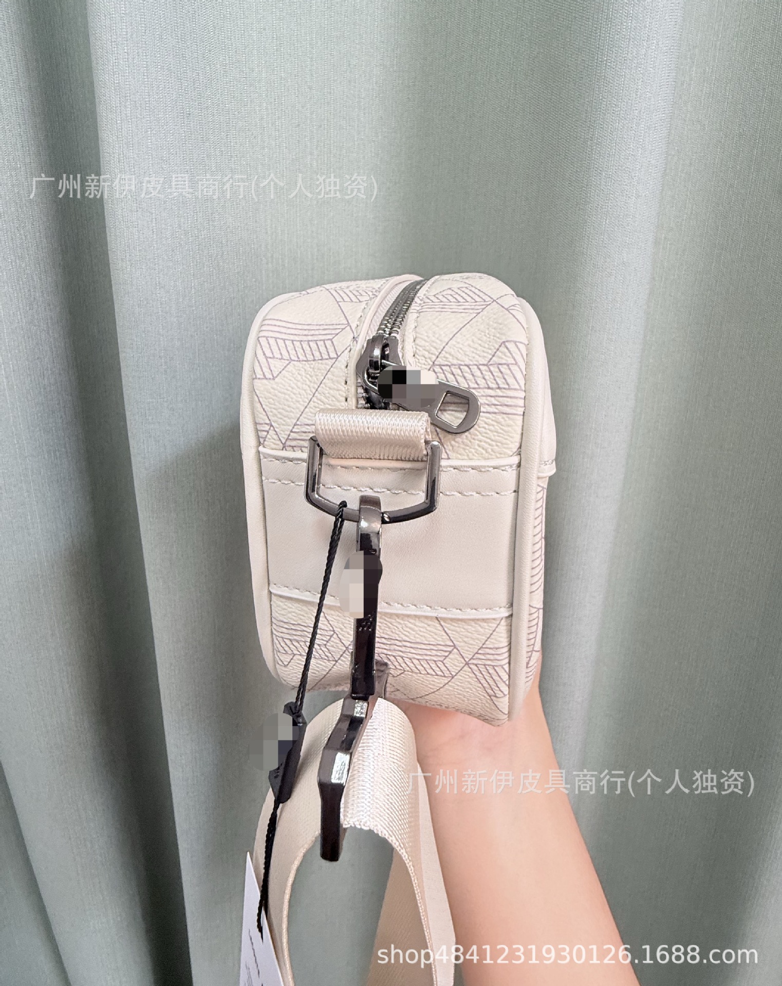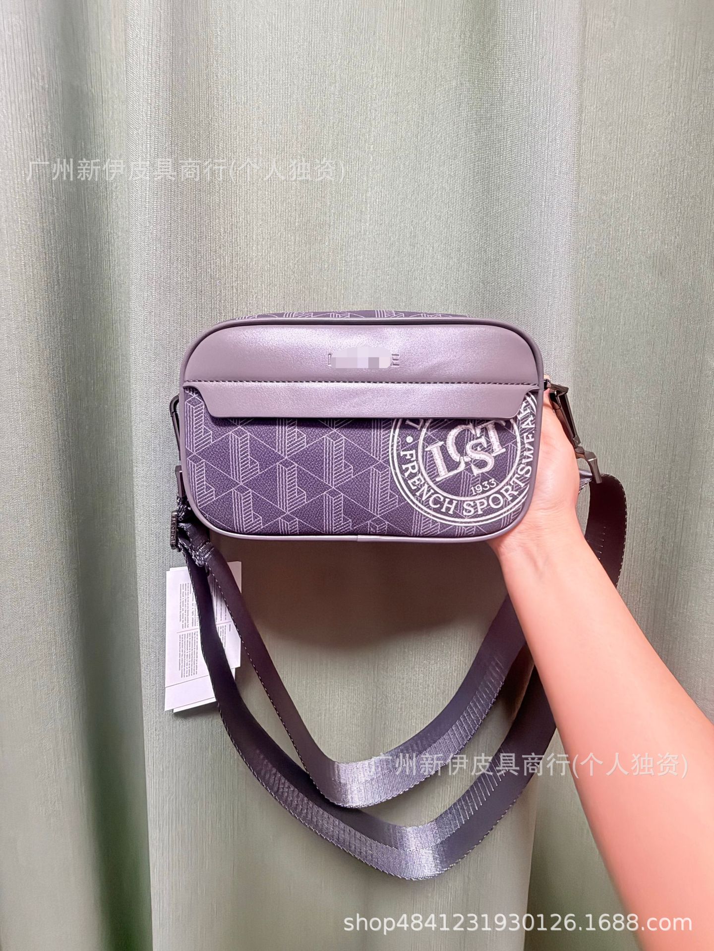 新款潮牌男士休閒單肩格子皮質運動個性時尚斜後後背包高顔值