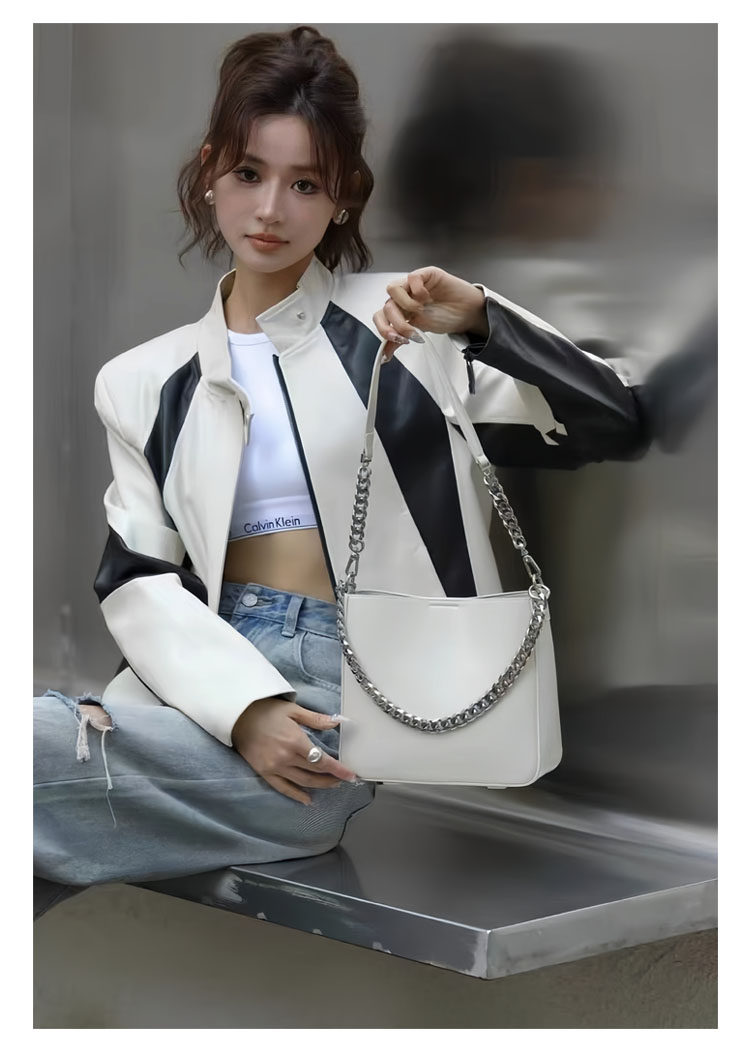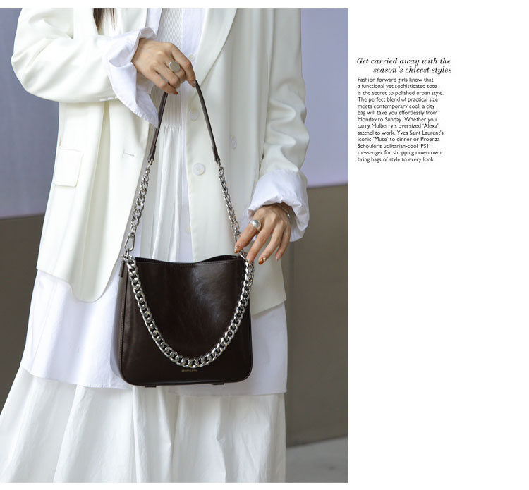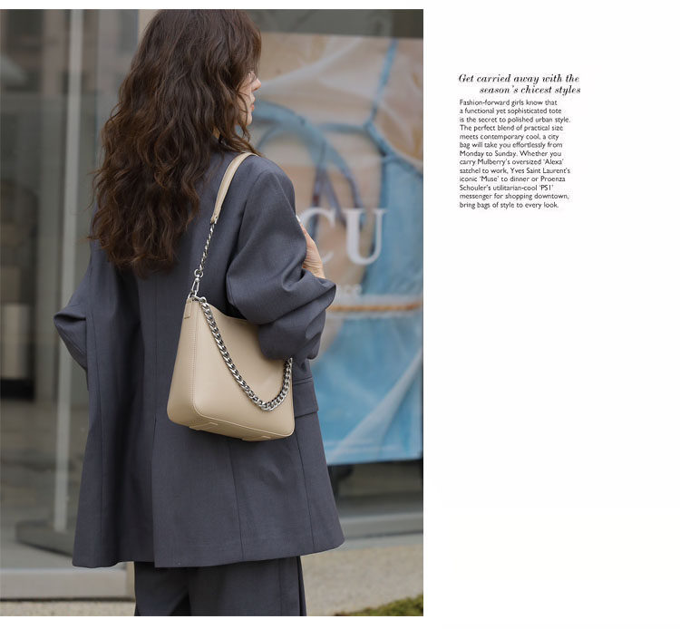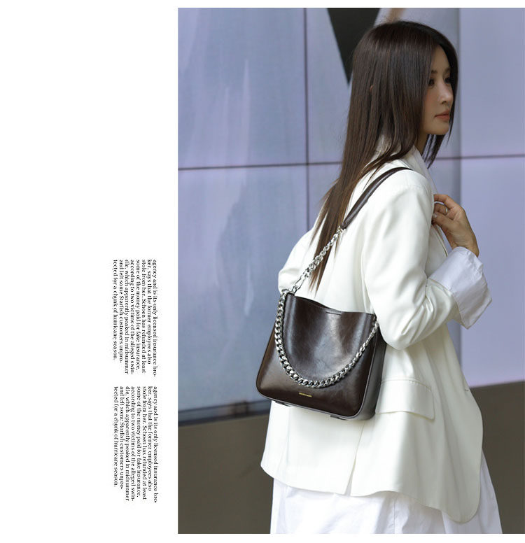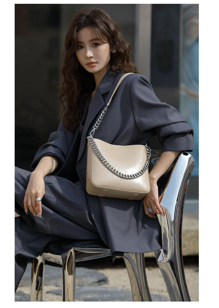 百豆水桶包2026新款牛皮鏈條通勤簡約單肩斜背腋下女包 BD5743-S1