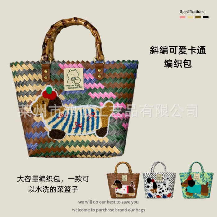 大容量臘腸狗手工編織包菜籃子藤編手提包上班雜物小拎包野餐女包