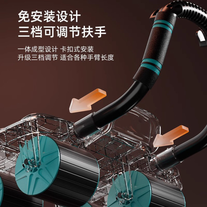 新款六肘撐健腹輪自動迴彈練腹肌練肚子四輪卷腹器男運動健身器材