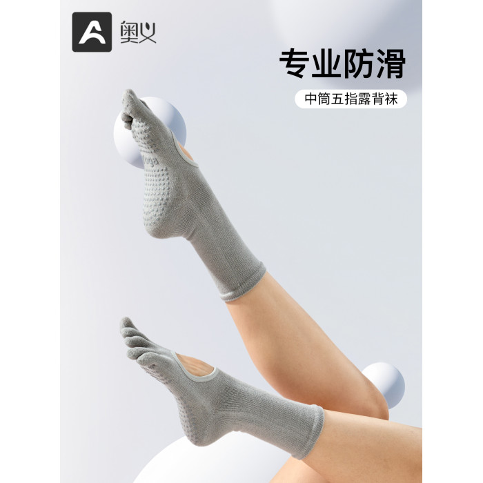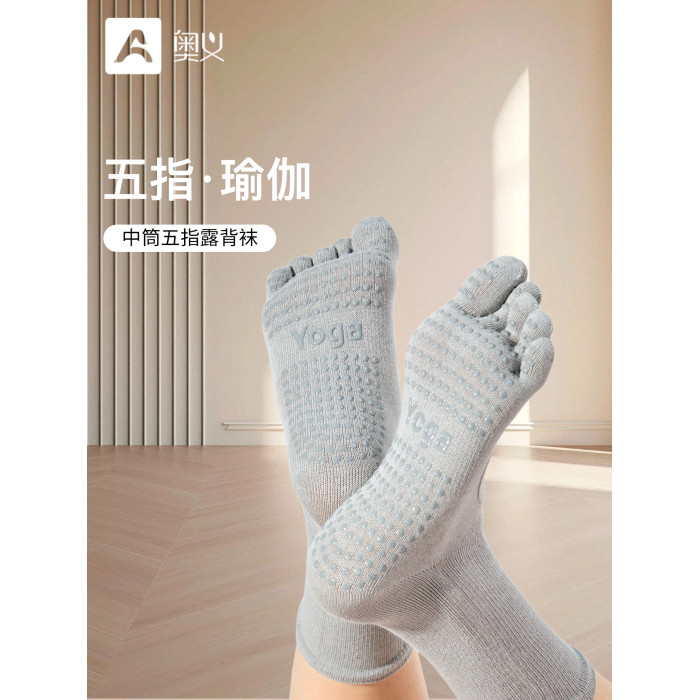 奧義瑜珈襪子女純色中長筒配鯊魚褲健身運動襪普拉提舞蹈四季防滑