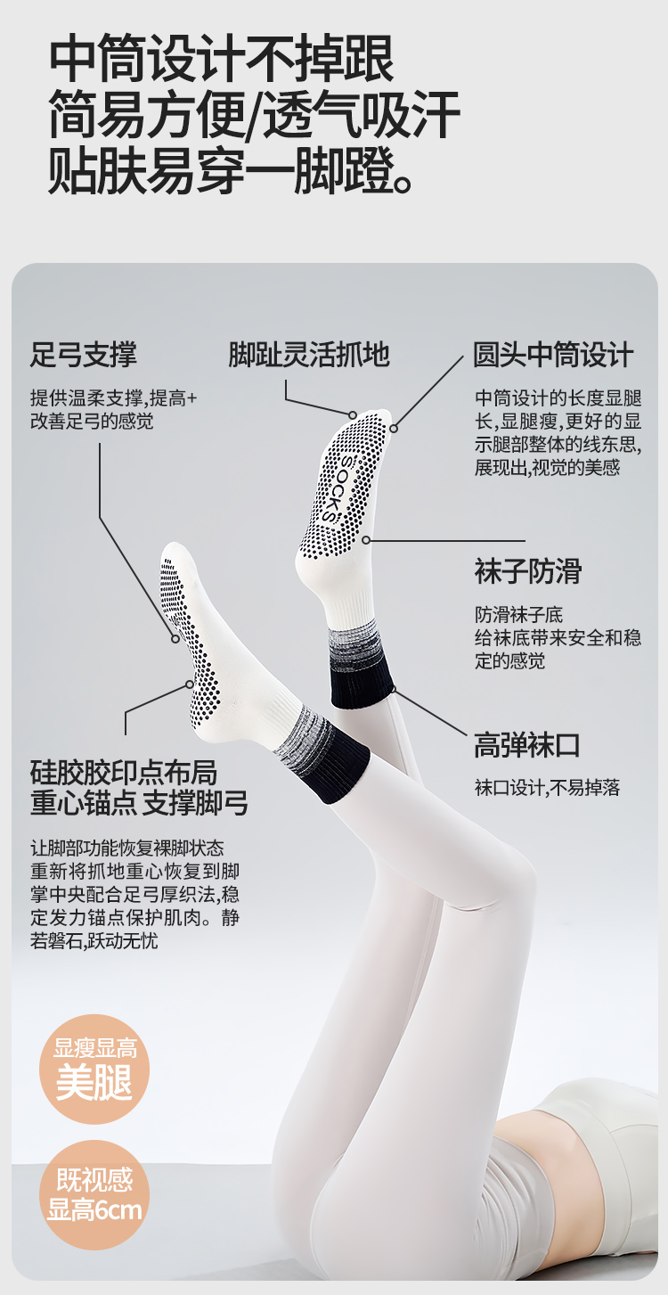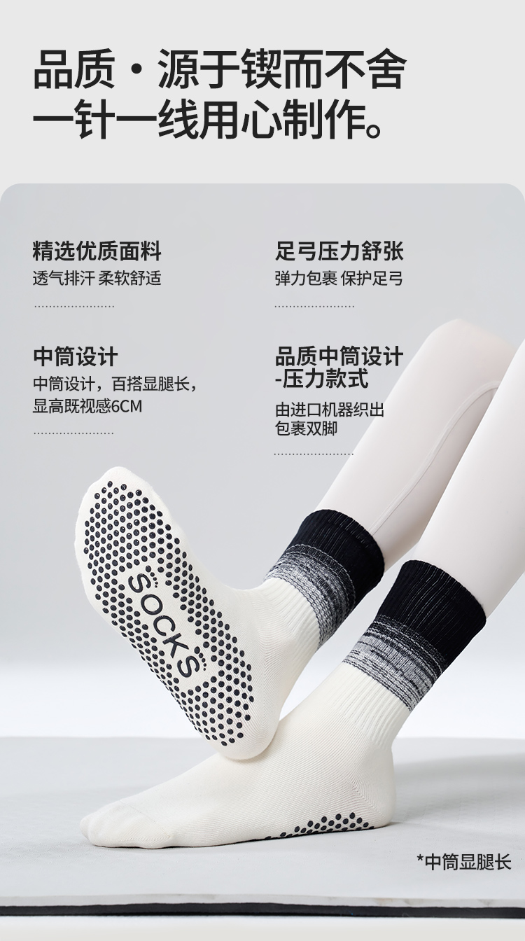 防滑瑜珈襪成人秋冬專業普拉提襪子女健身襪中筒襪厚款室內運動襪