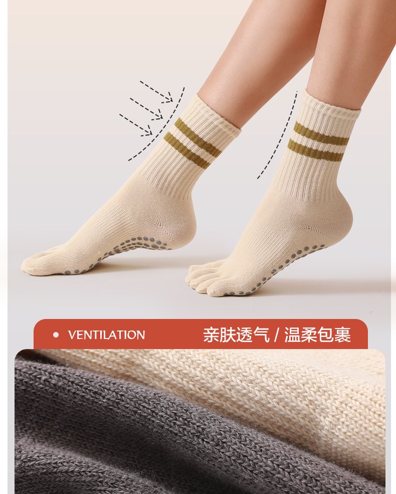 瑜珈襪子防滑專業女普拉提五指運動健身分趾襪中筒秋冬加厚保暖
