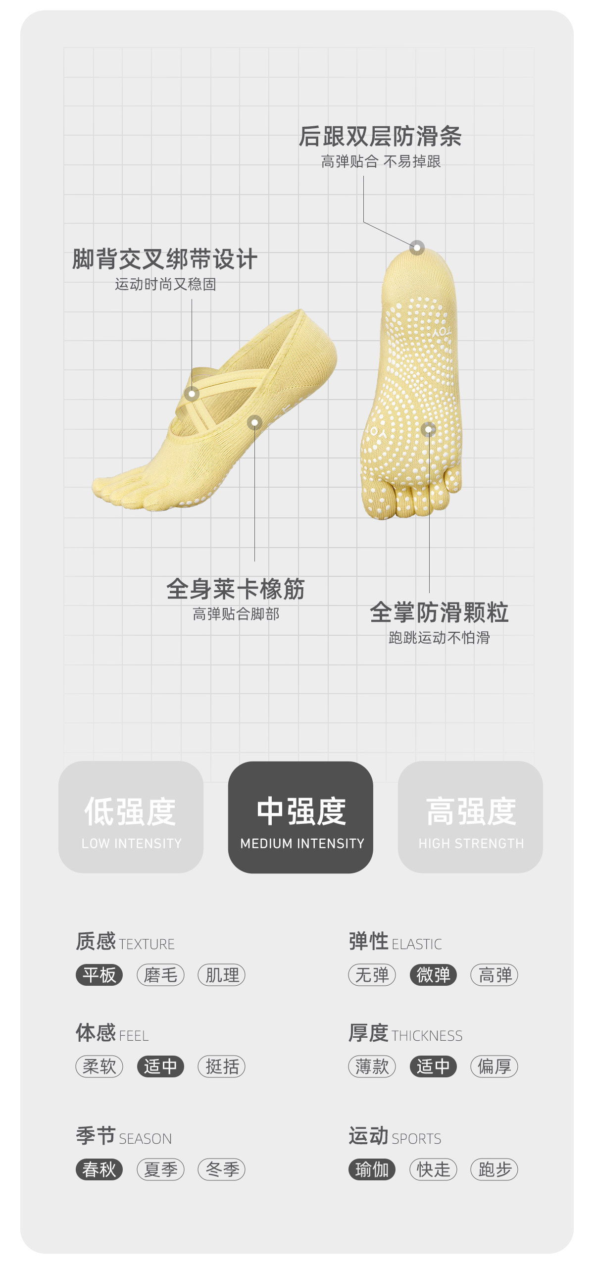 yottoy瑜珈襪子防滑女普拉提五指鞋秋冬室內運動健身舞蹈瑜珈分趾