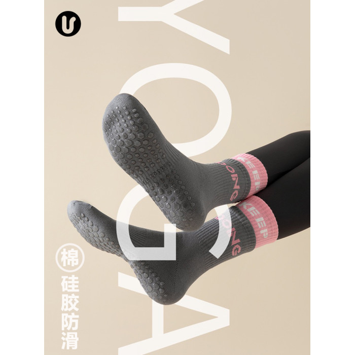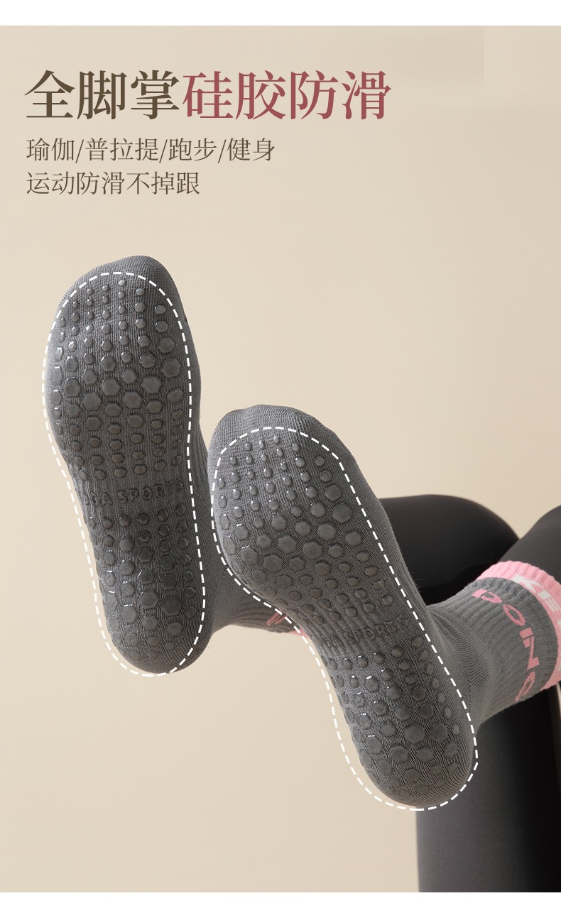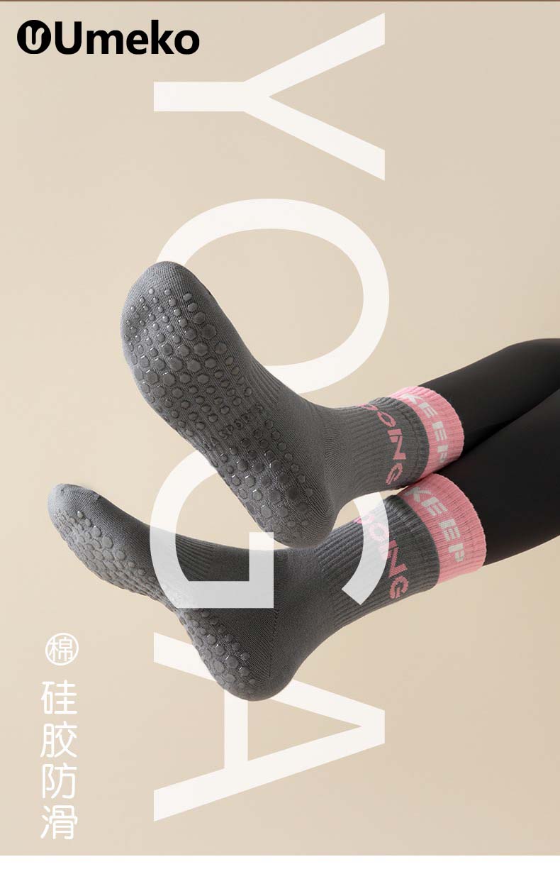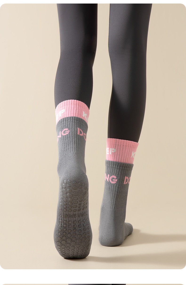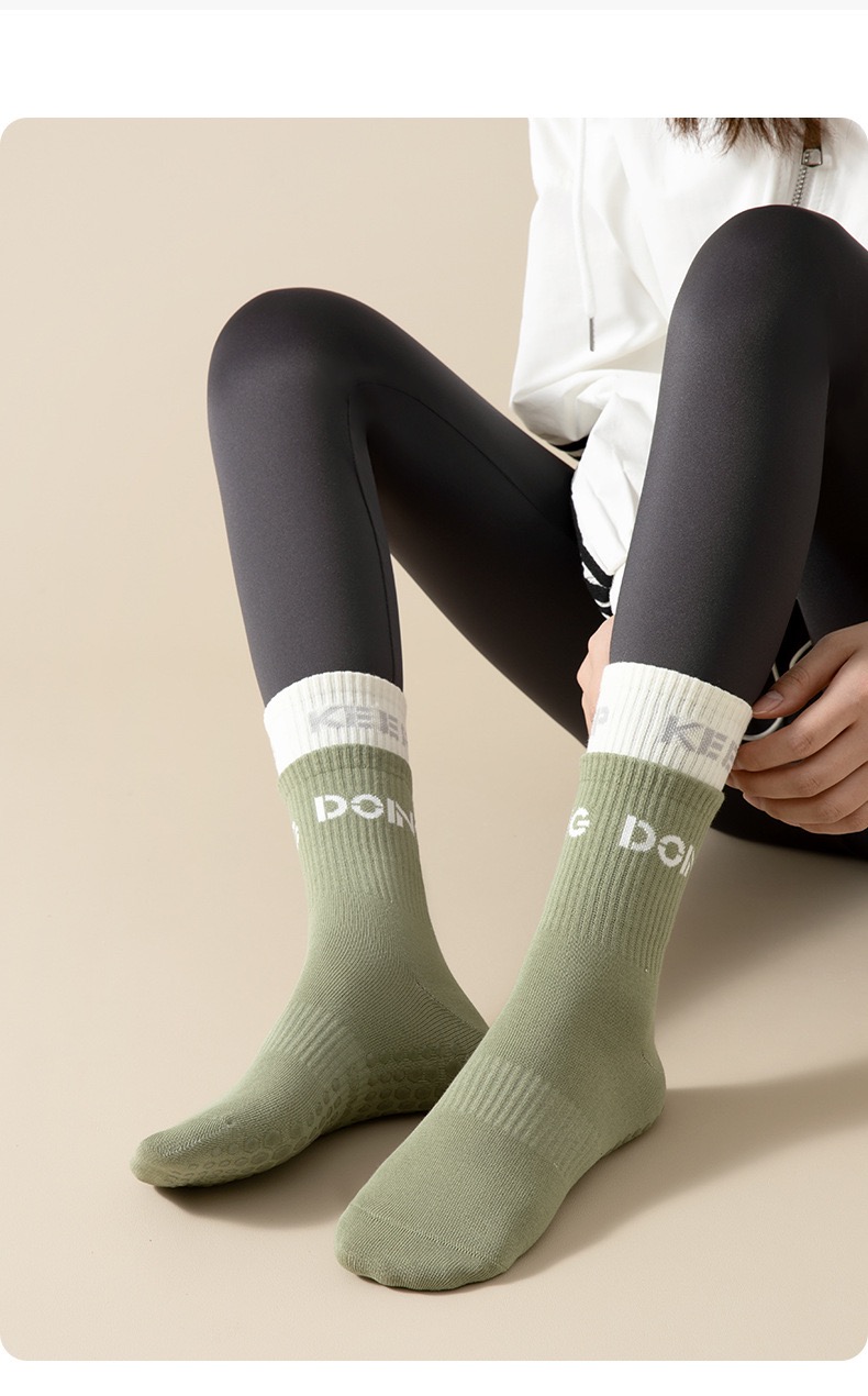 矽膠防滑瑜珈襪子女拼色中筒襪純棉室內健身普拉提專業地板運動襪