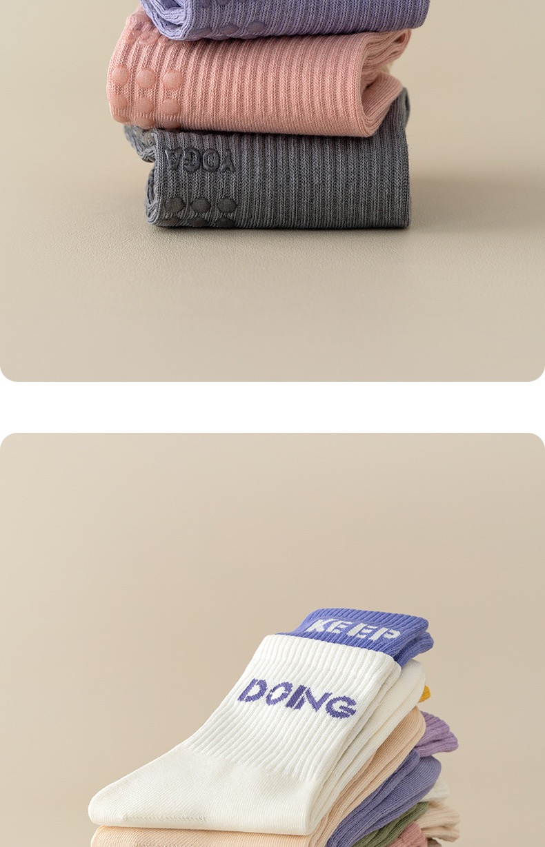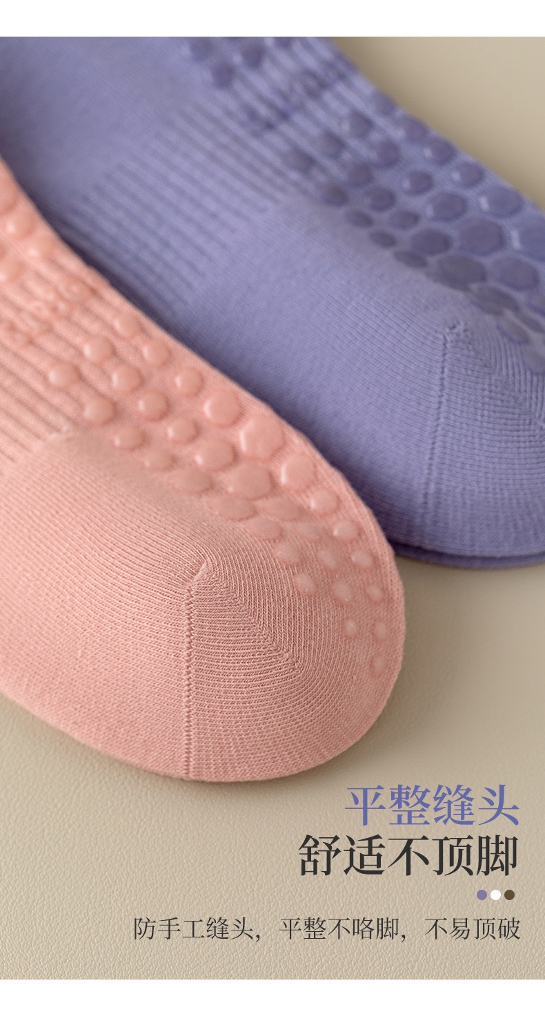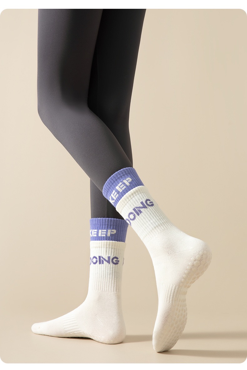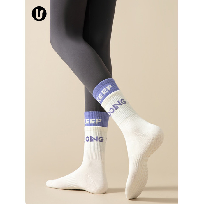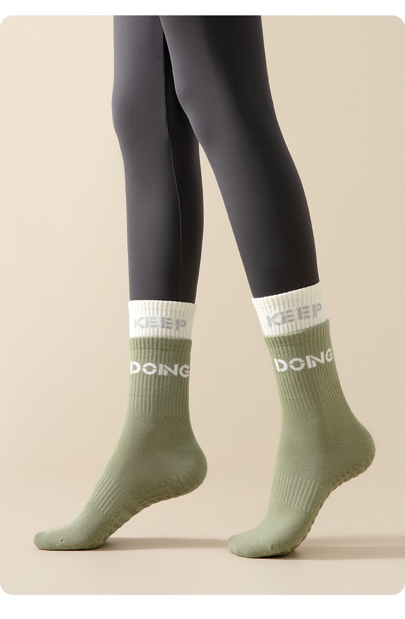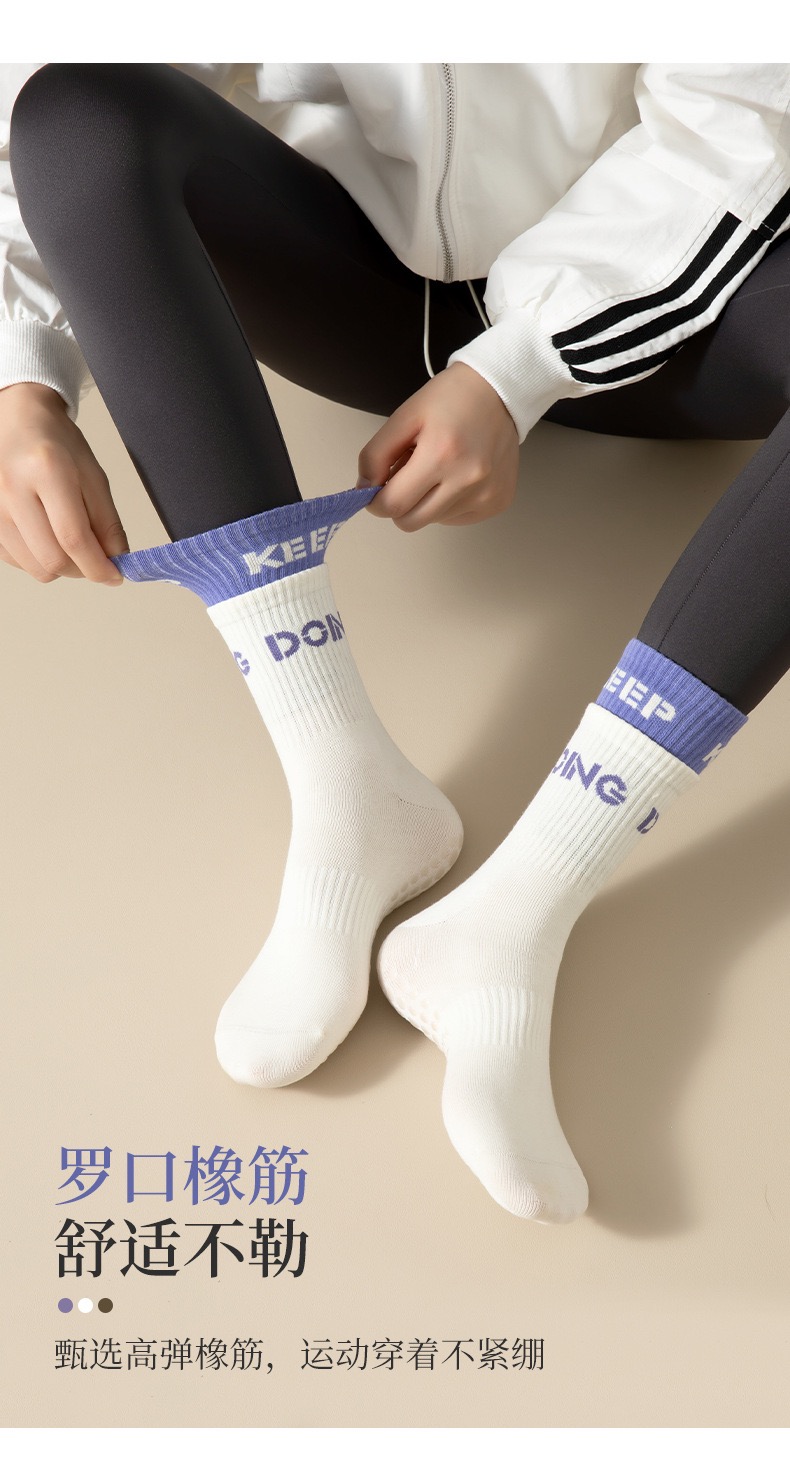 矽膠防滑瑜珈襪子女拼色中筒襪純棉室內健身普拉提專業地板運動襪