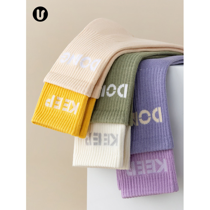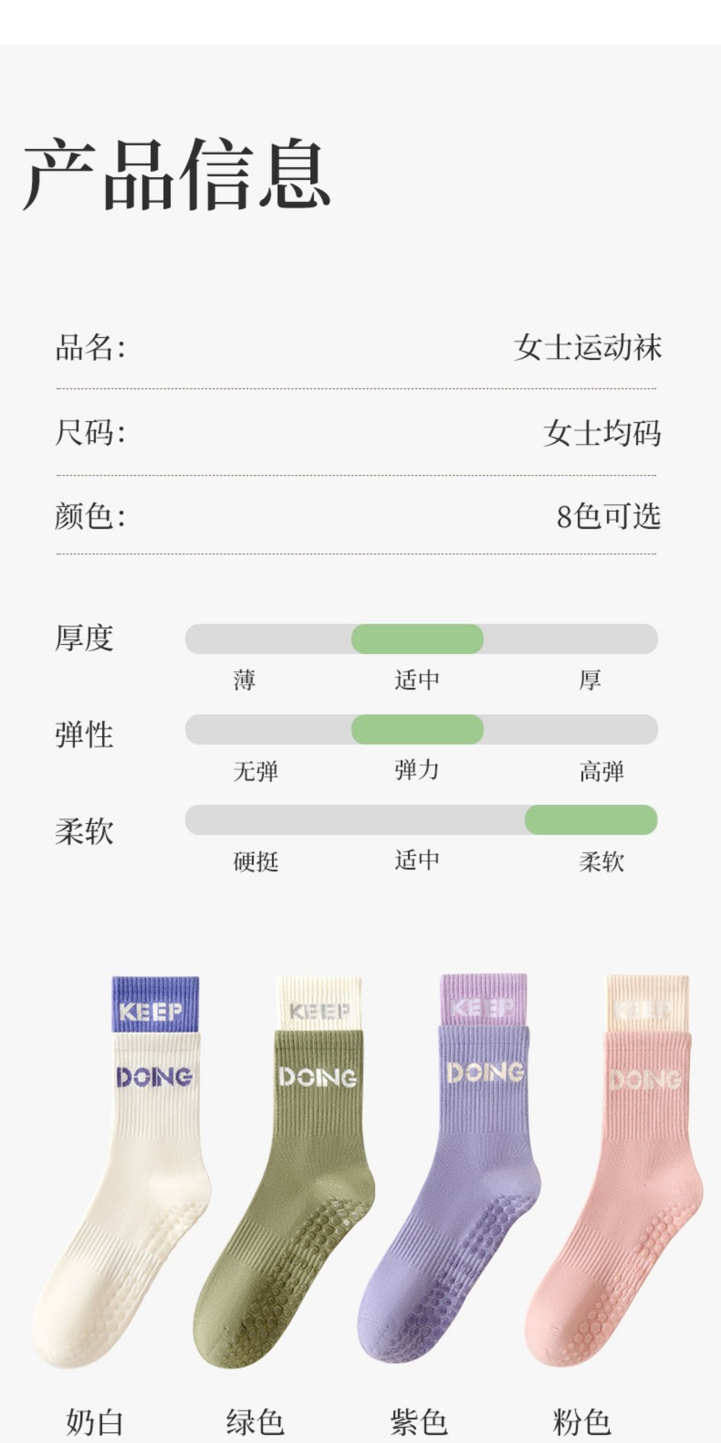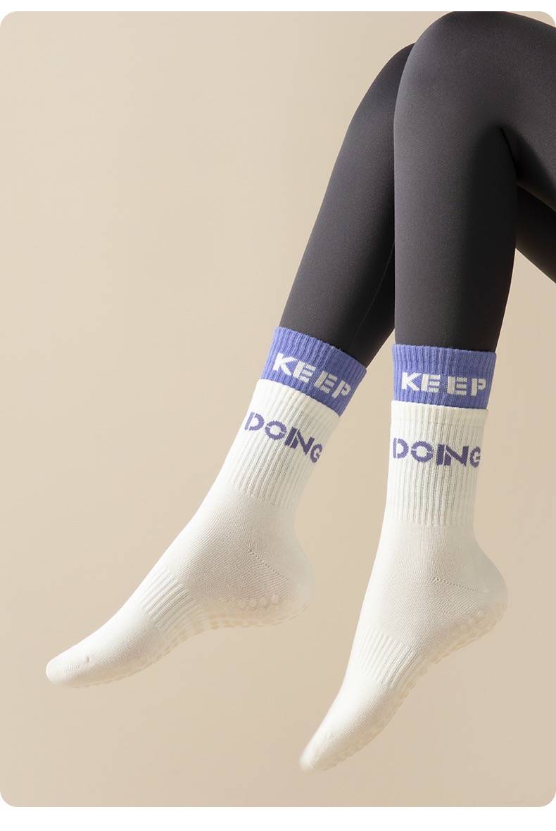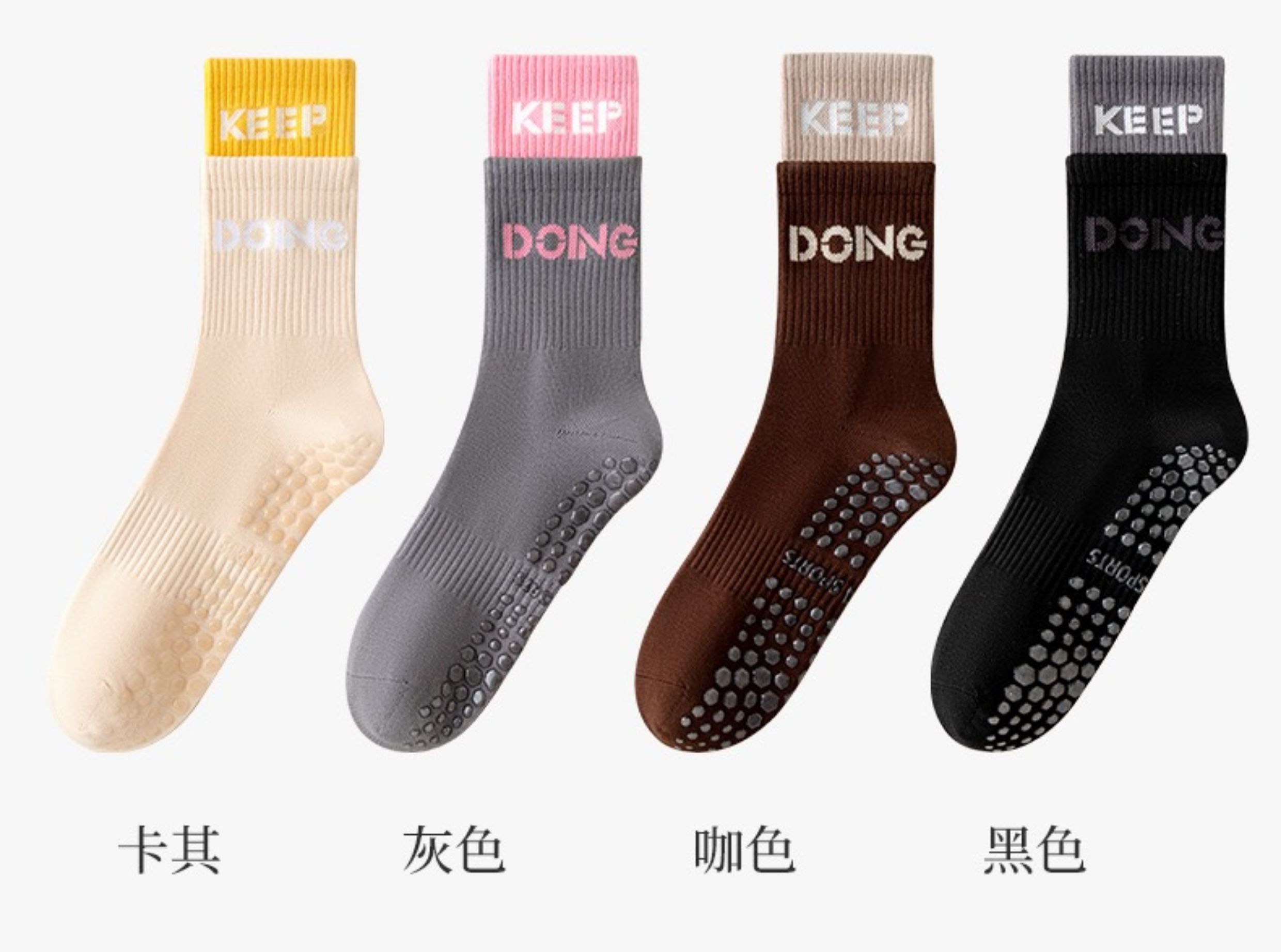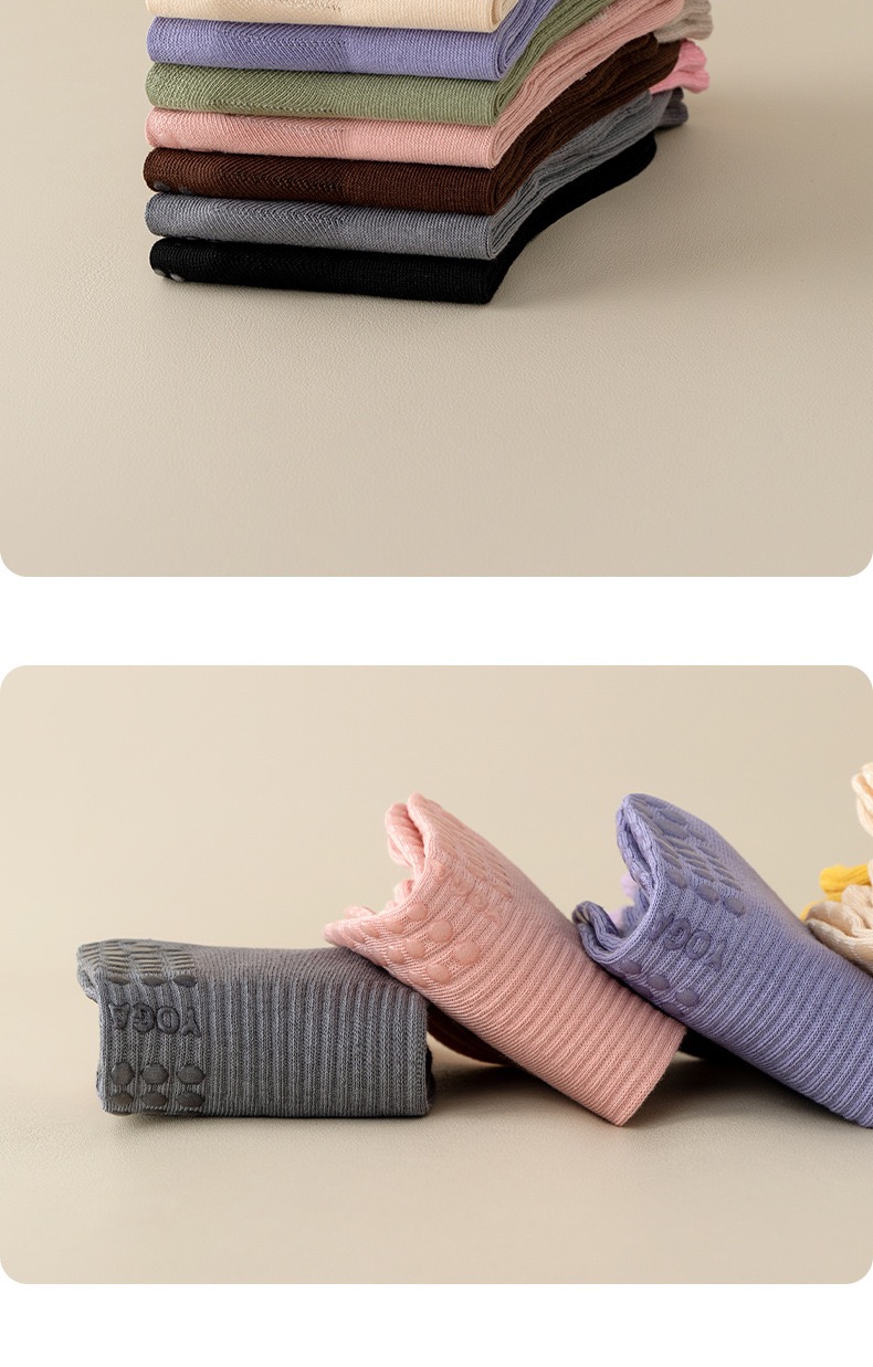 矽膠防滑瑜珈襪子女拼色中筒襪純棉室內健身普拉提專業地板運動襪