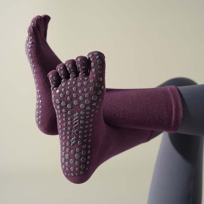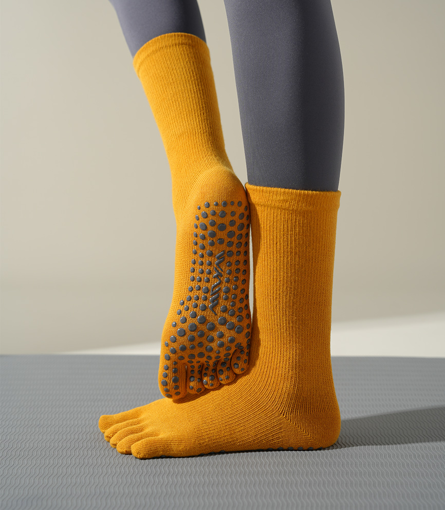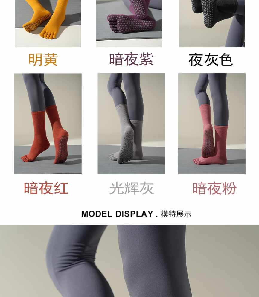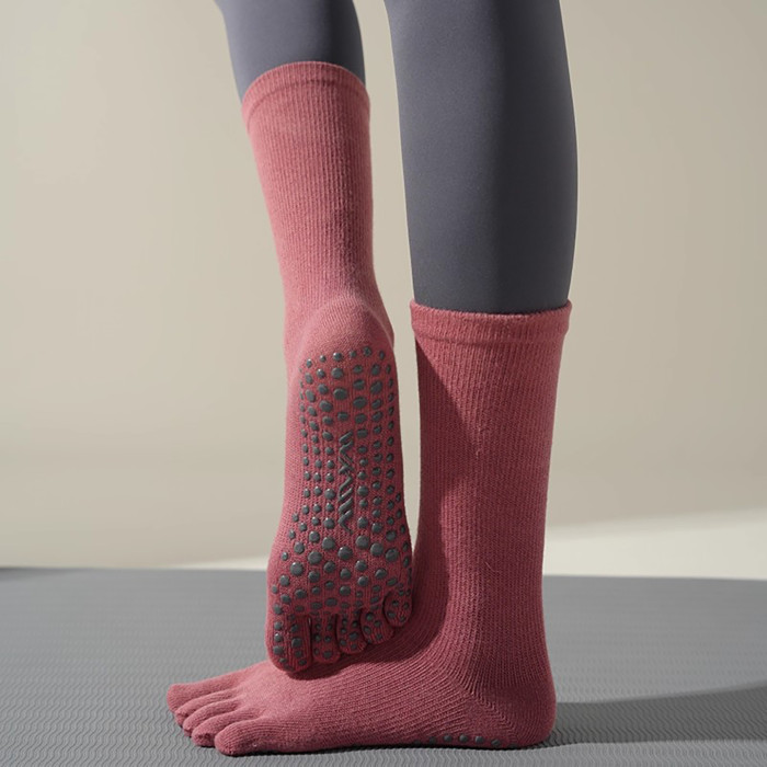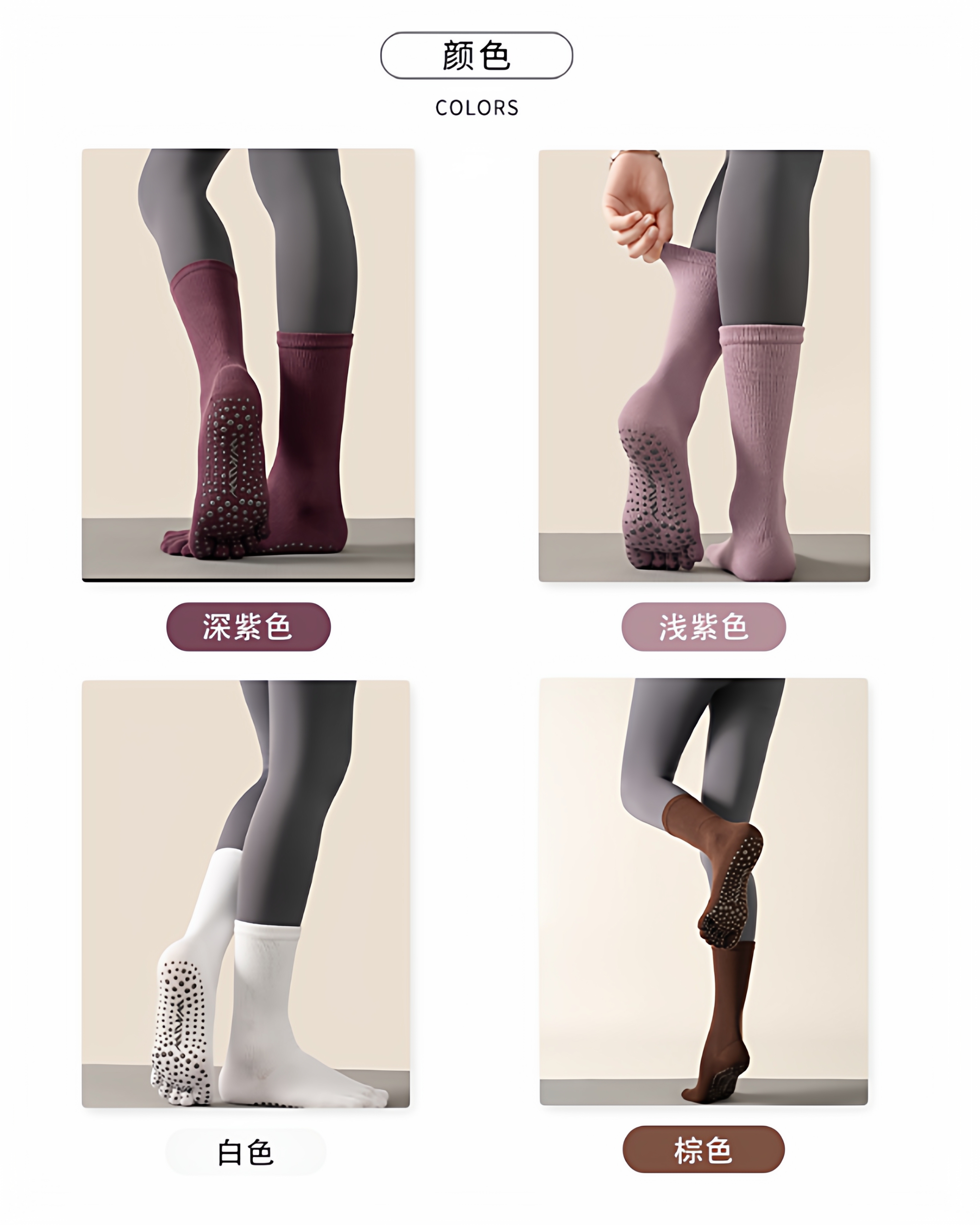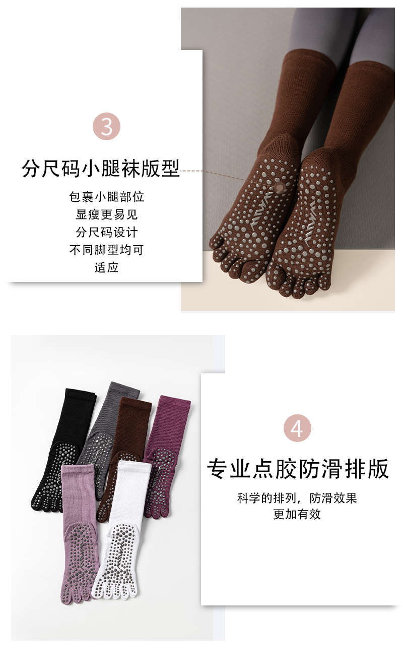 分碼瑜珈襪子防滑專業女五指襪室內普拉提專用運動小腿襪健身長襪