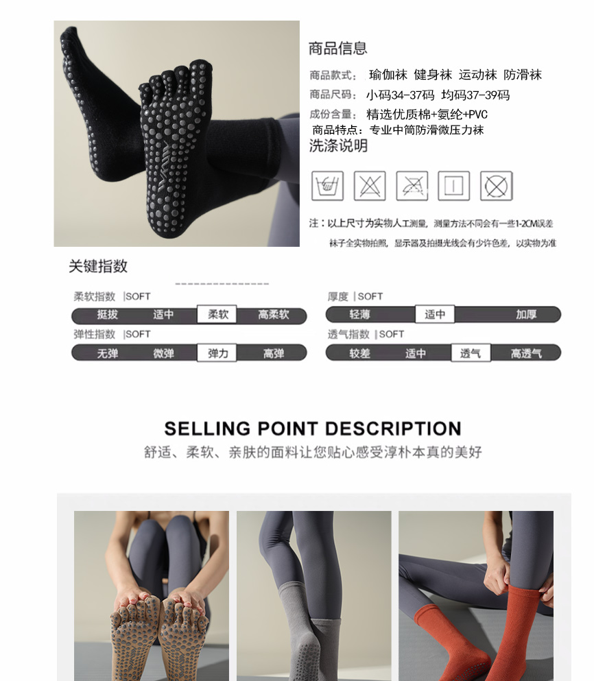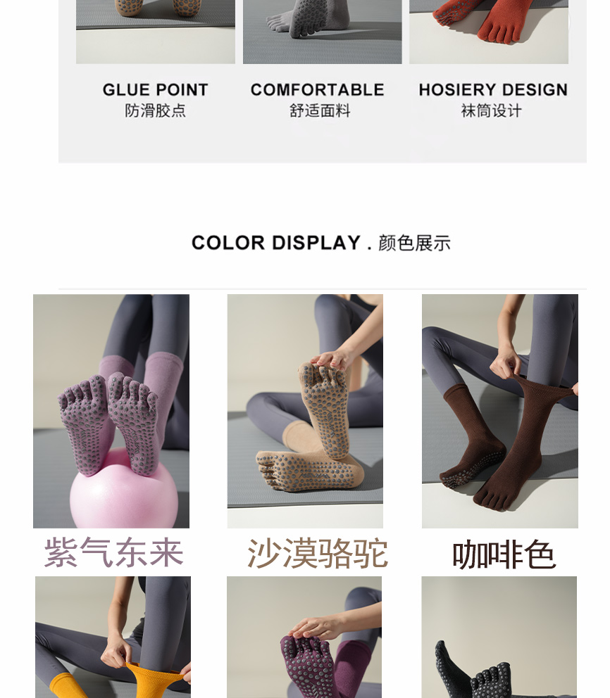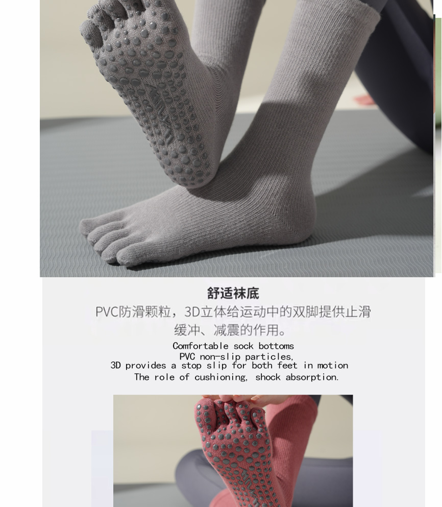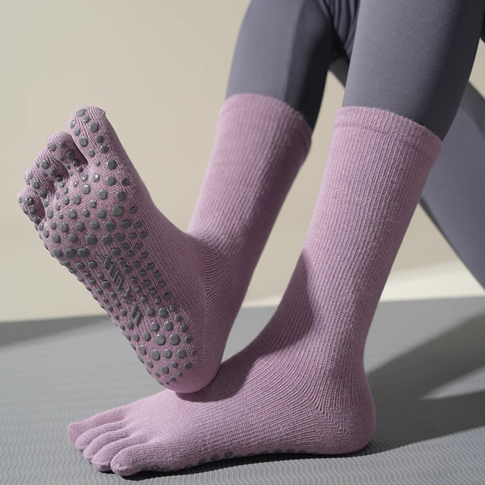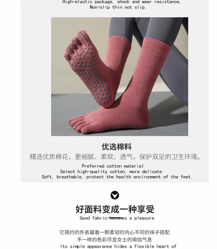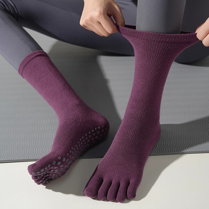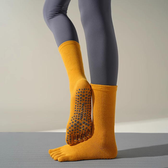分碼瑜珈襪子防滑專業女五指襪室內普拉提專用運動小腿襪健身長襪