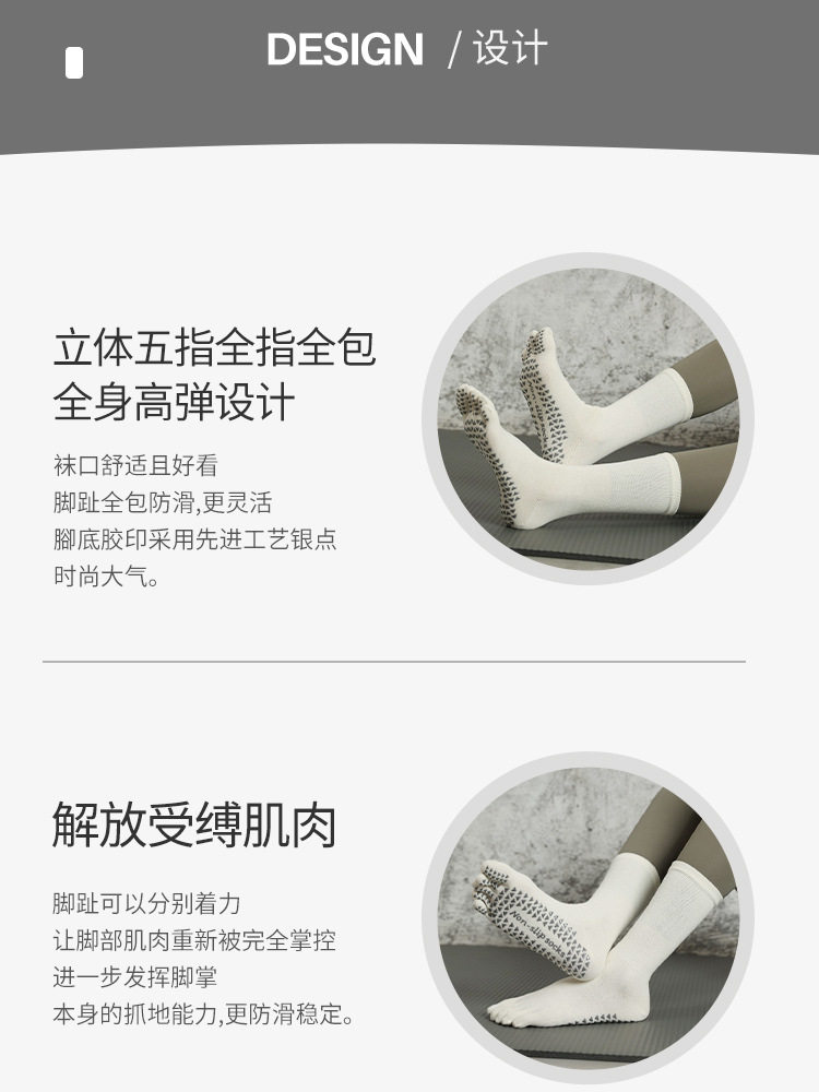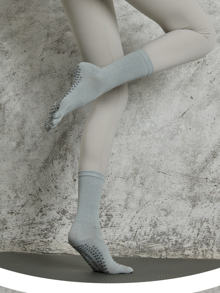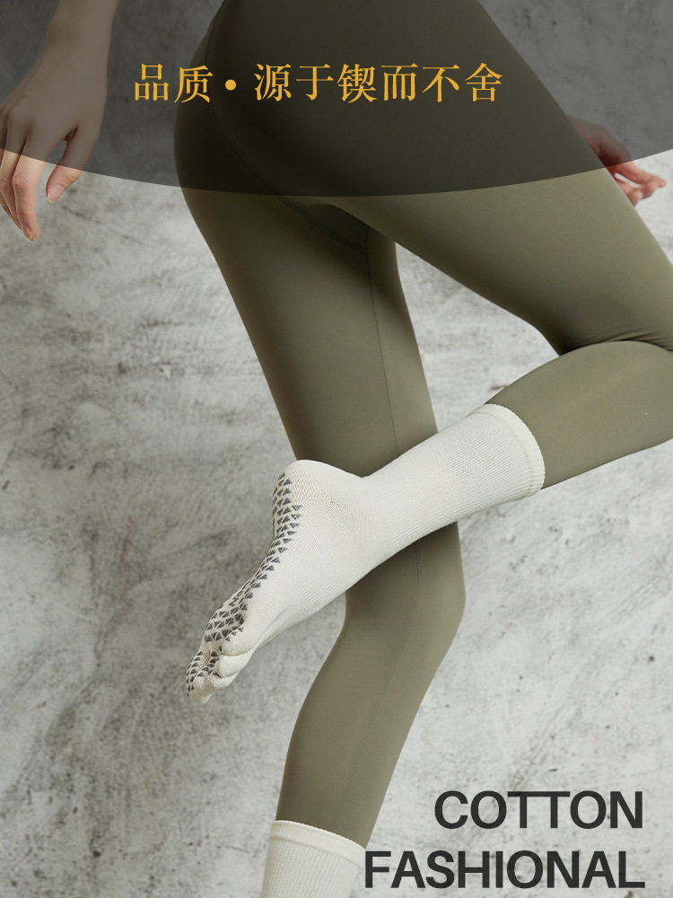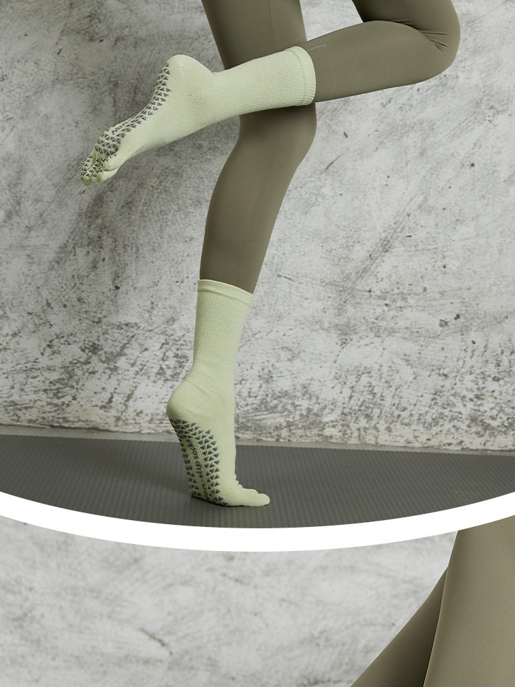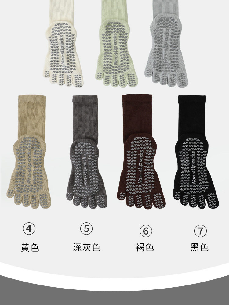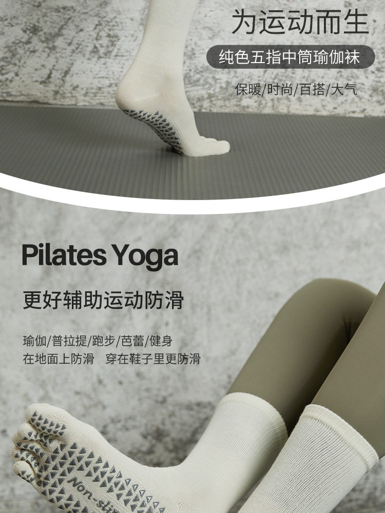 長筒瑜珈襪子夏季專業防滑襪普拉提五指襪中筒壓力襪健身運動女襪