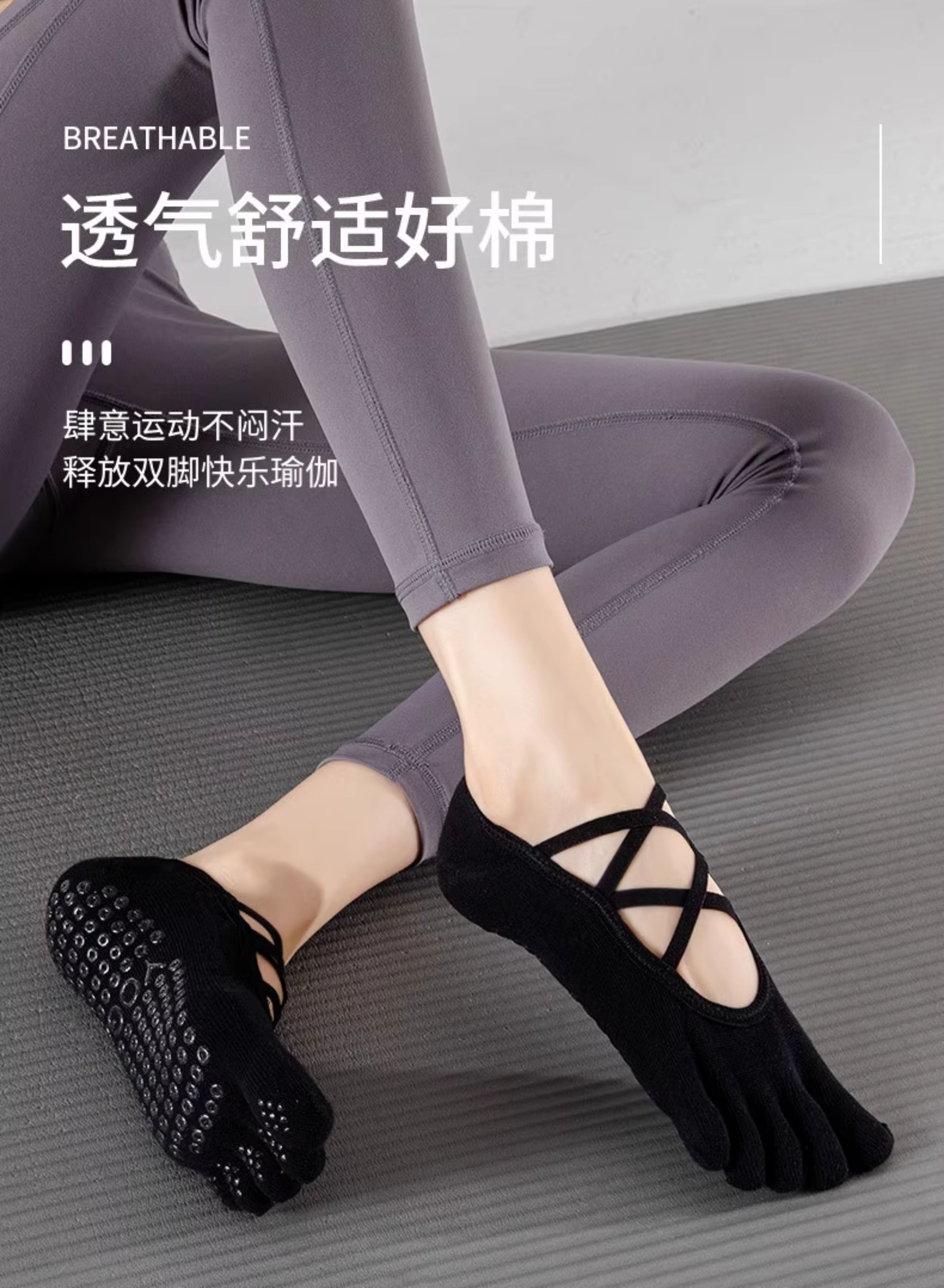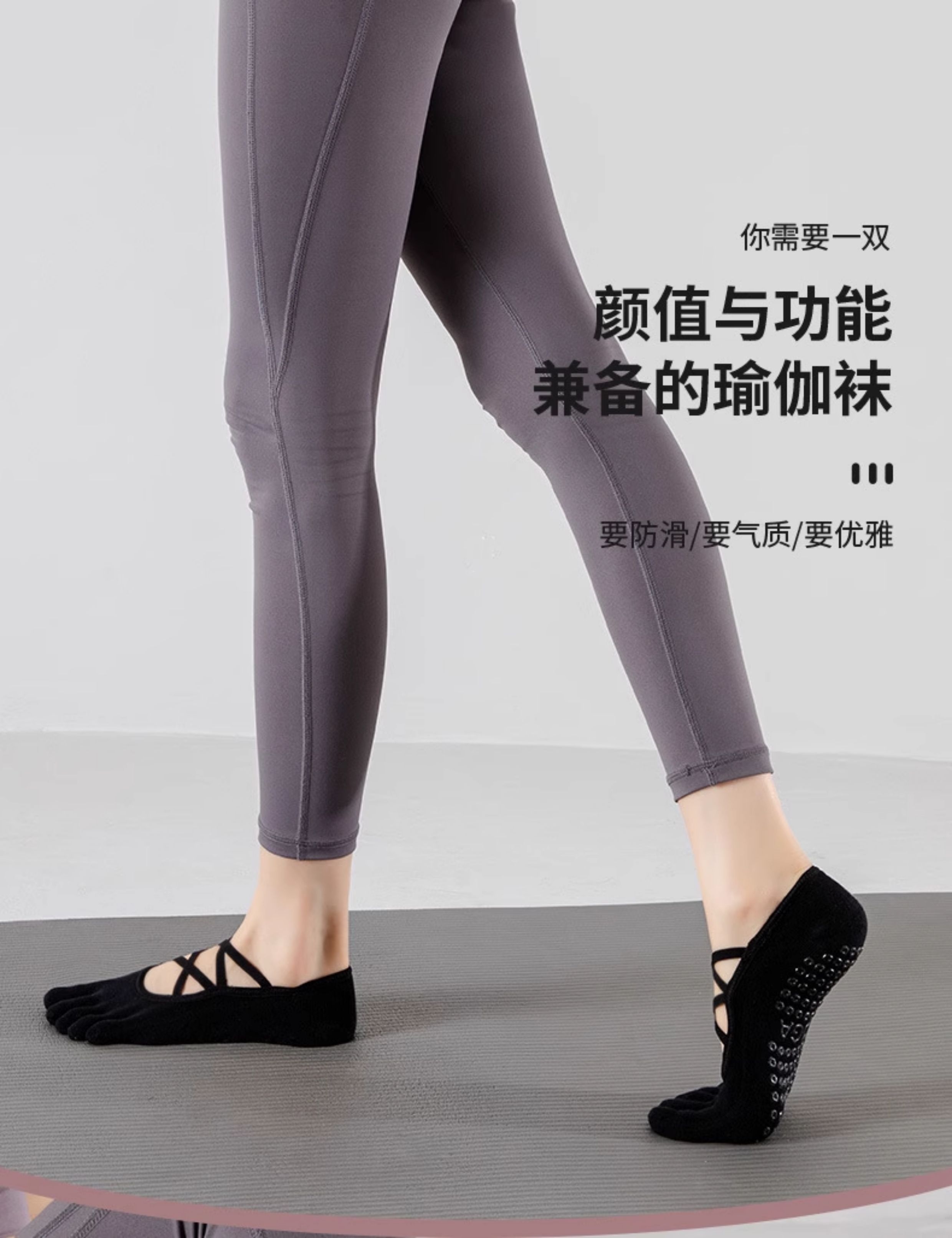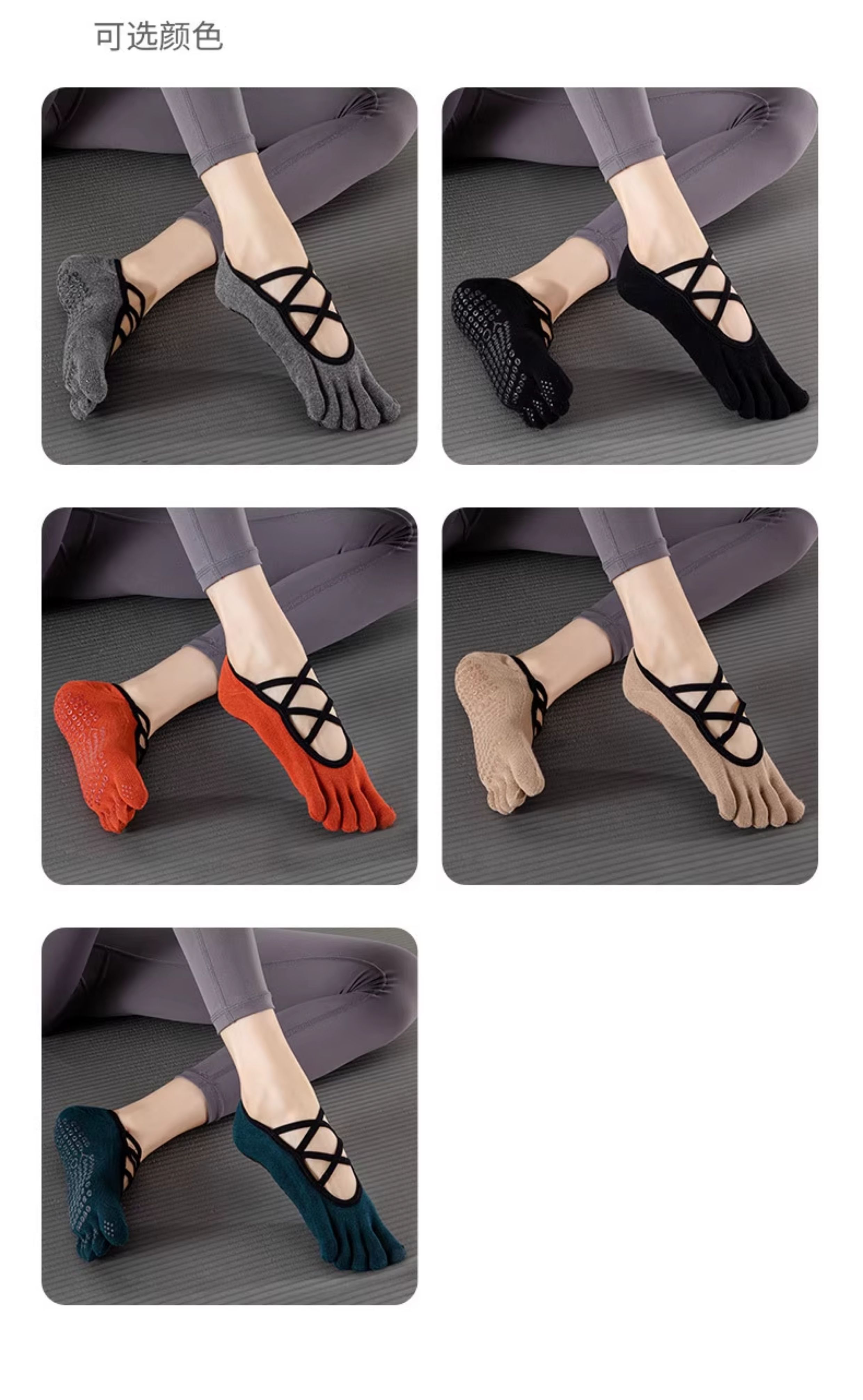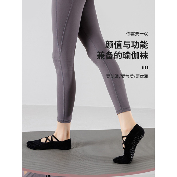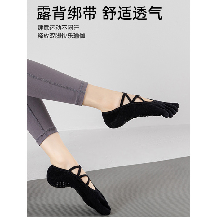 瑜珈襪子防滑專業女五指普拉提襪秋冬室內分趾露背綁帶運動防滑襪