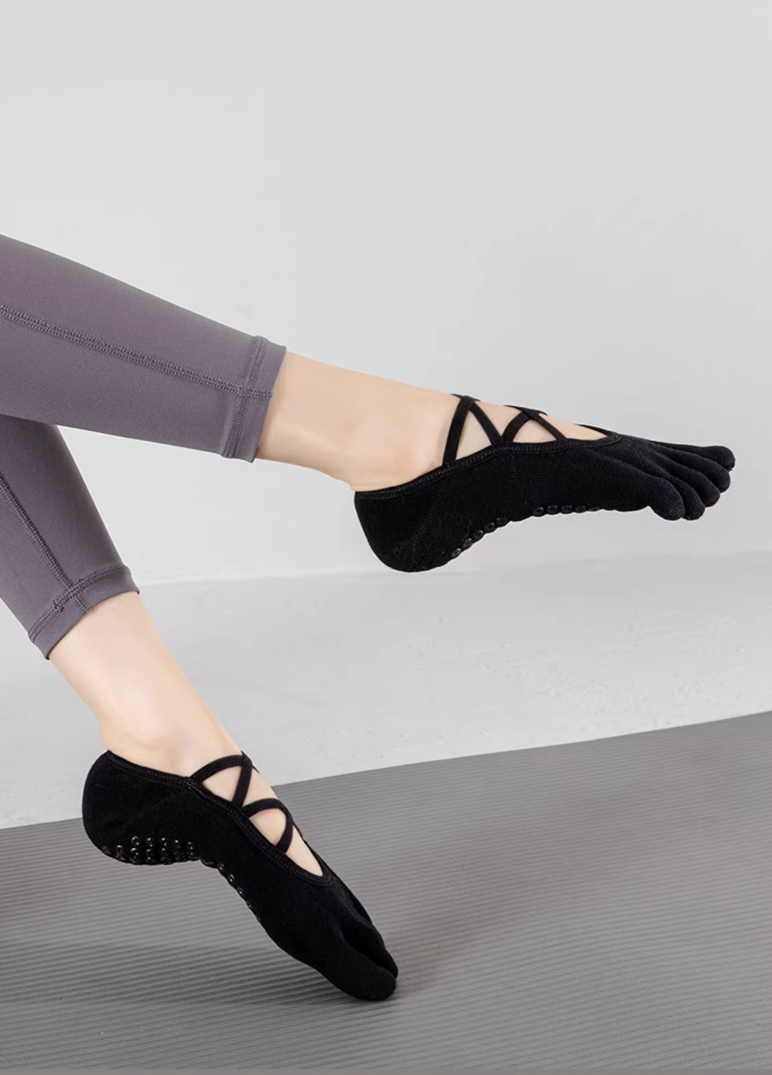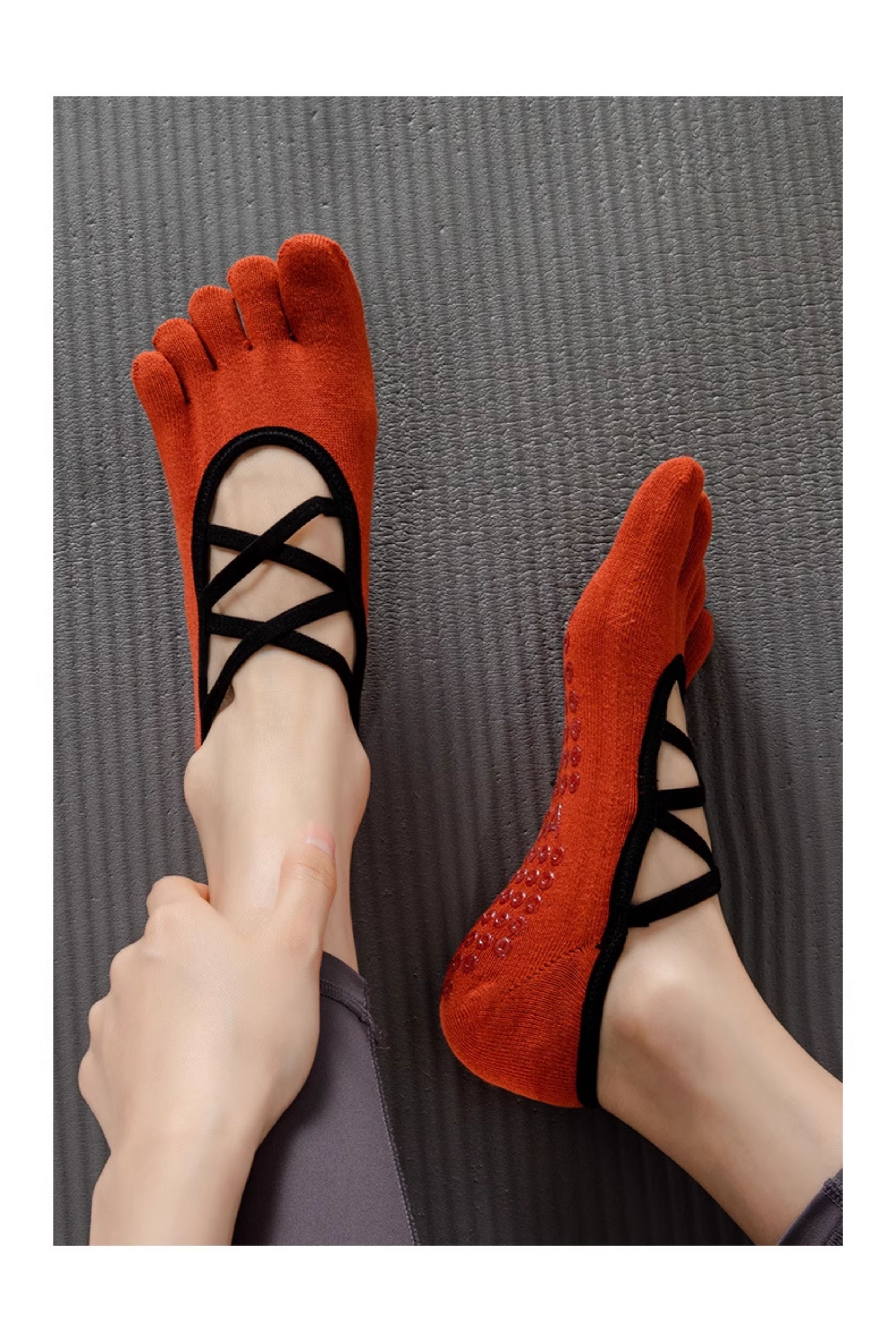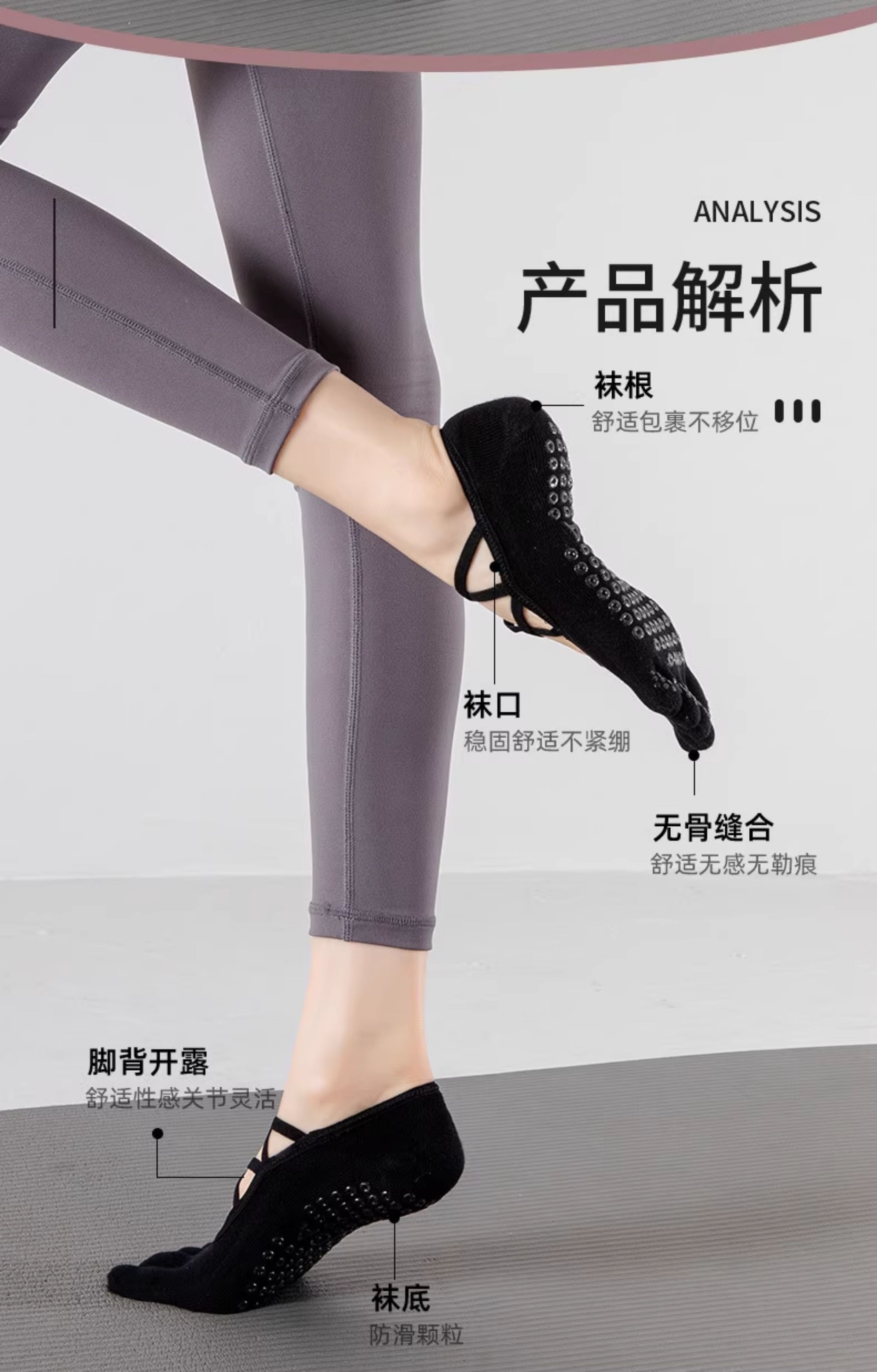 瑜珈襪子防滑專業女五指普拉提襪秋冬室內分趾露背綁帶運動防滑襪