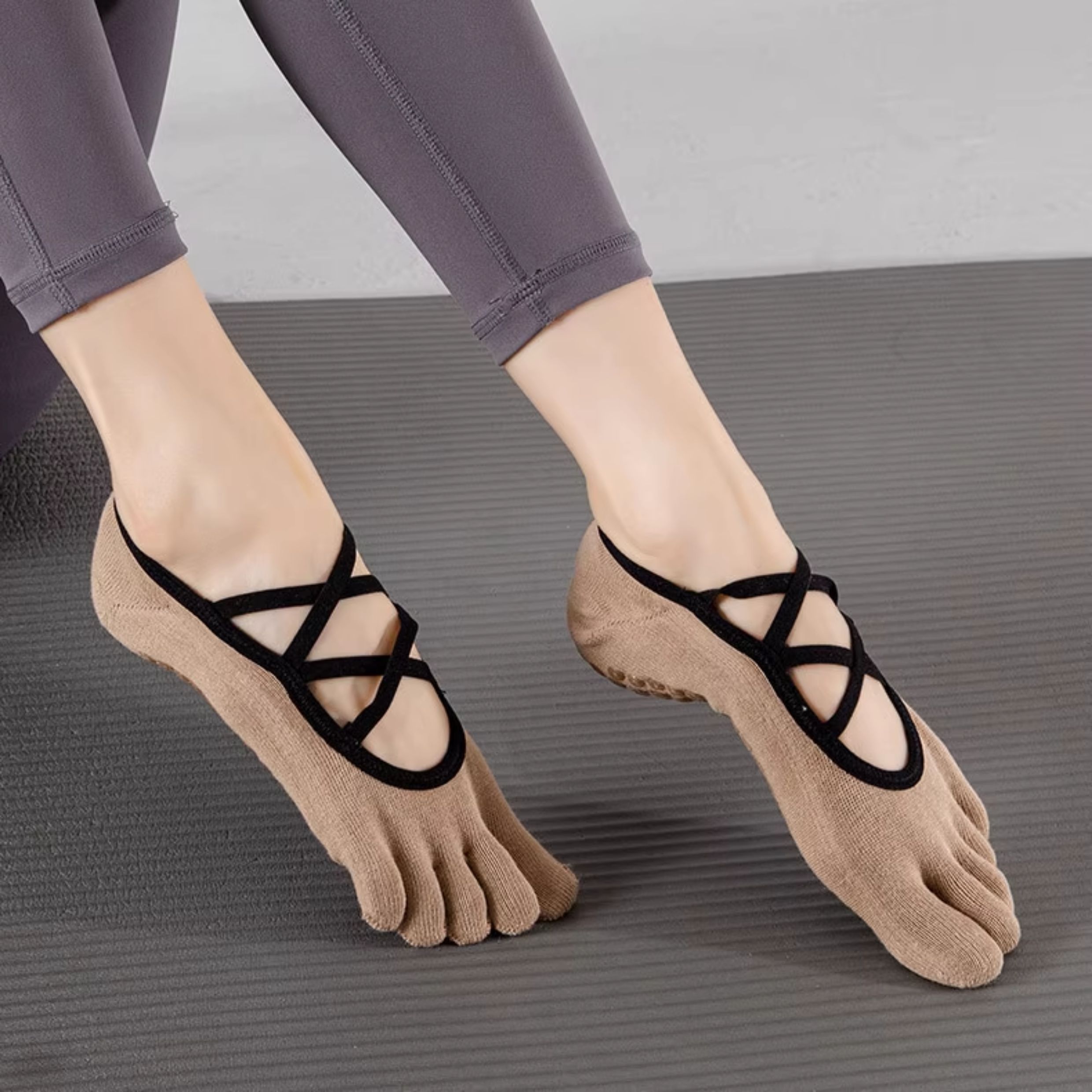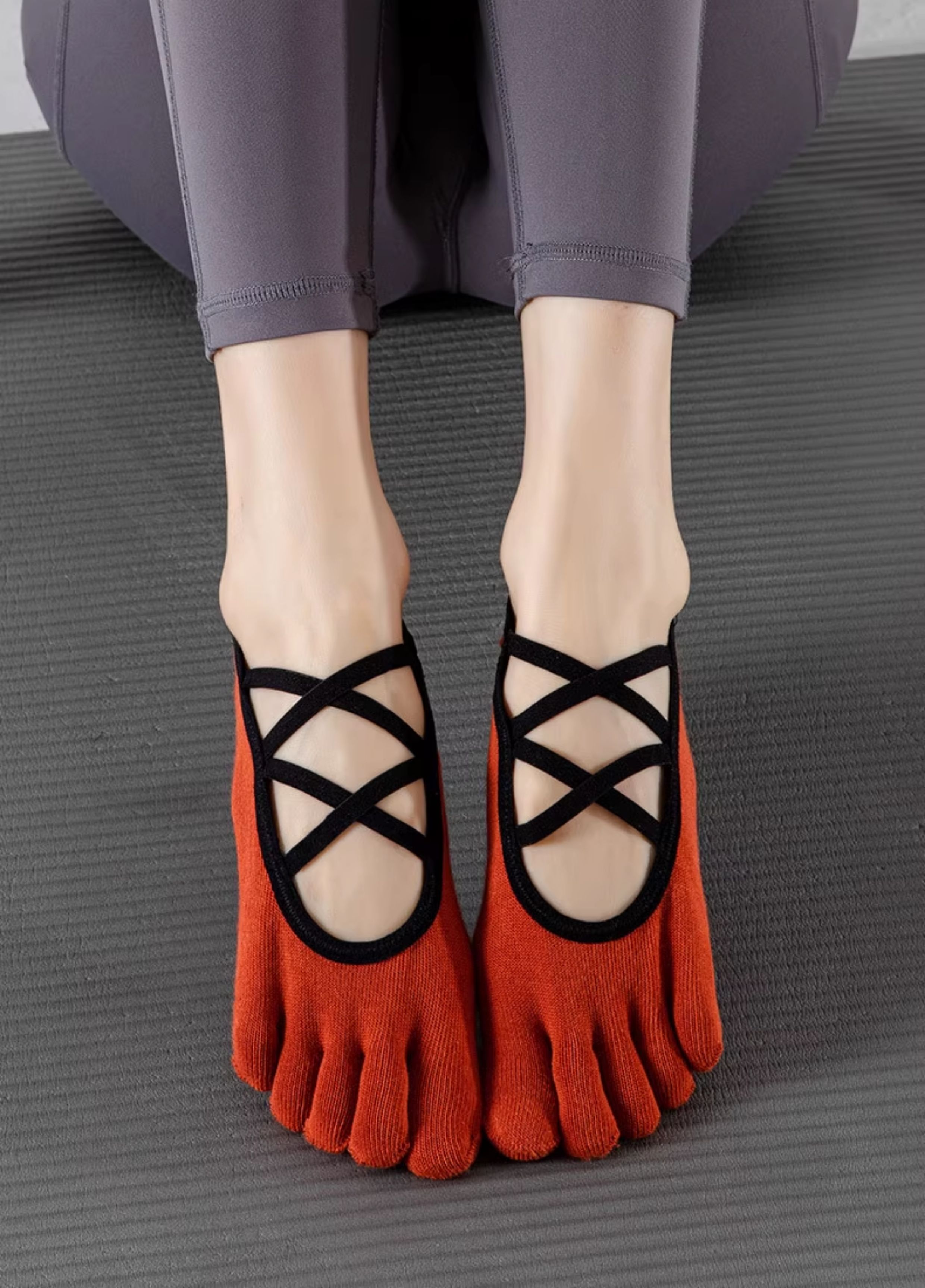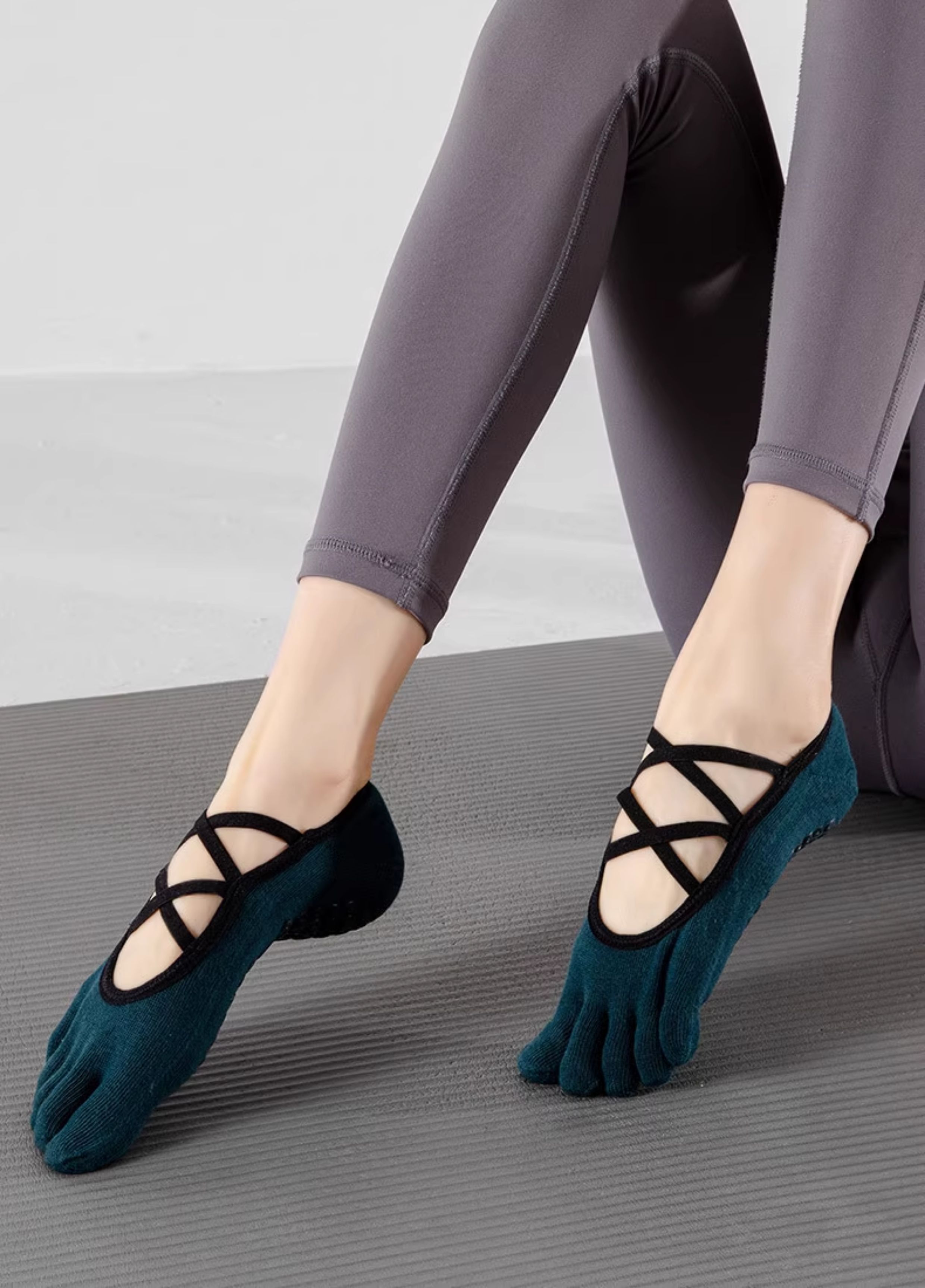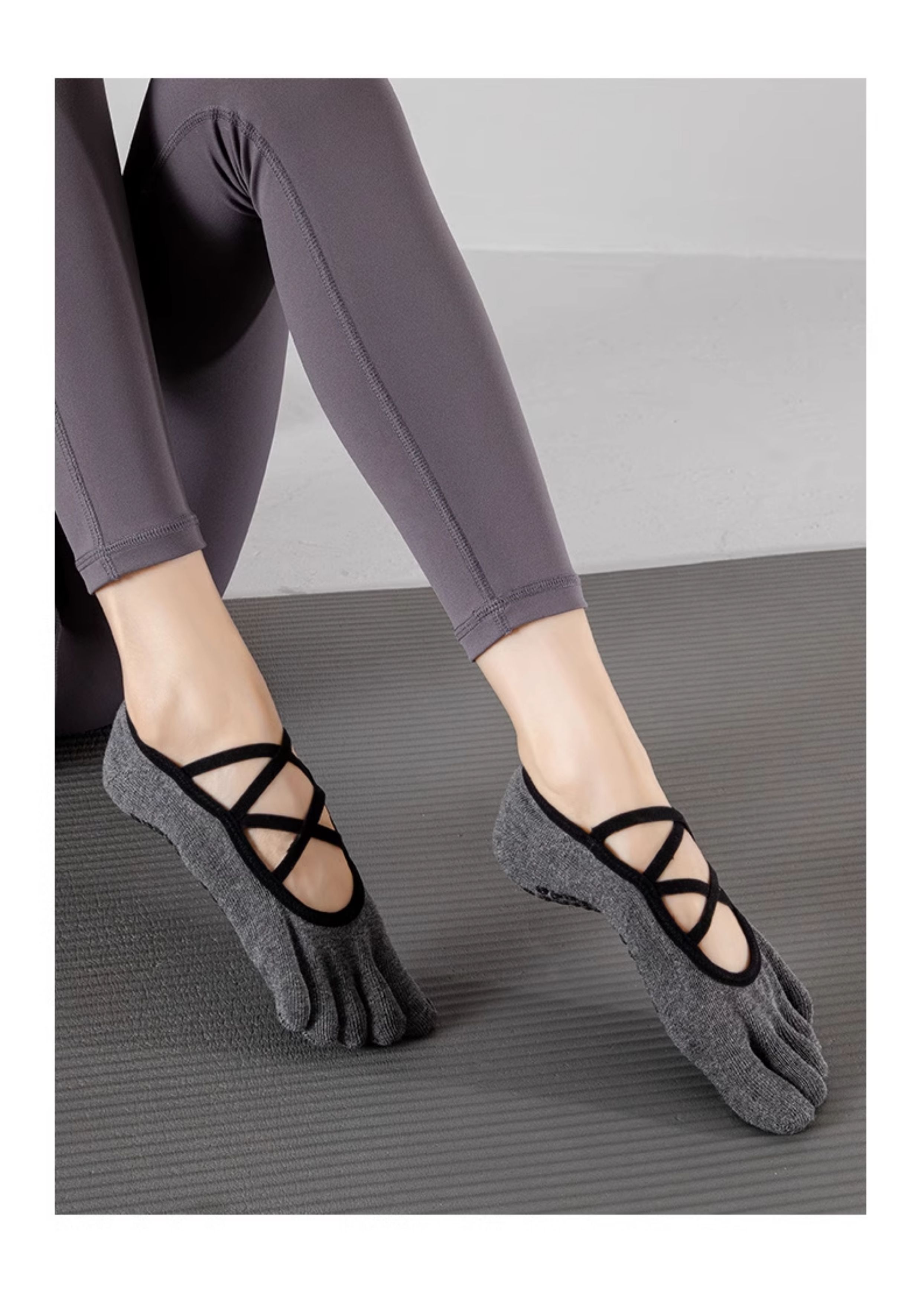 瑜珈襪子防滑專業女五指普拉提襪秋冬室內分趾露背綁帶運動防滑襪