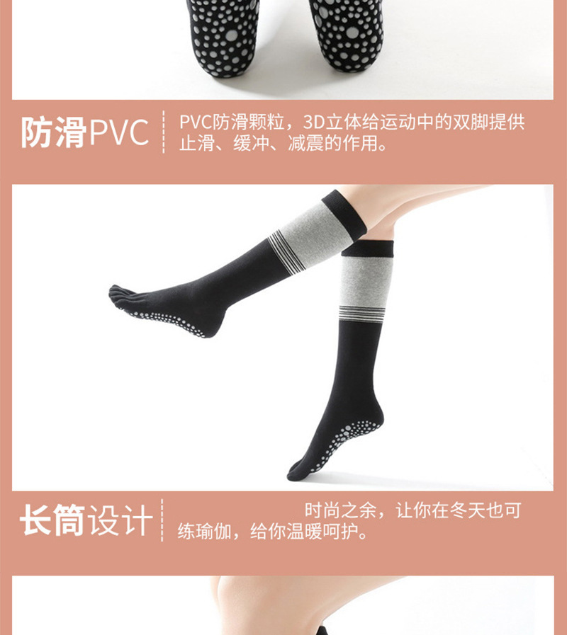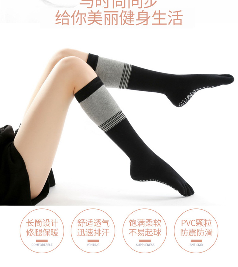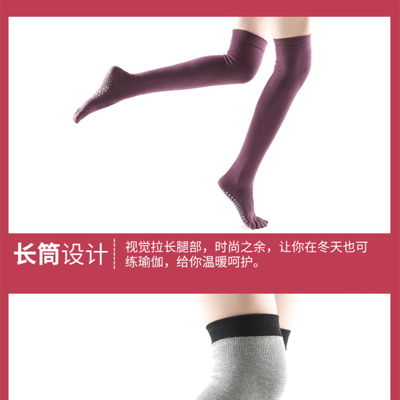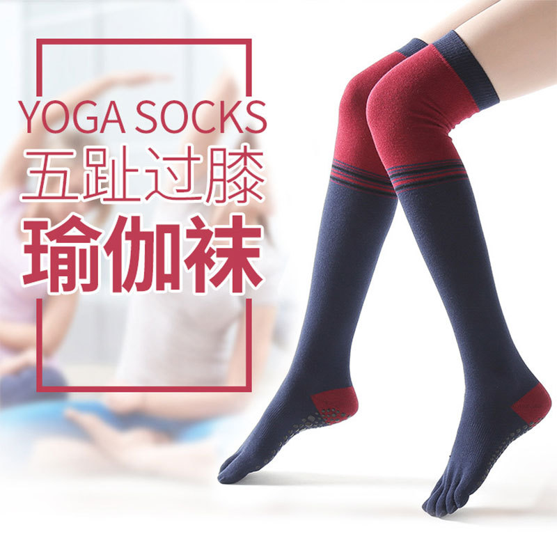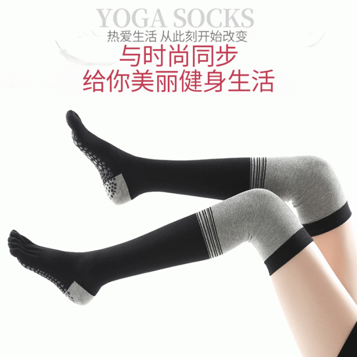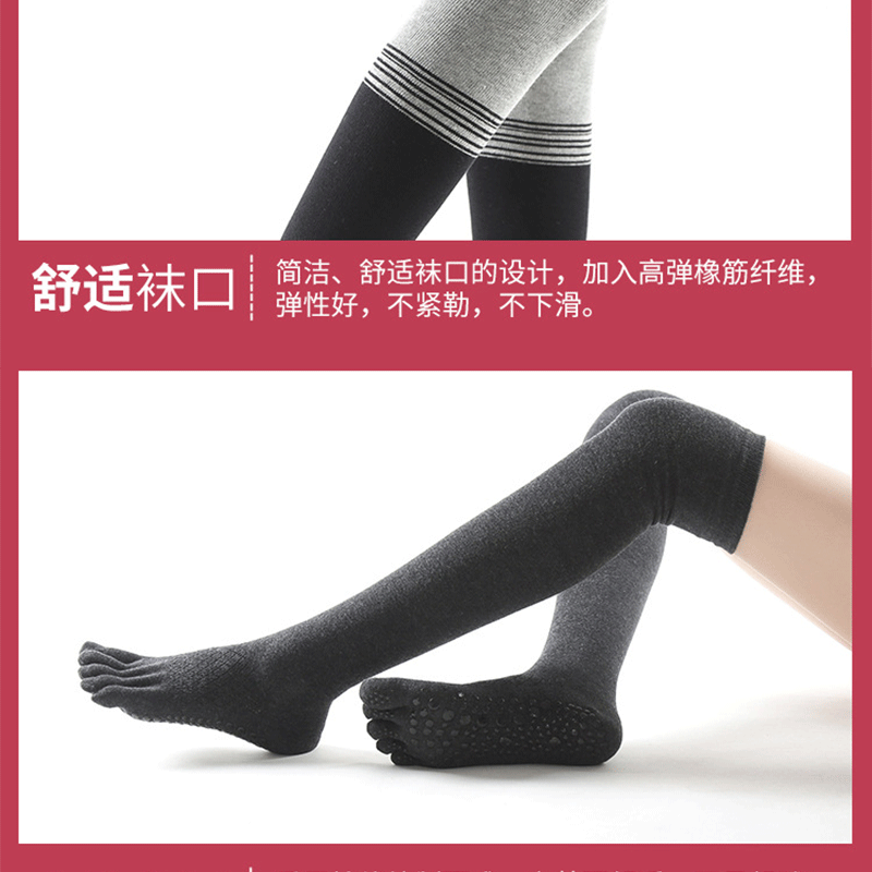 秋冬季專業防滑瑜珈襪女長筒過膝瑜珈襪子中筒五指襪運動腳趾襪子