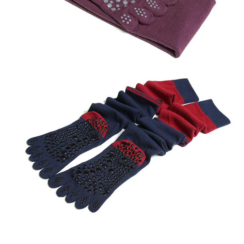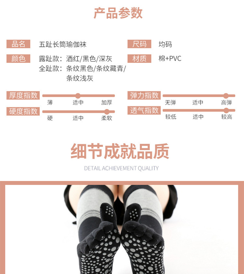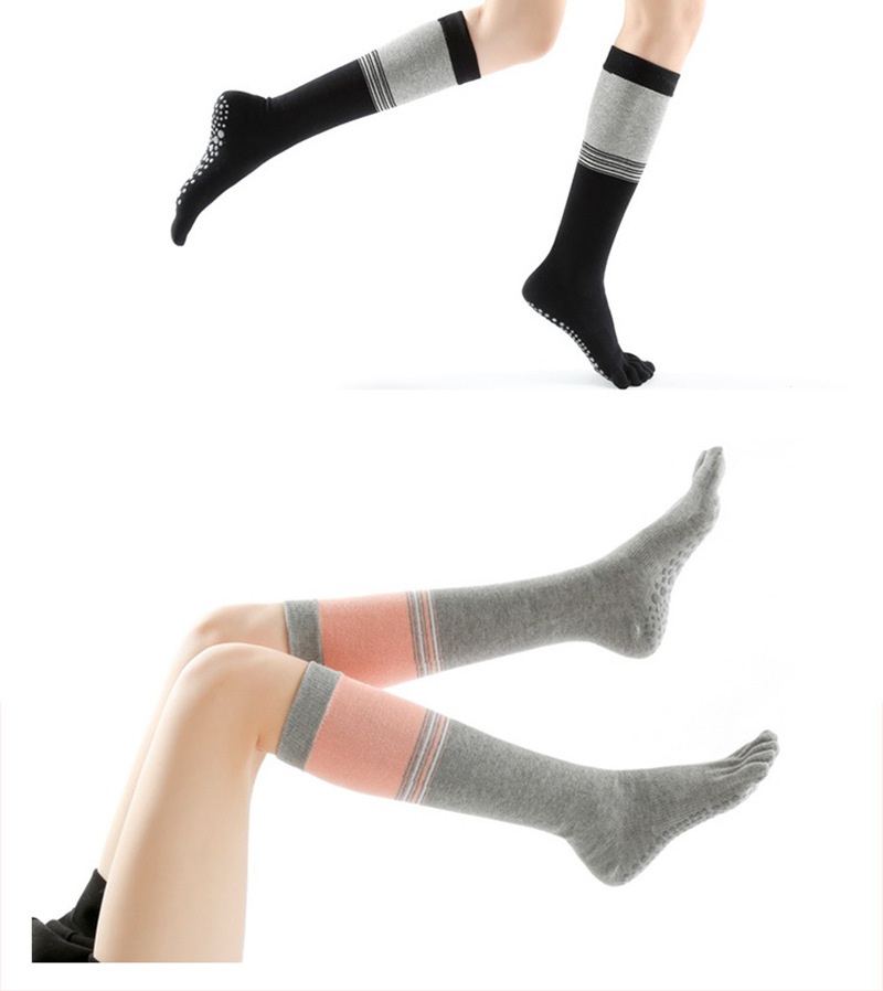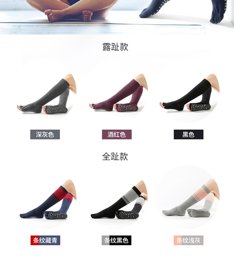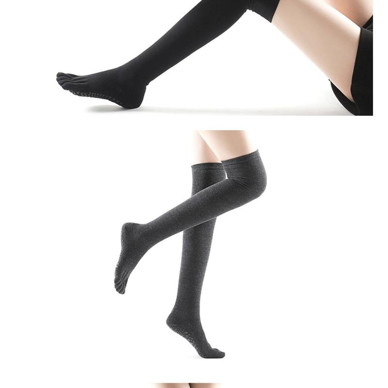 秋冬季專業防滑瑜珈襪女長筒過膝瑜珈襪子中筒五指襪運動腳趾襪子