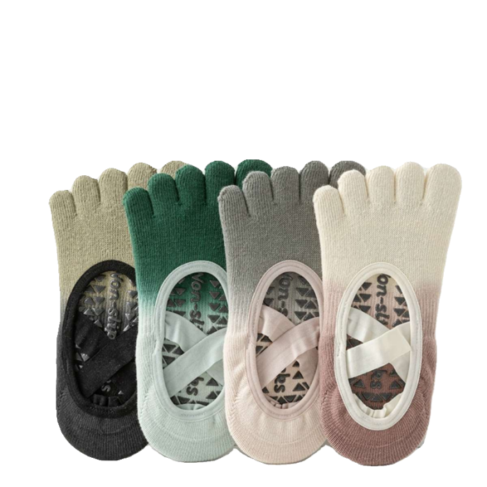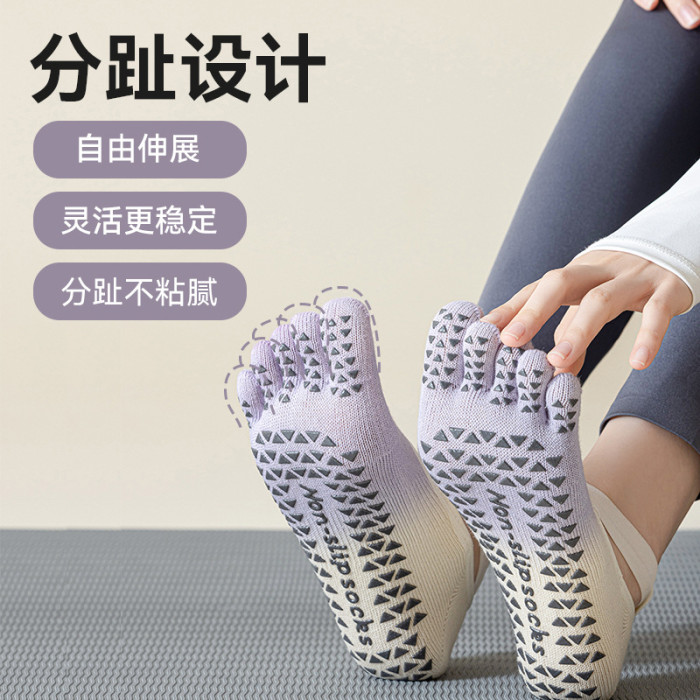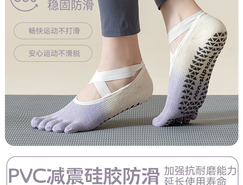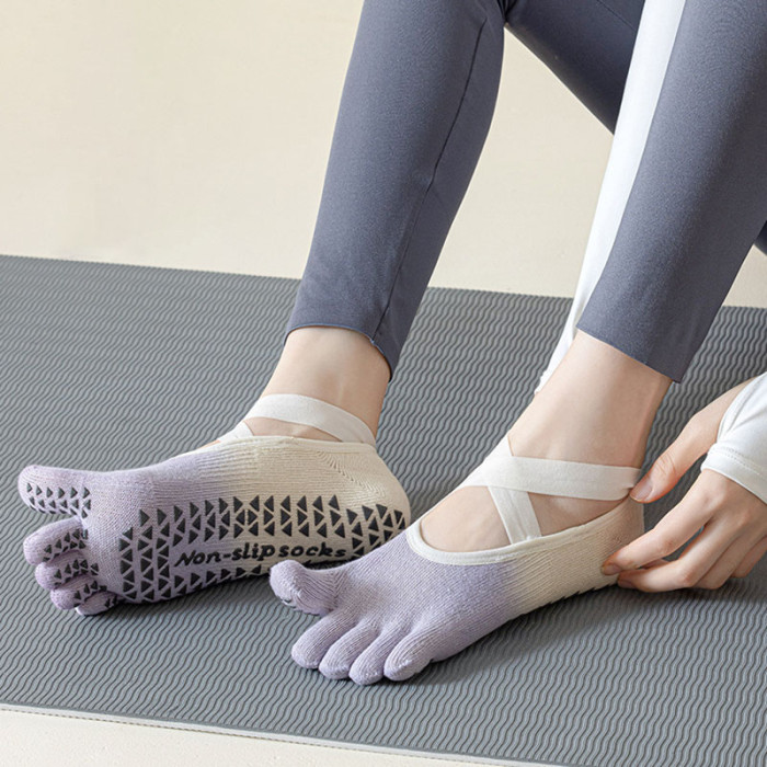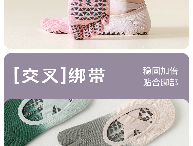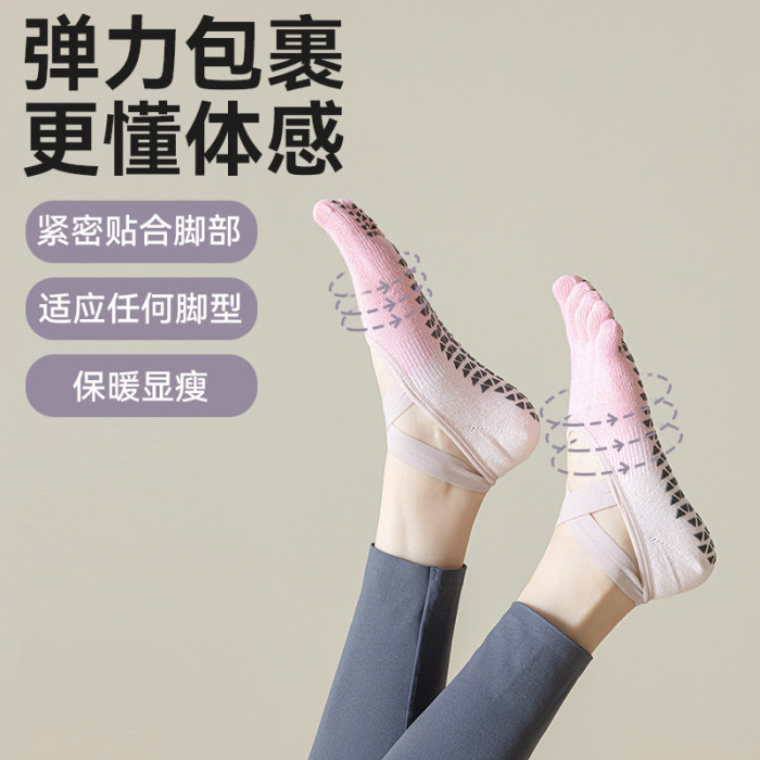 yoga瑜珈襪子女專業防滑漸變綁帶初學者普拉提五指襪夏季運動襪