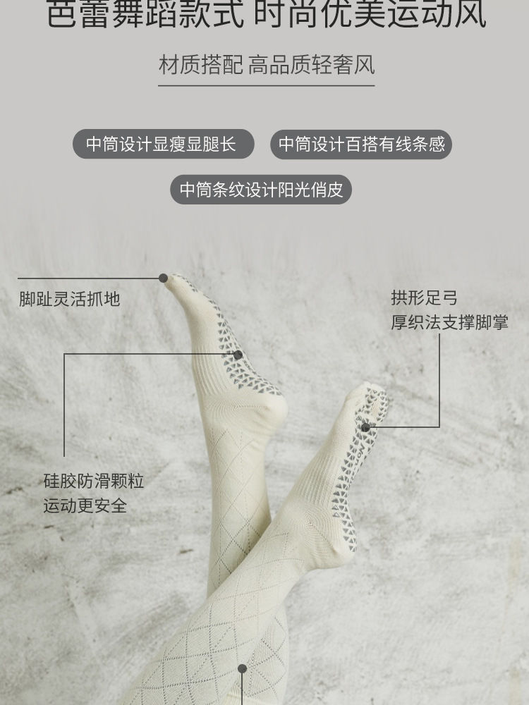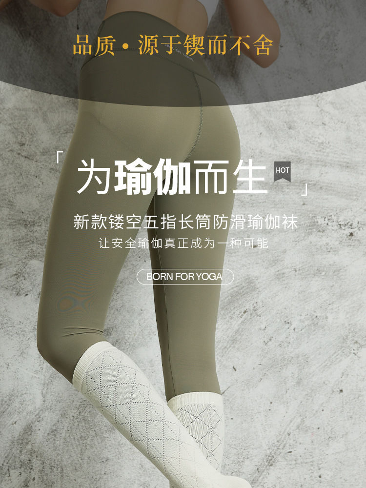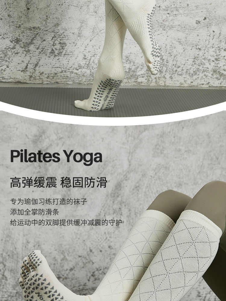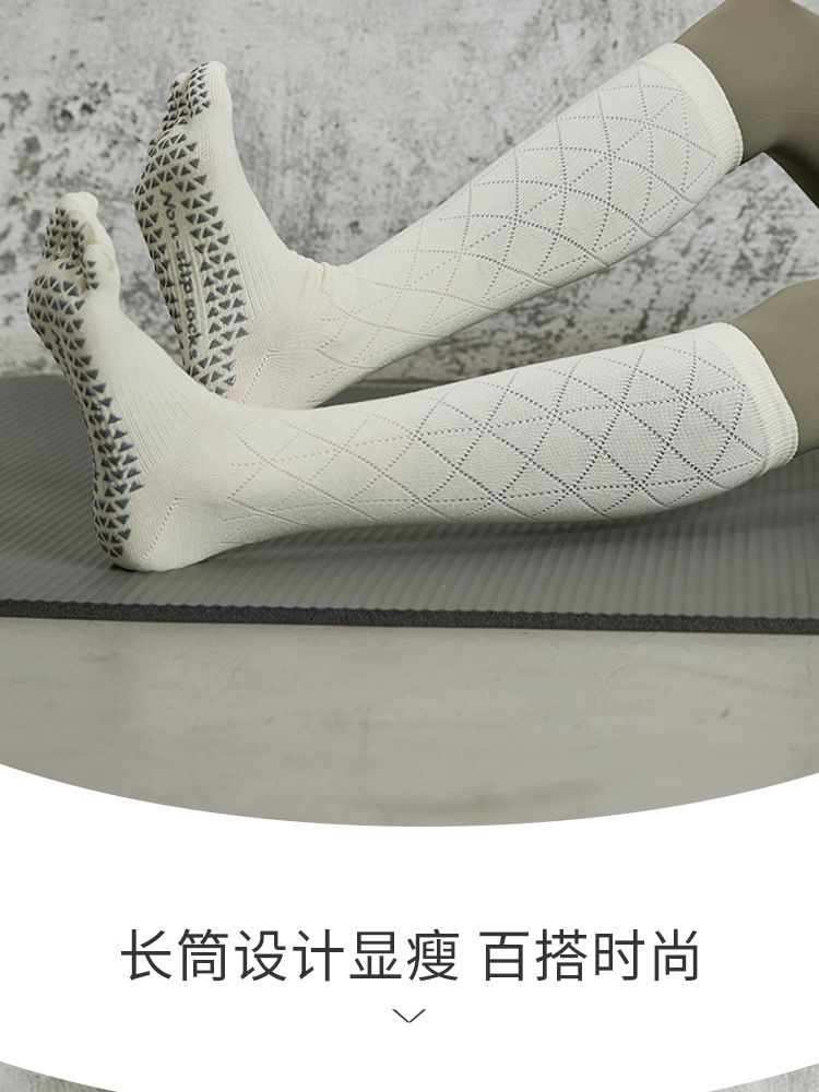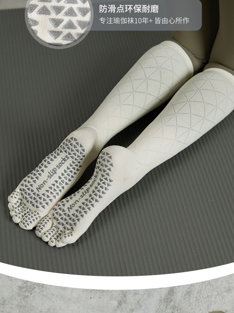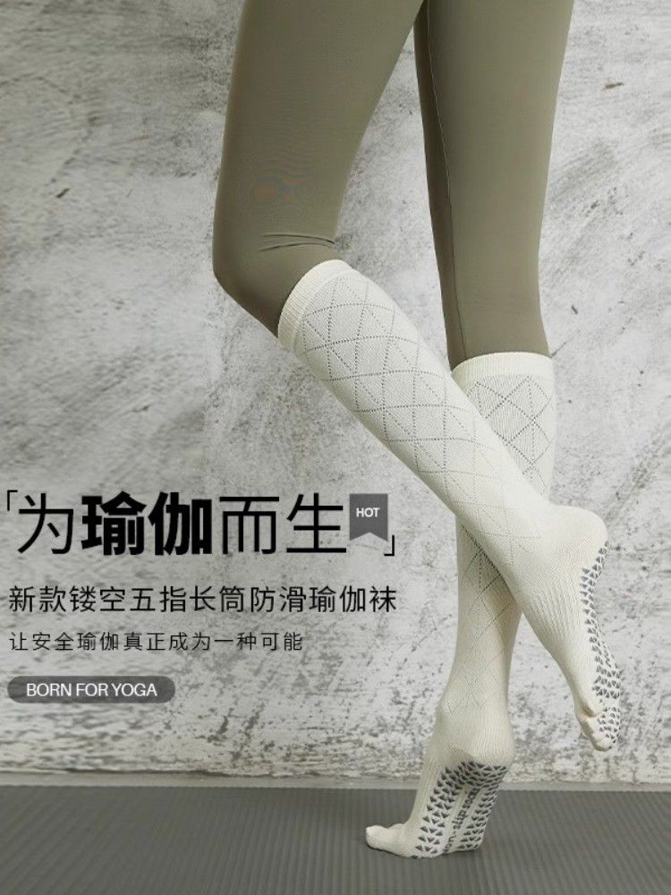 菱格鏤空五指高筒襪專業級矽膠防滑瑜珈襪女純色小腿夏季薄款透氣