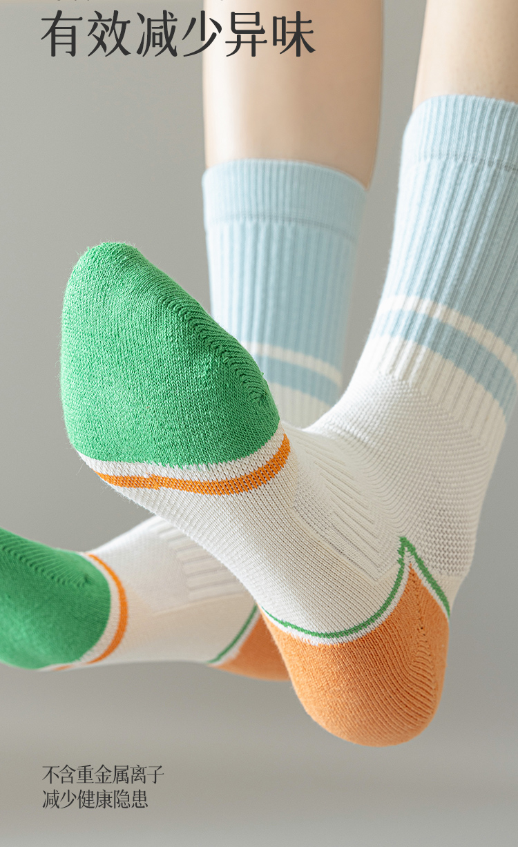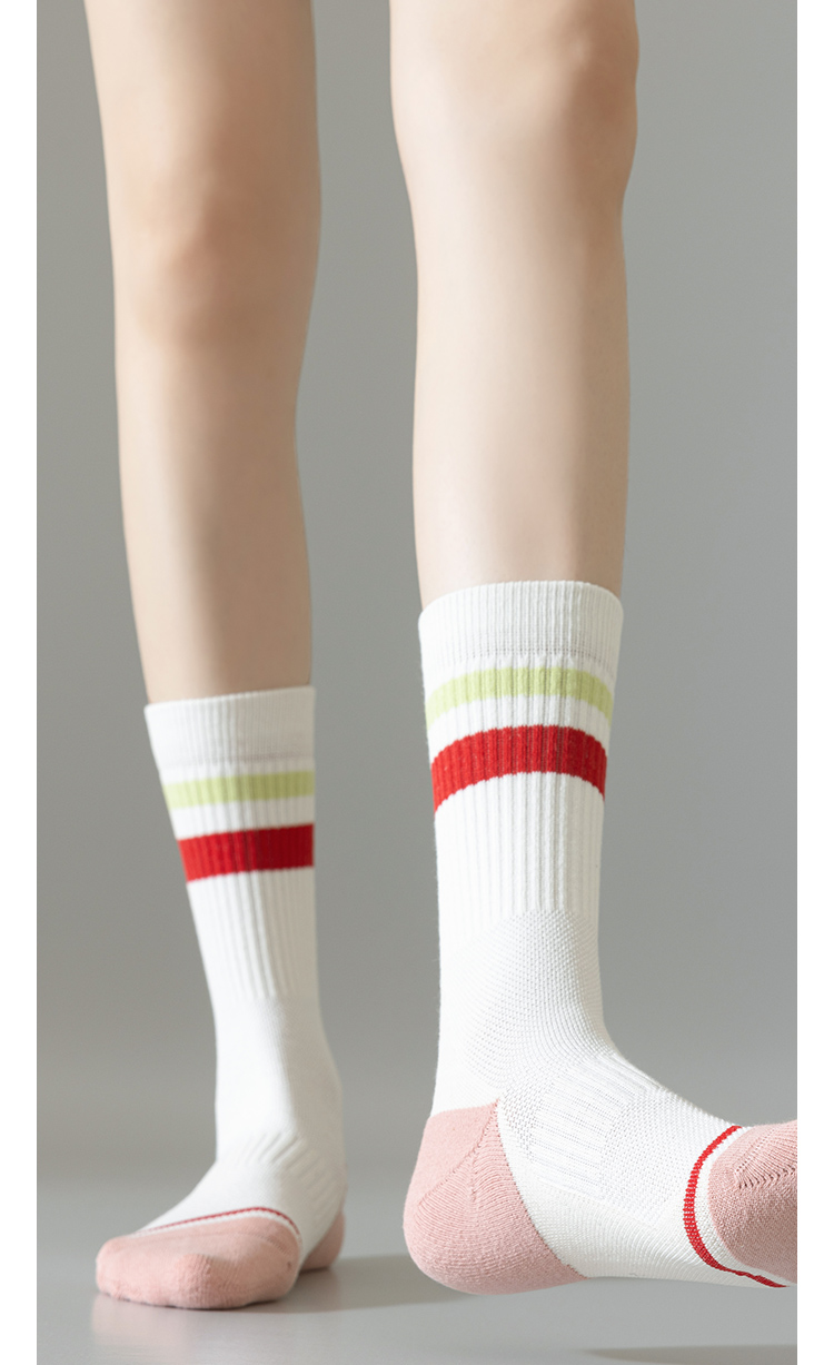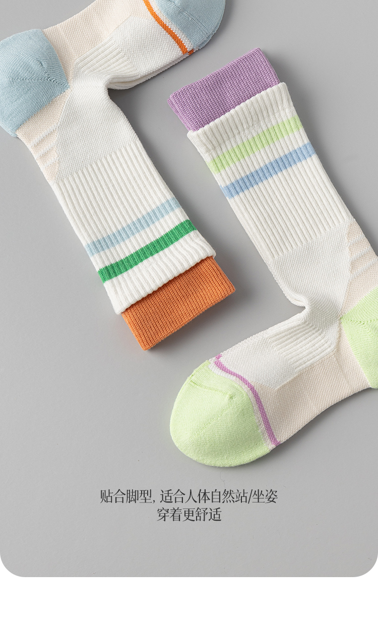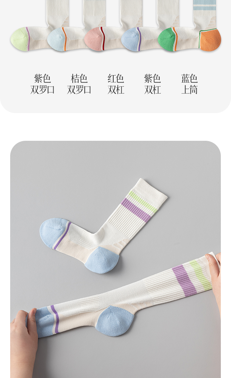 maxrun條紋瑜珈襪女士運動襪雙羅口精梳棉字母長筒襪潮搭健身襪子
