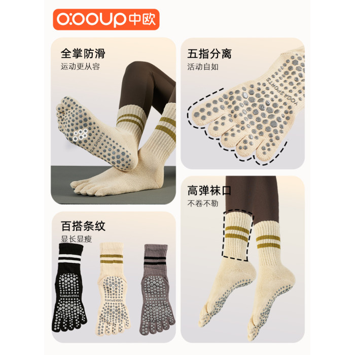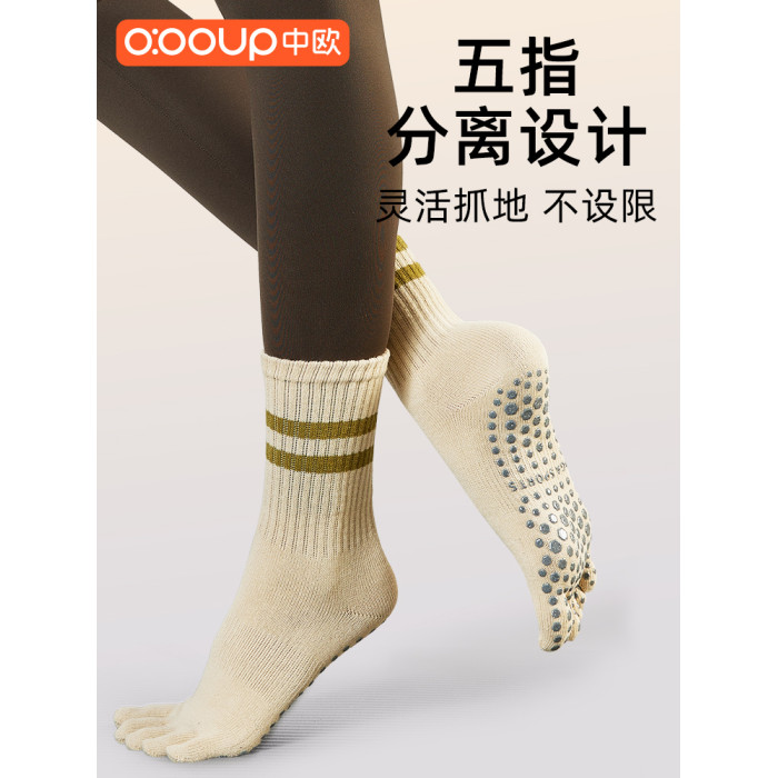 瑜珈襪子防滑專業女秋冬普拉提襪子五指襪2023新款運動防滑中高筒