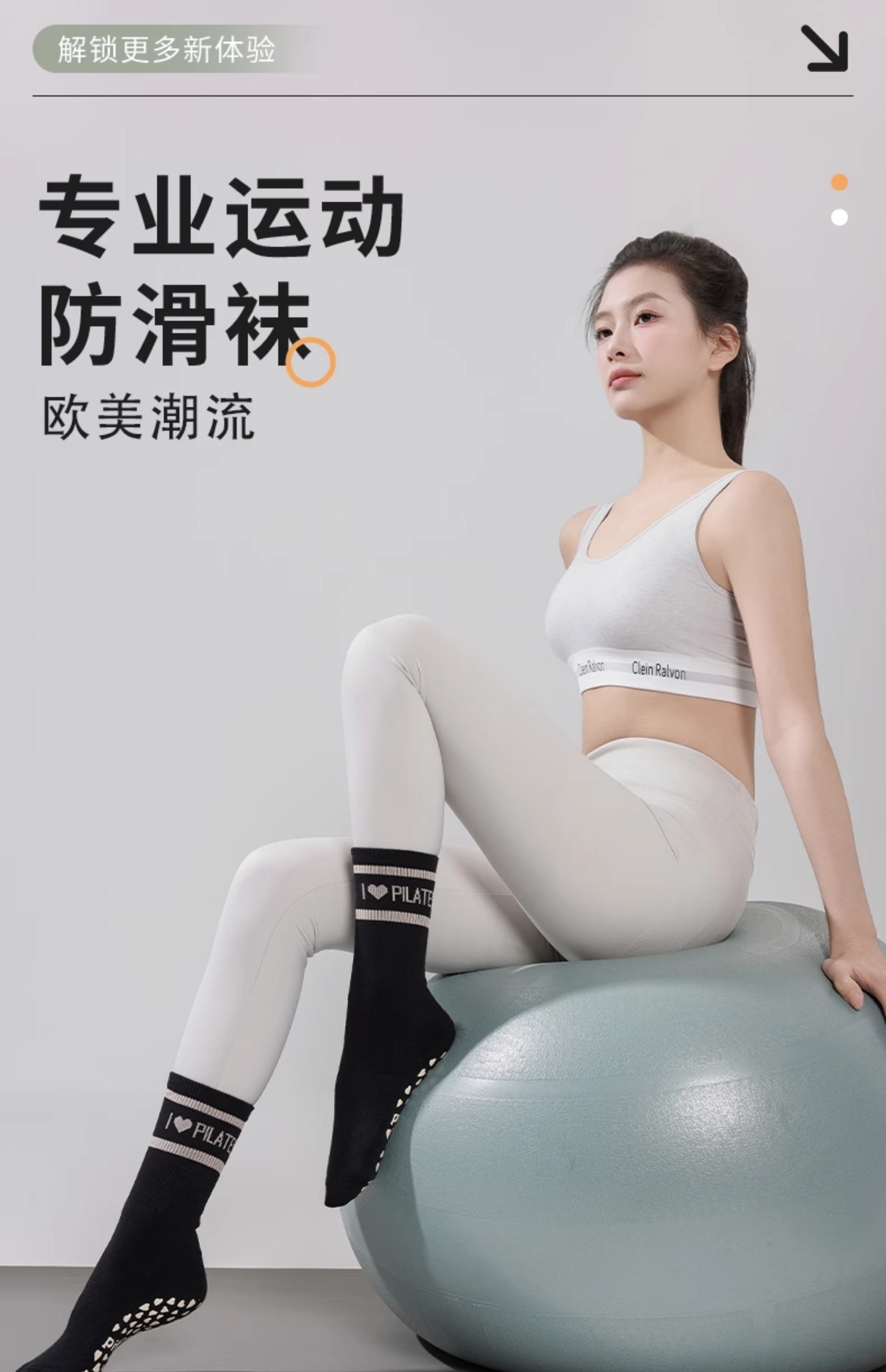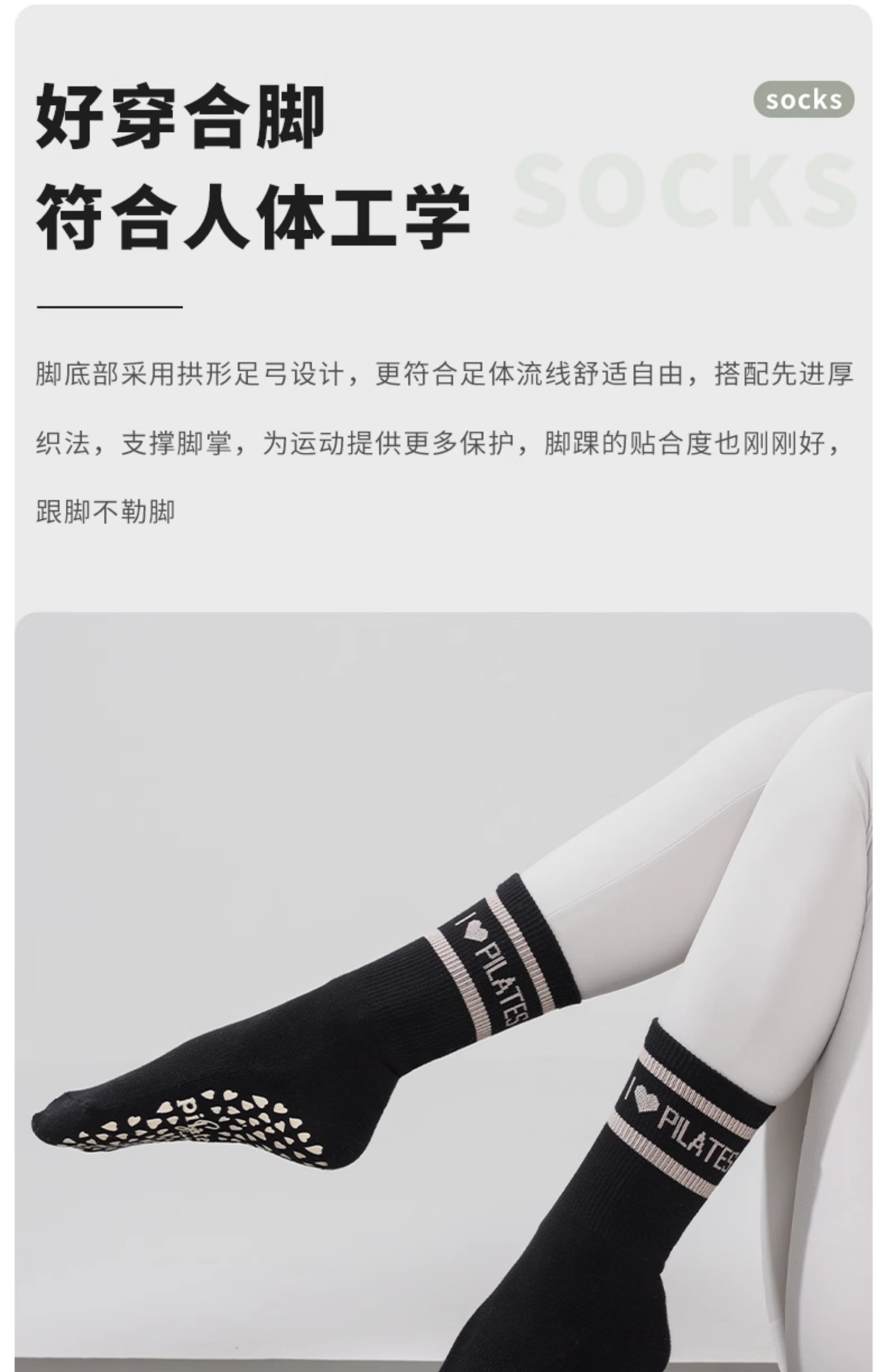 SIXHYS瑜珈襪專業防滑襪普拉提襪室內專用運動健身純棉女款中筒襪