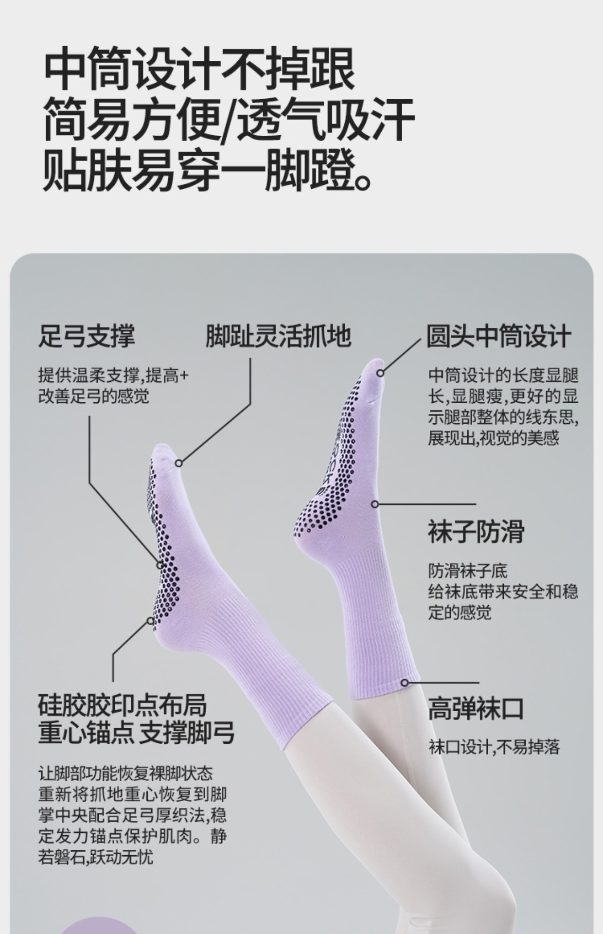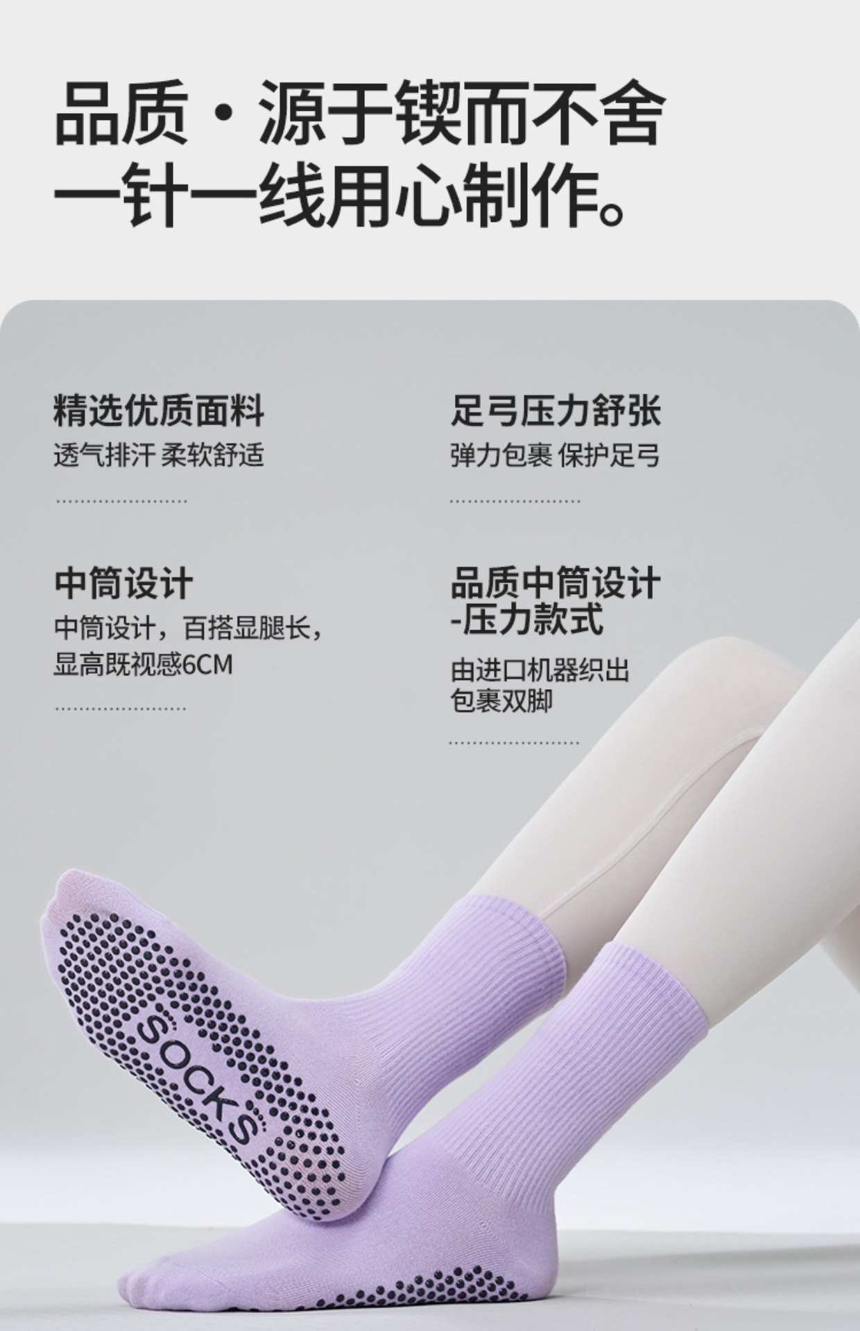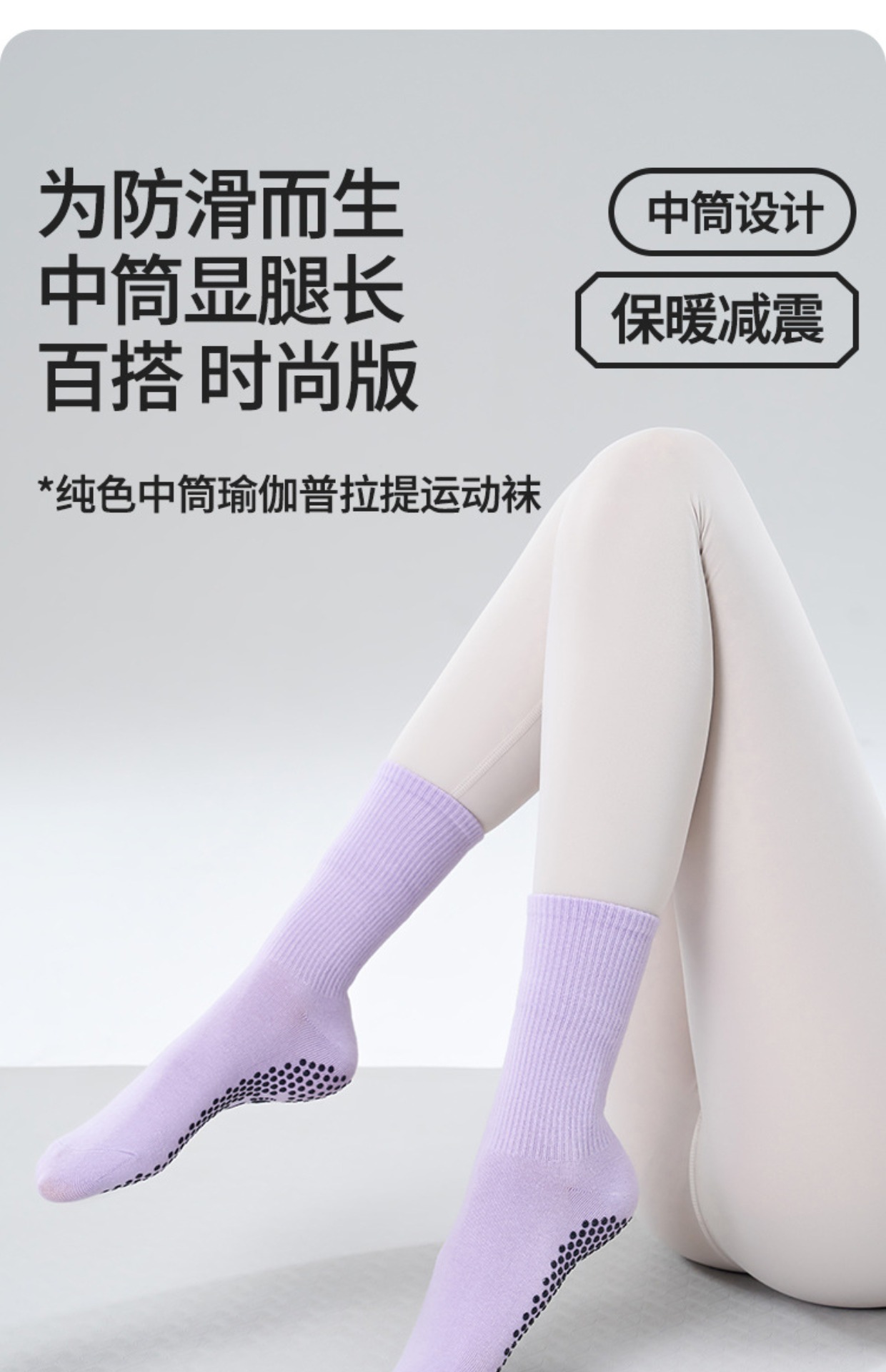 2025秋冬新款瑜珈襪子防滑專業女普拉提訓練襪中筒室內運動健身襪