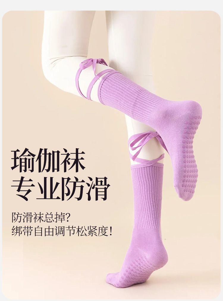 紫色瑜珈襪子防滑專業女運動普拉提新款帶綁帶矽膠吸汗室內健身夏