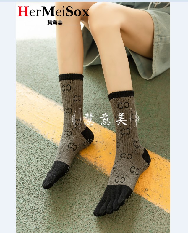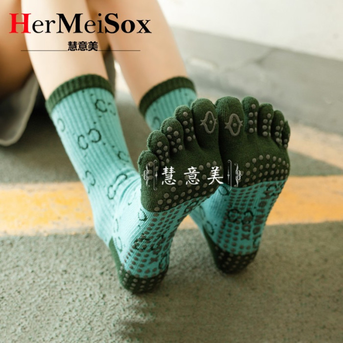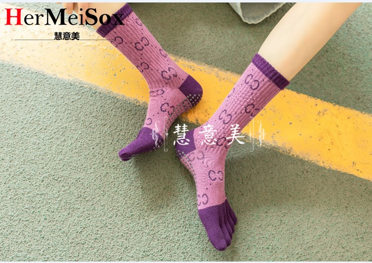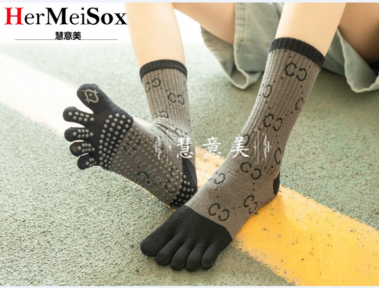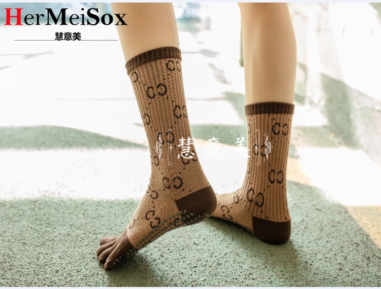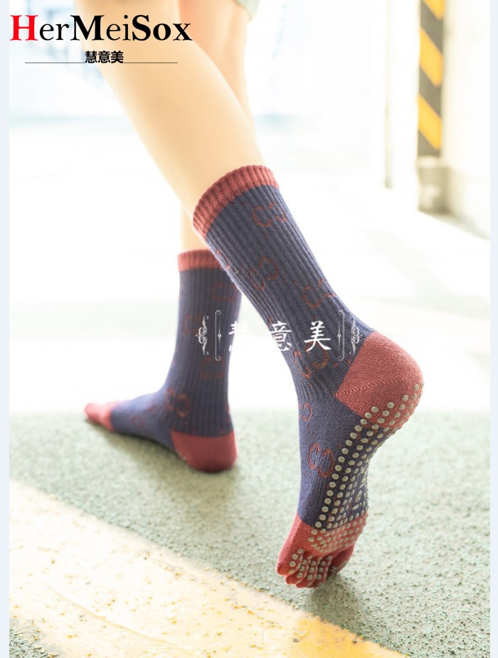 3雙裝CC五指瑜珈襪中筒女專業春夏防滑長筒普拉提襪室內健身訓練